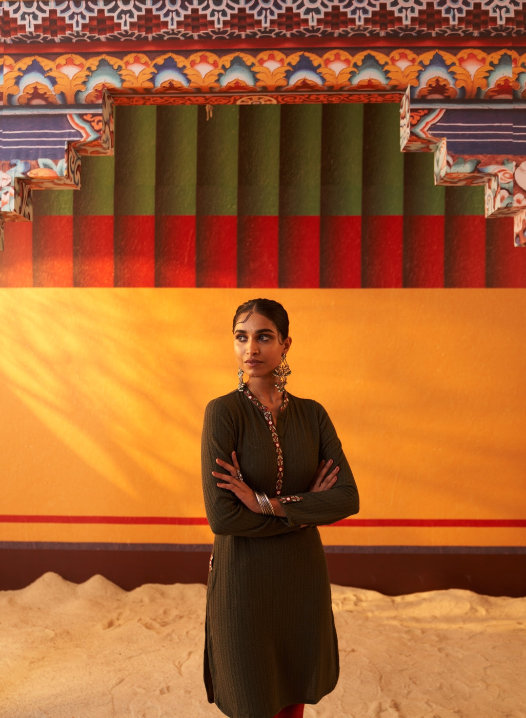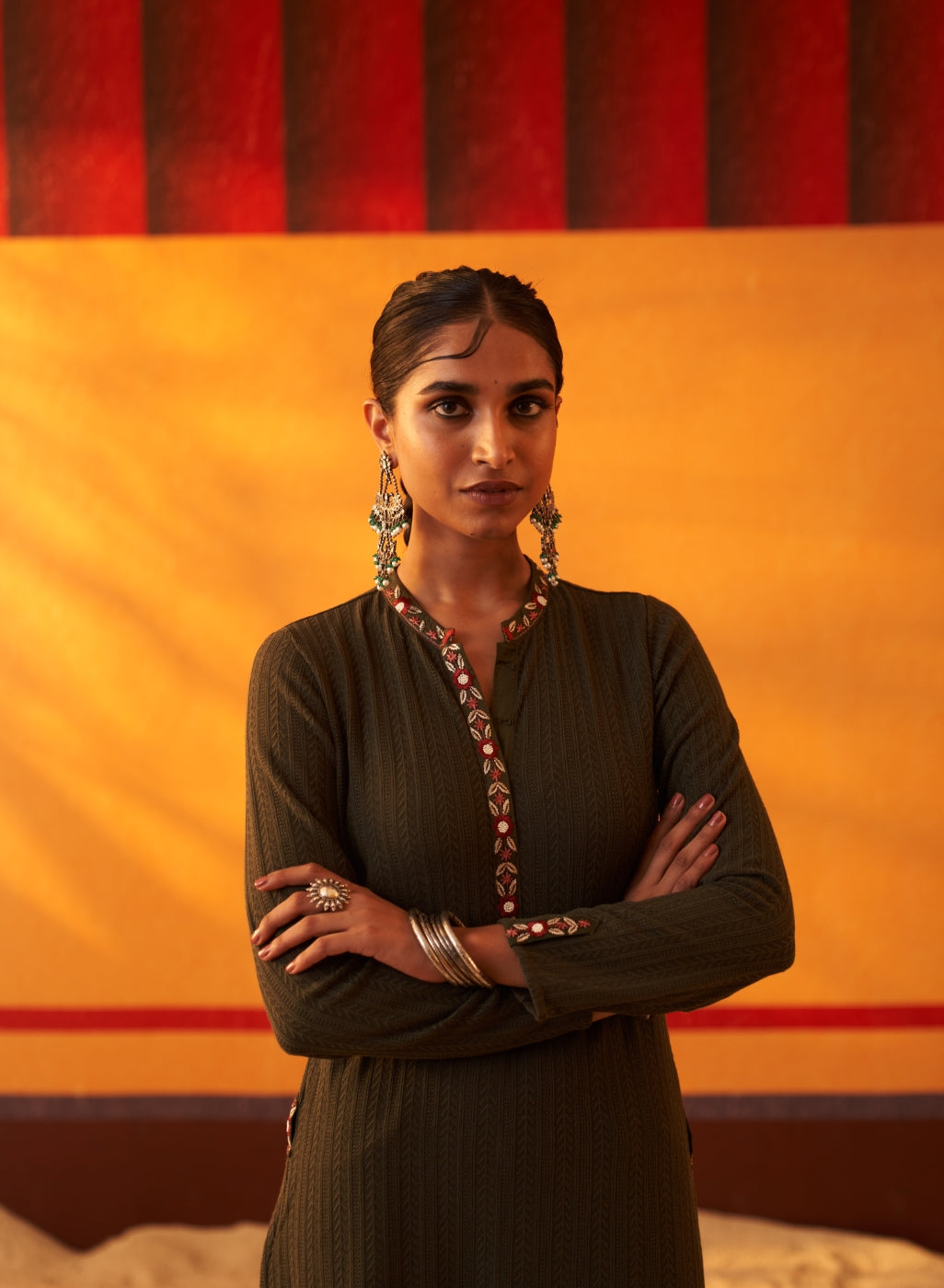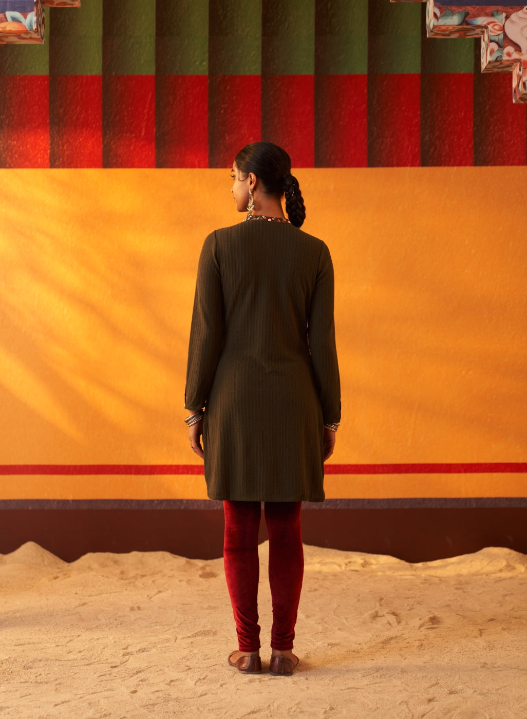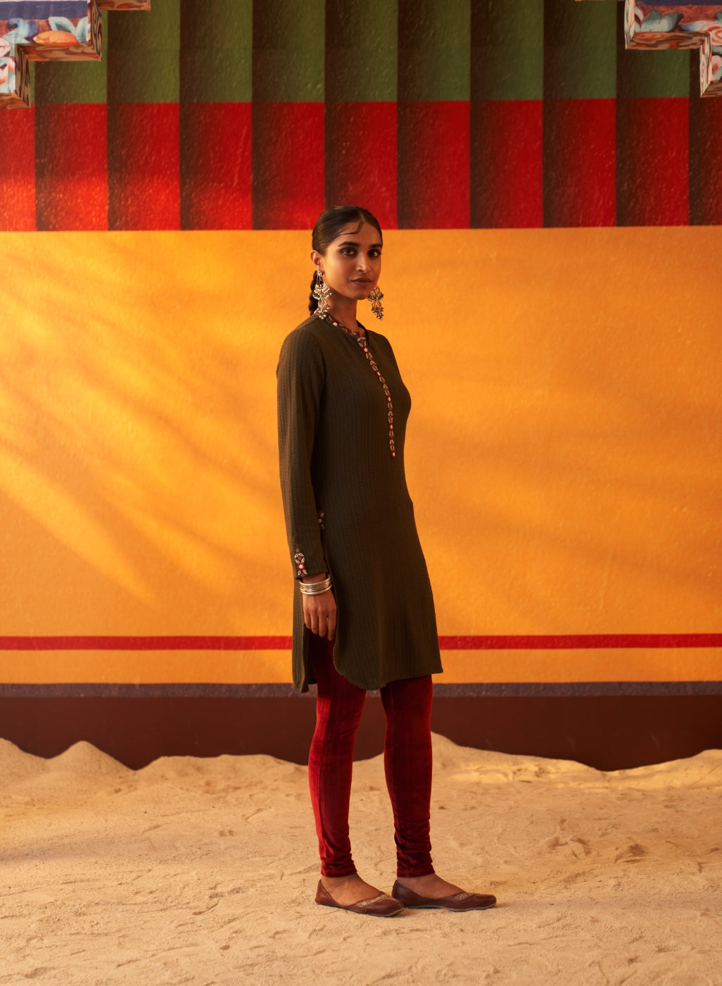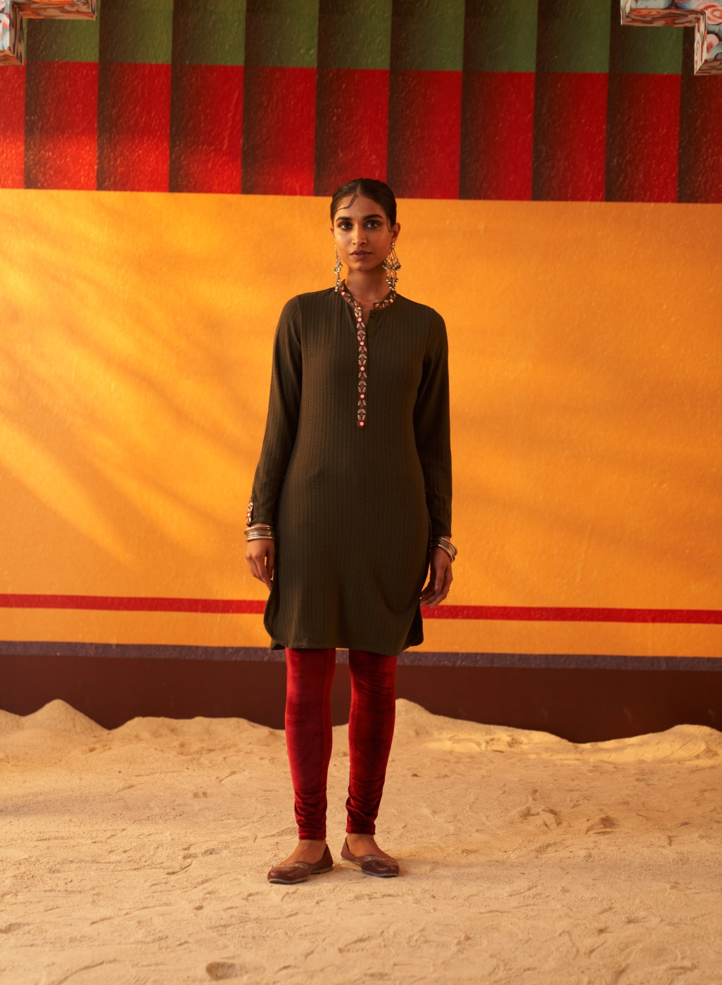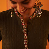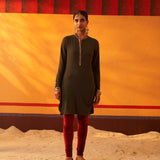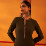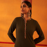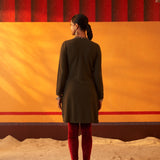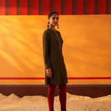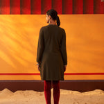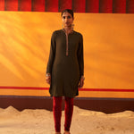 Green Woollen Kurta for Women with Threadwork