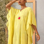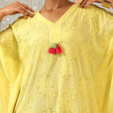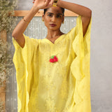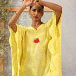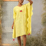 Gulnaar Lemon Glow Schiffli Cotton Kaftan for Women
