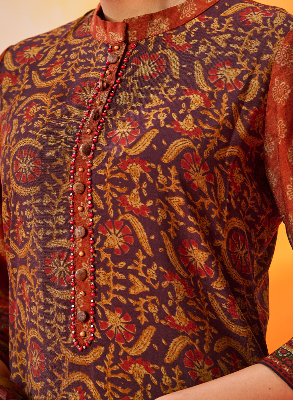 Gulrukh Purple Traditional Printed Long Kurta Set
