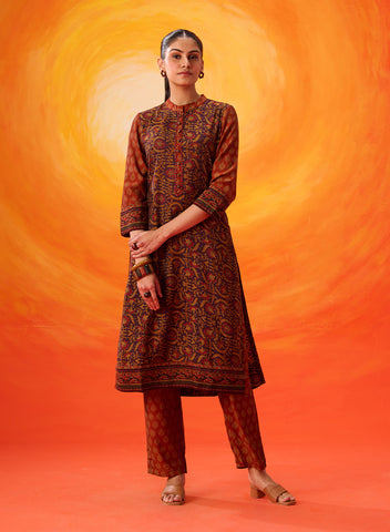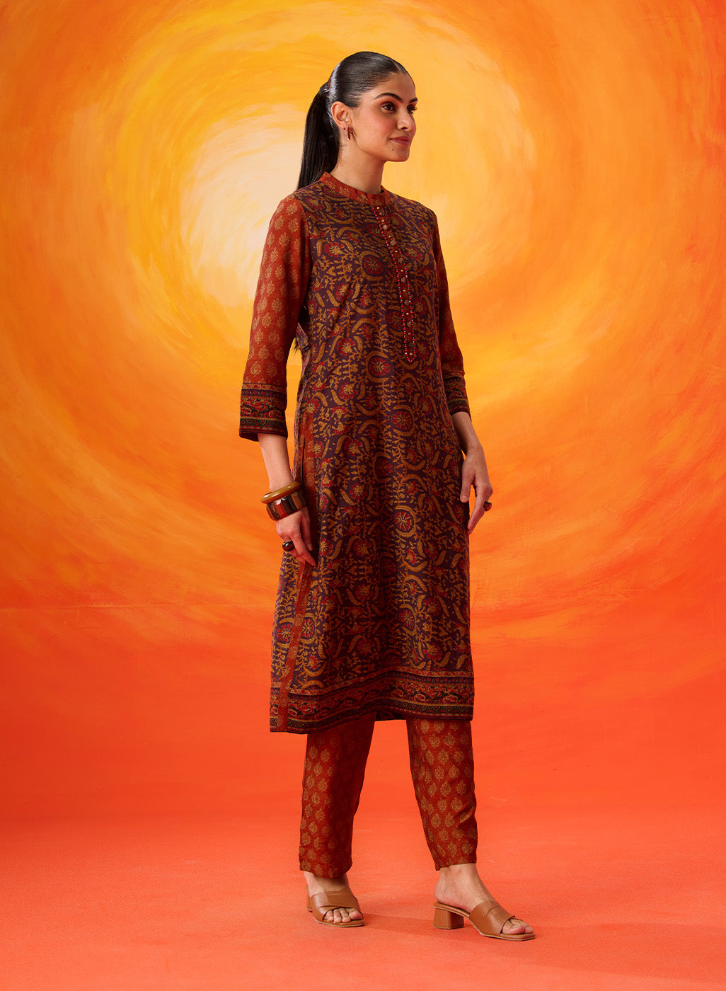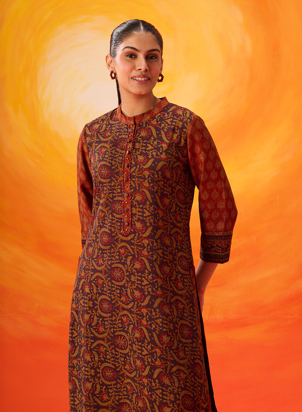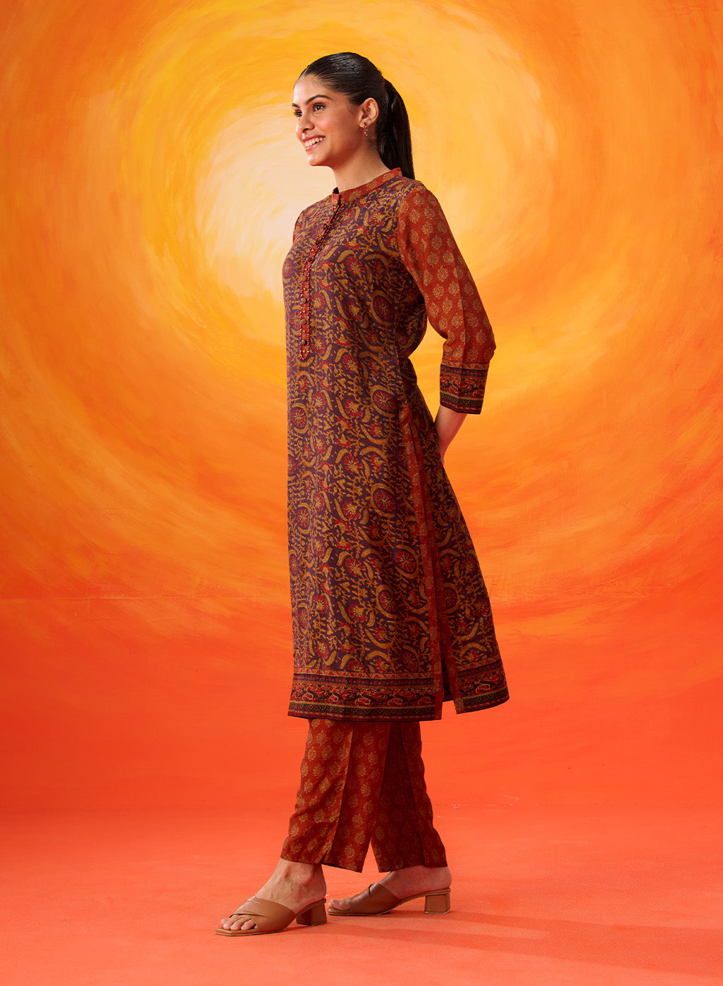 Designed in a rich purple, this kurta set feels elegant yet relaxed. The traditional motifs and contrast detailing add character, while the straight silhouette ensures easy, everyday wear.