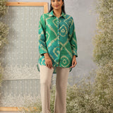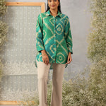 Hasi Spring Green Printed Cotton Satin Shirt for Women