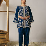 Indira Blue Heritage Embroidered Georgette Co-ord Set