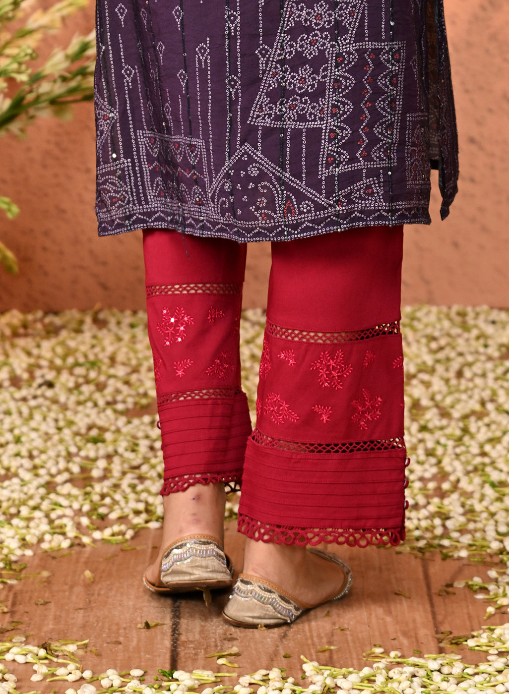 Ira Fuchsia Embroidered Relaxed Fit Palazzo Pants for Women