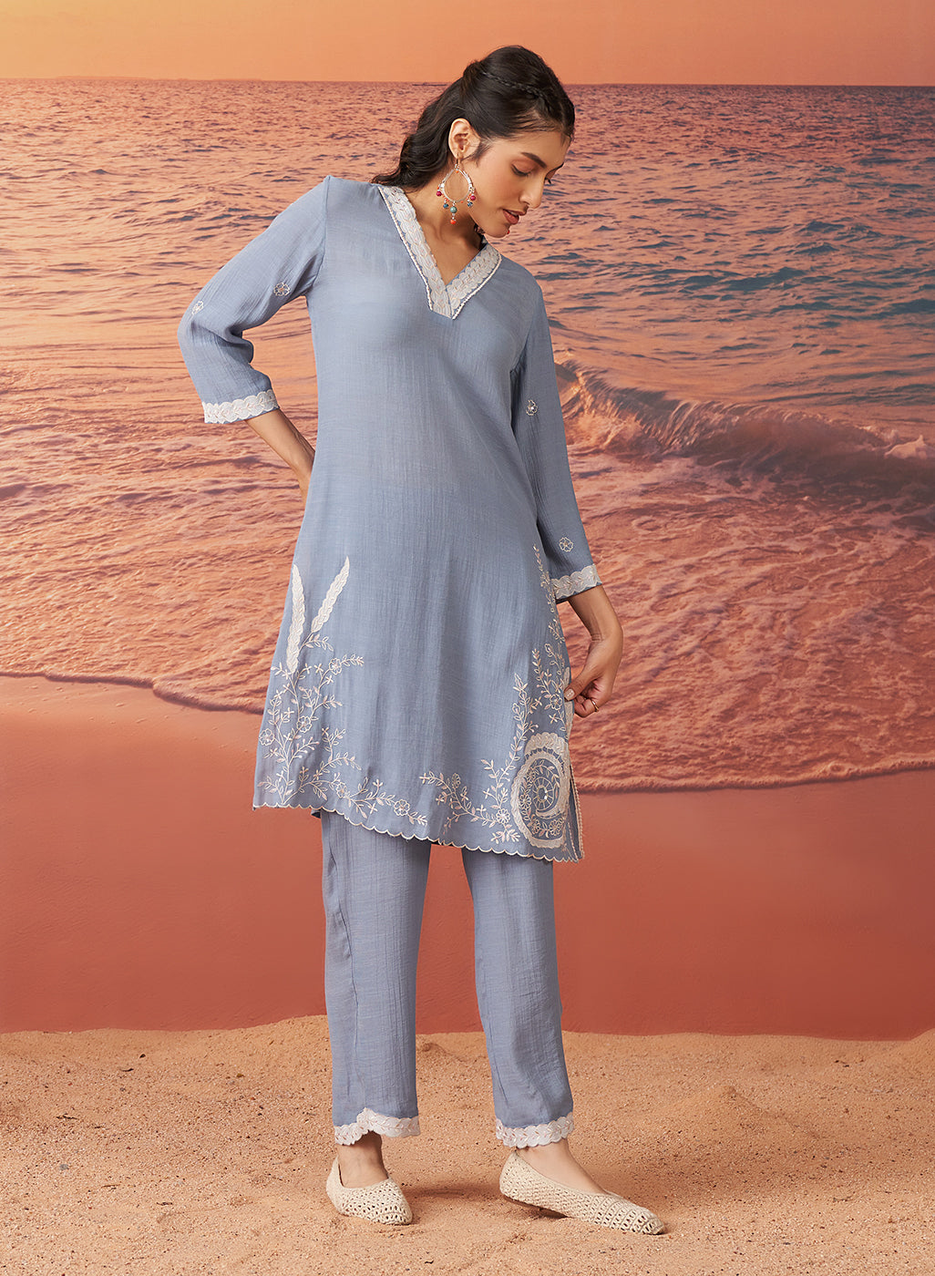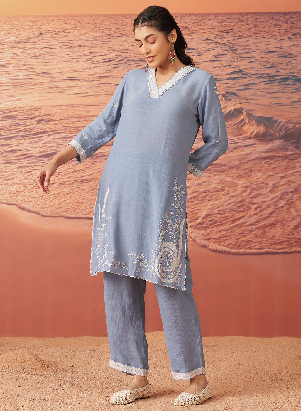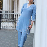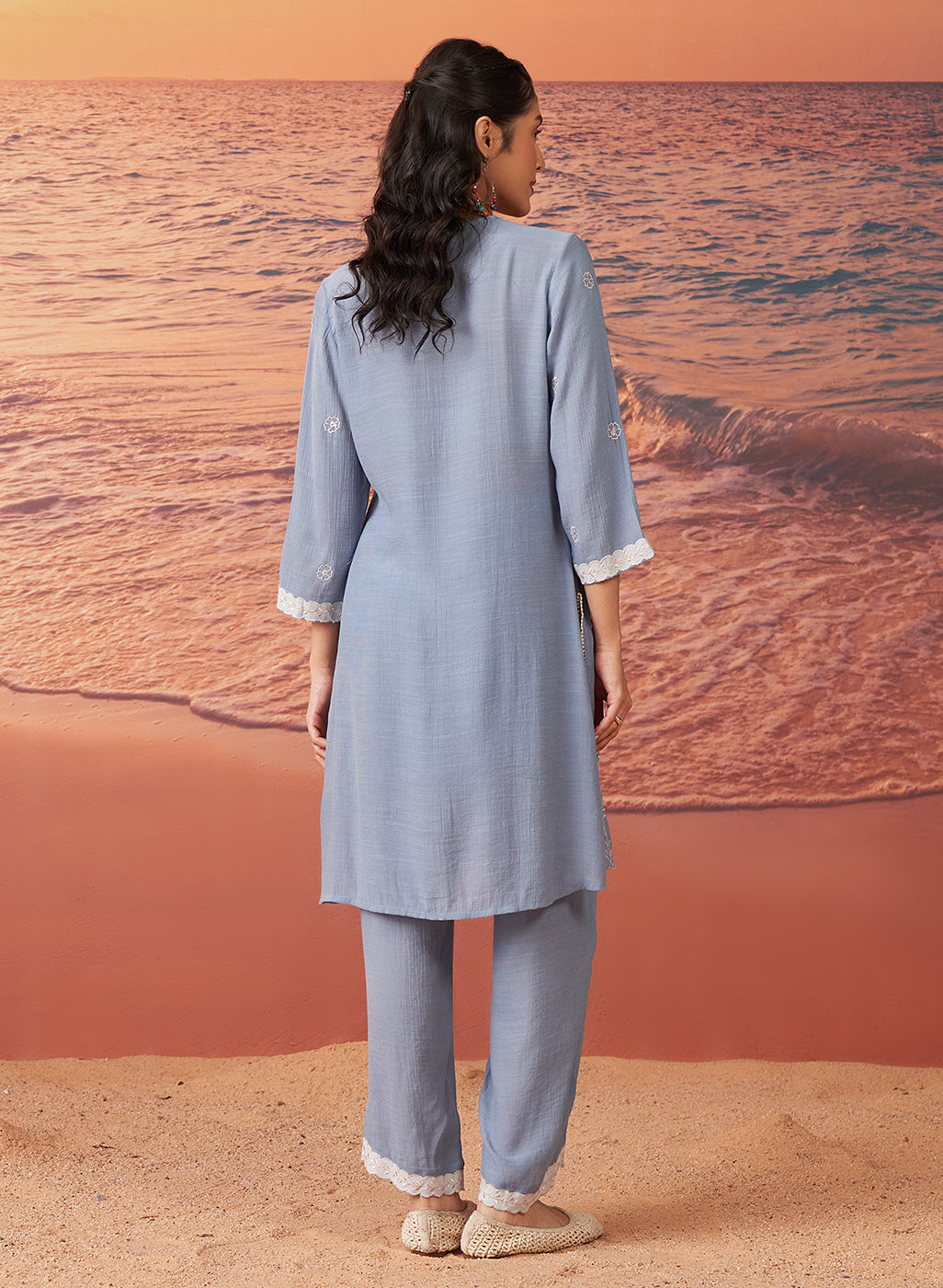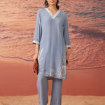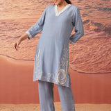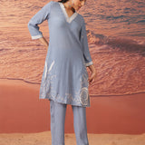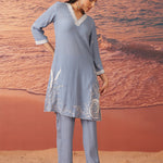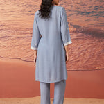 Iris Smokey Blue Embroidered Rayon Co-ord Set for Women