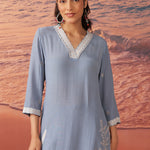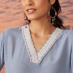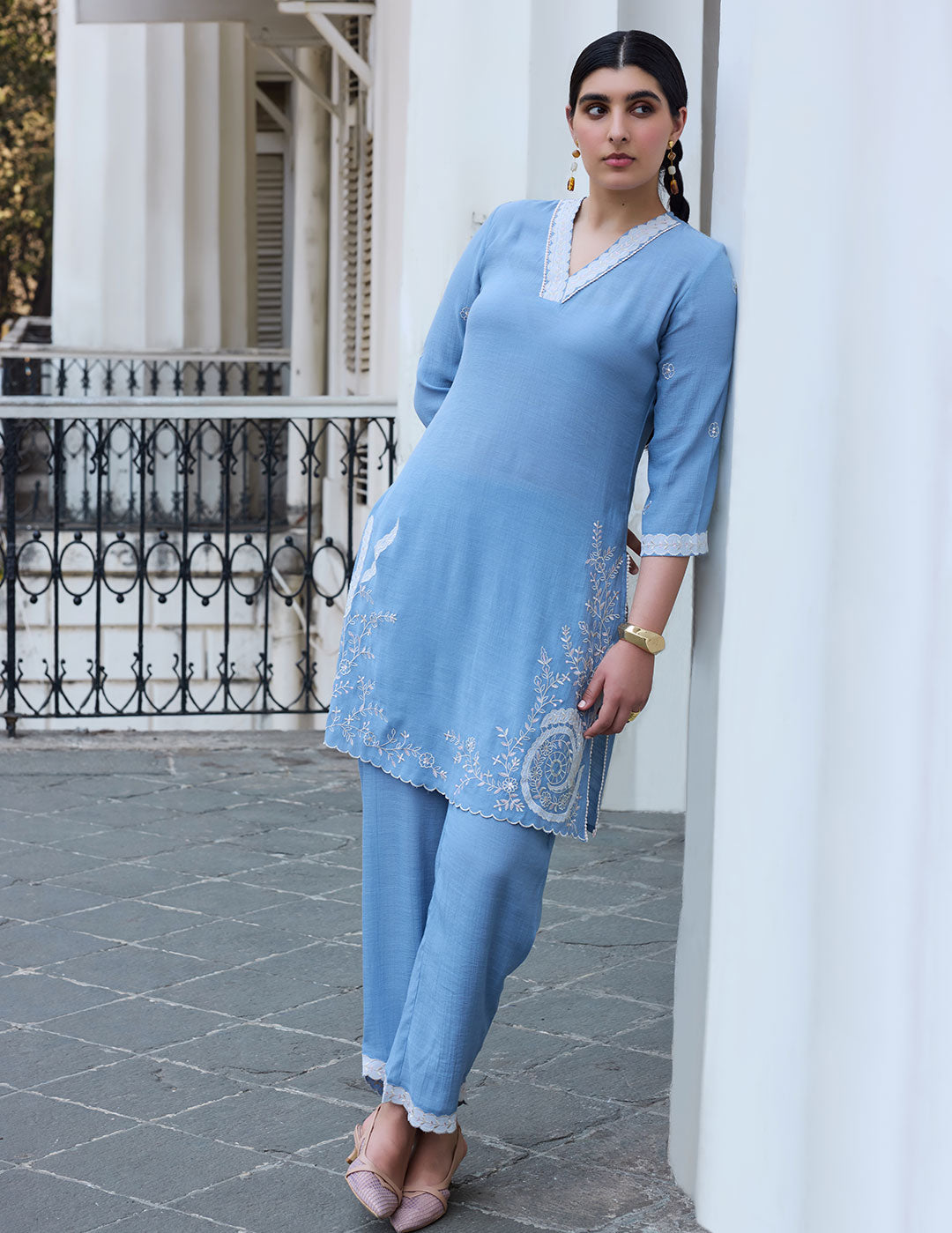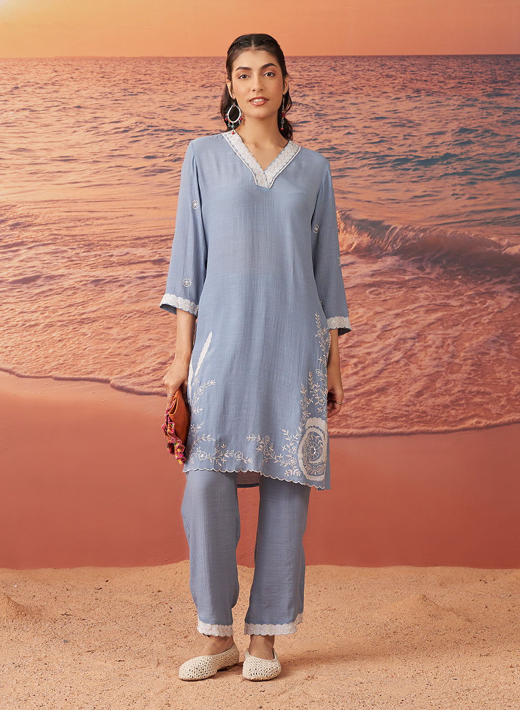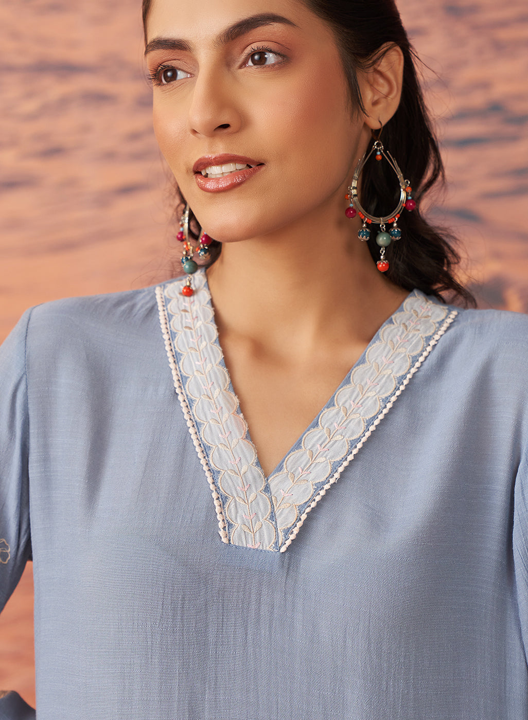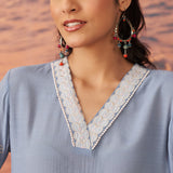 Iris Smokey Blue Embroidered Rayon Co-ord Set for Women