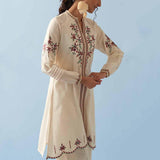 Bring out your inner diva with this versatile Ivory embroidered kurta flaunting puffed sleeves and a one-of-a-kind hem. This will go well with all types of bottom wear for women and will help achieve looks suitable for both formal and informal occasions.