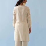 Ivory Embroidered Kurta for Women with Puffed Sleeves - Lakshita