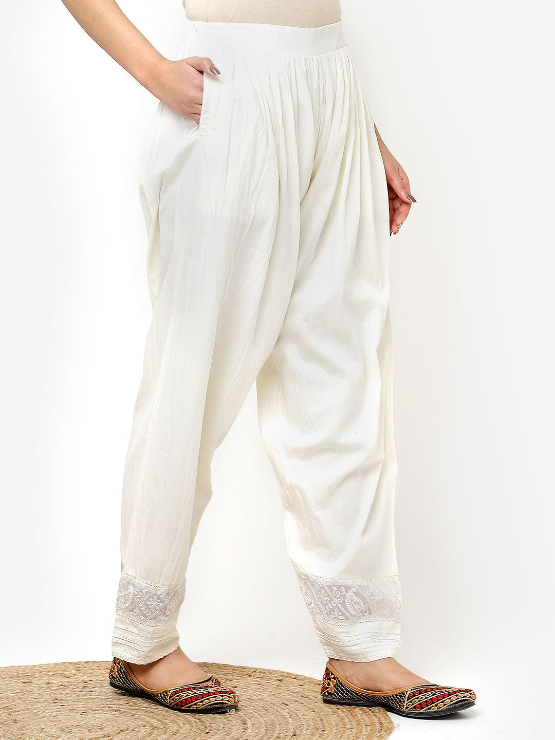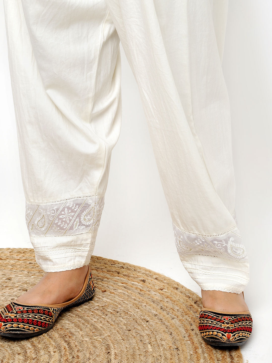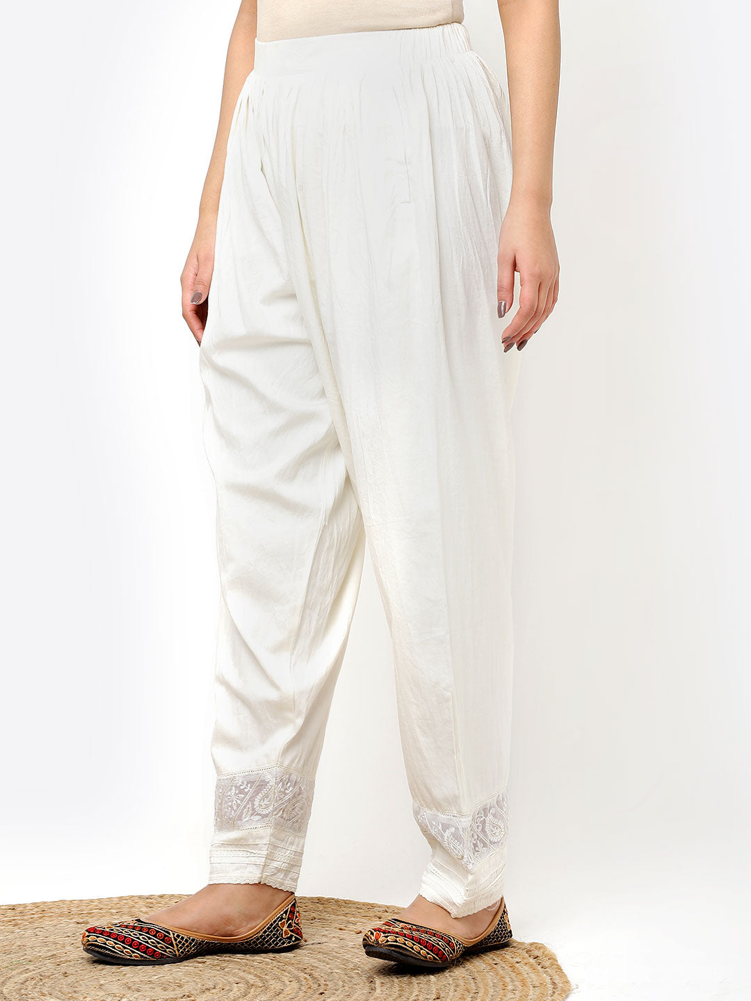 Ivory Pleated Salwar with Lace Detailing and Mesh Hem