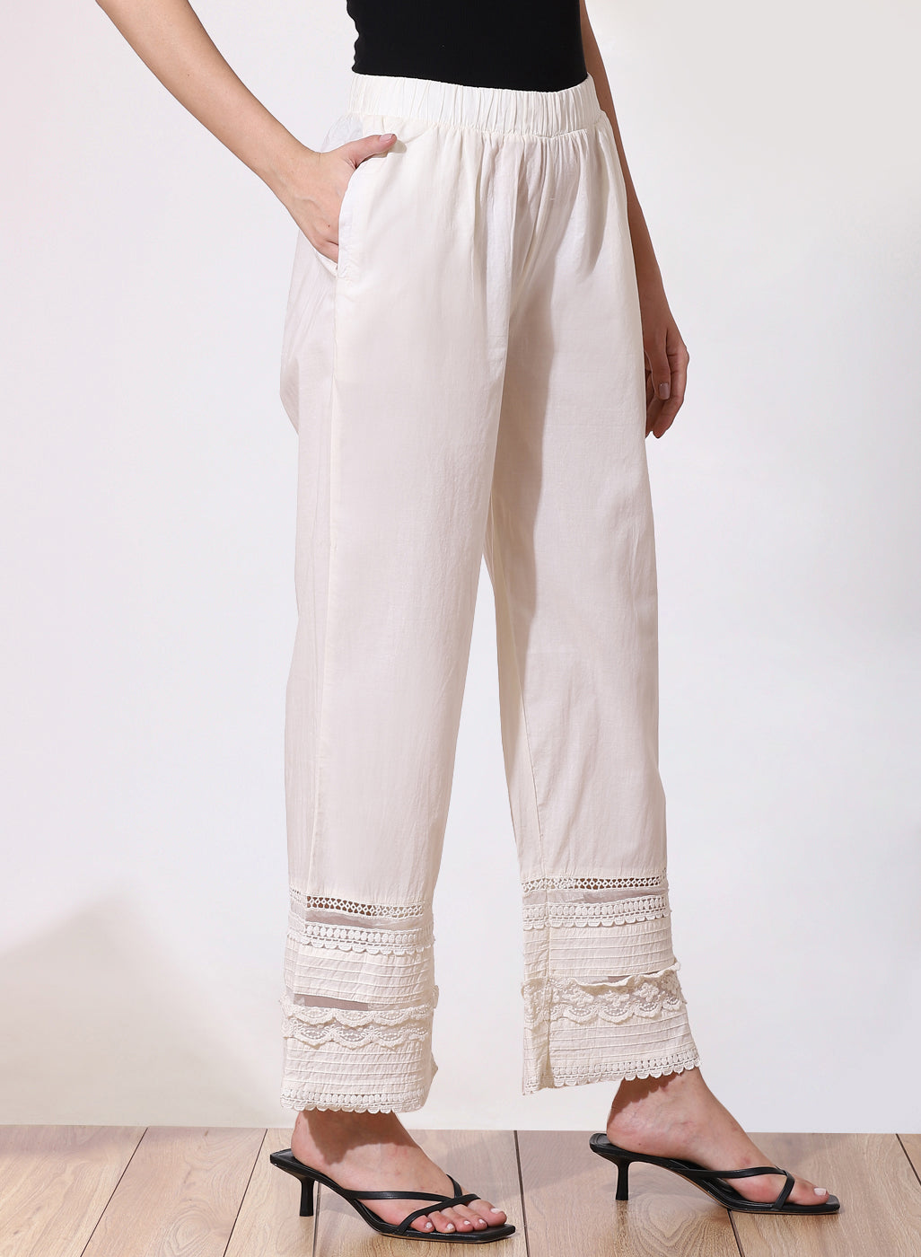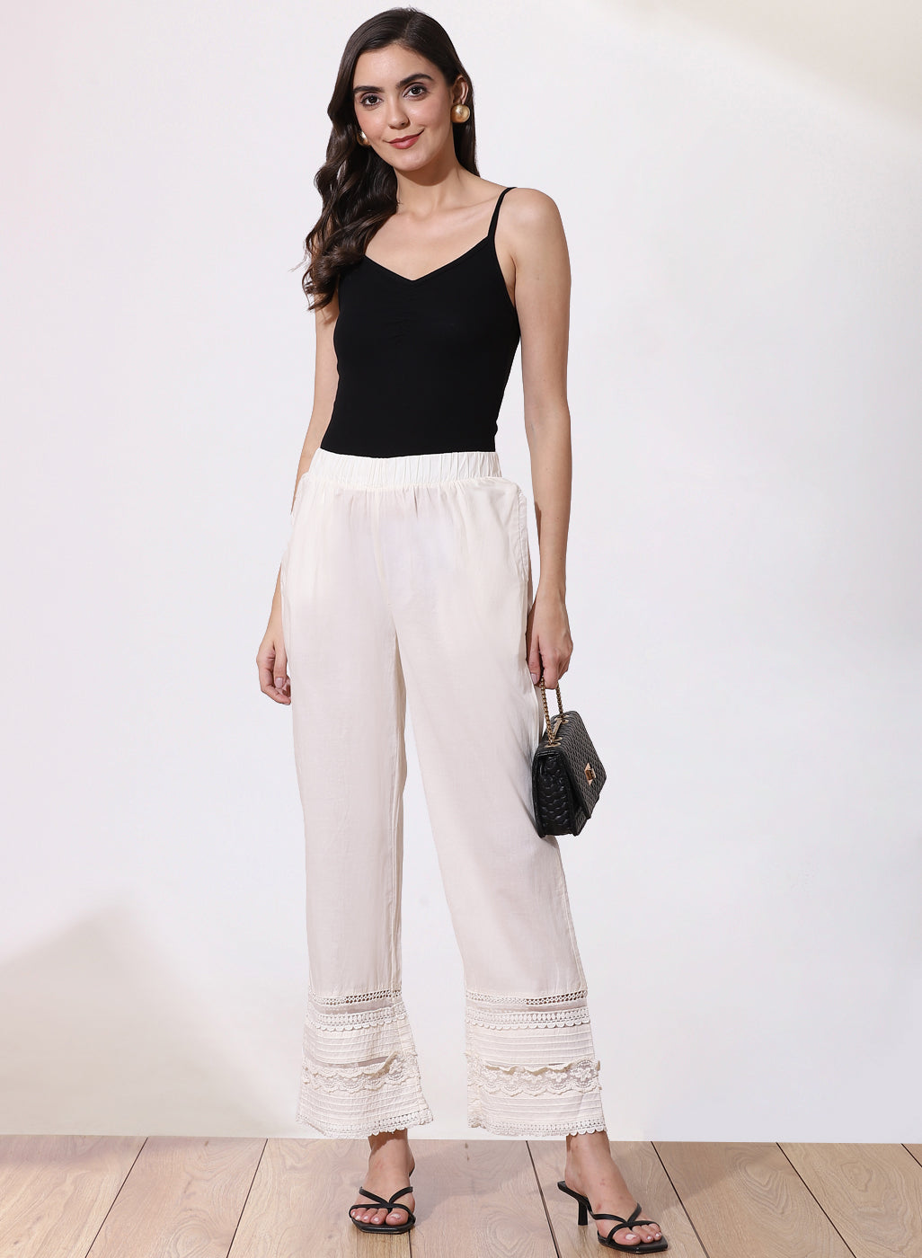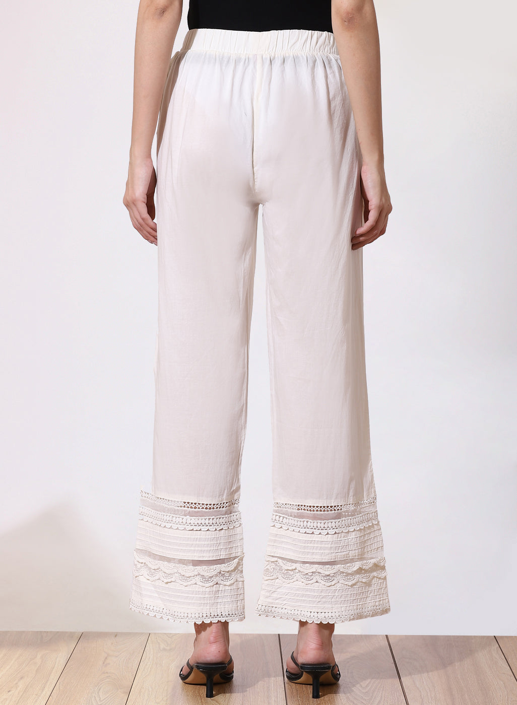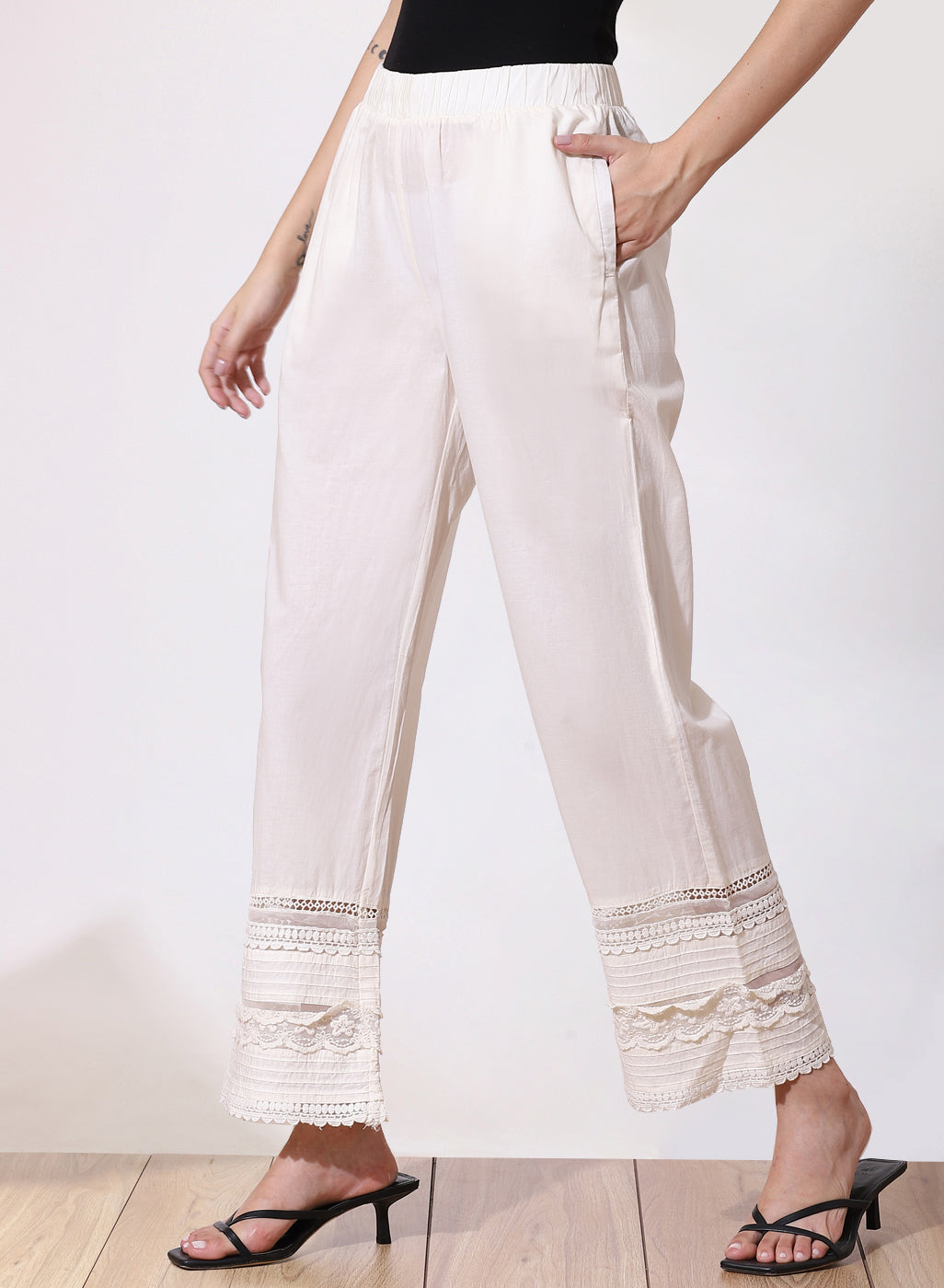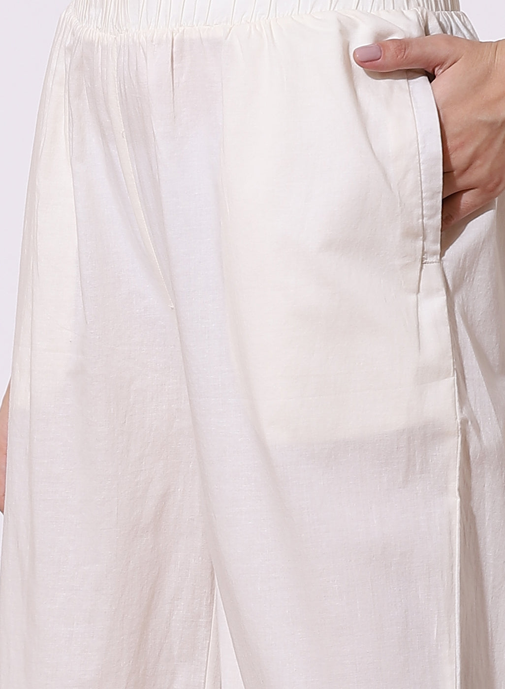 Maria Ivory Cotton Relaxed Fit Palazzo Pants for Women