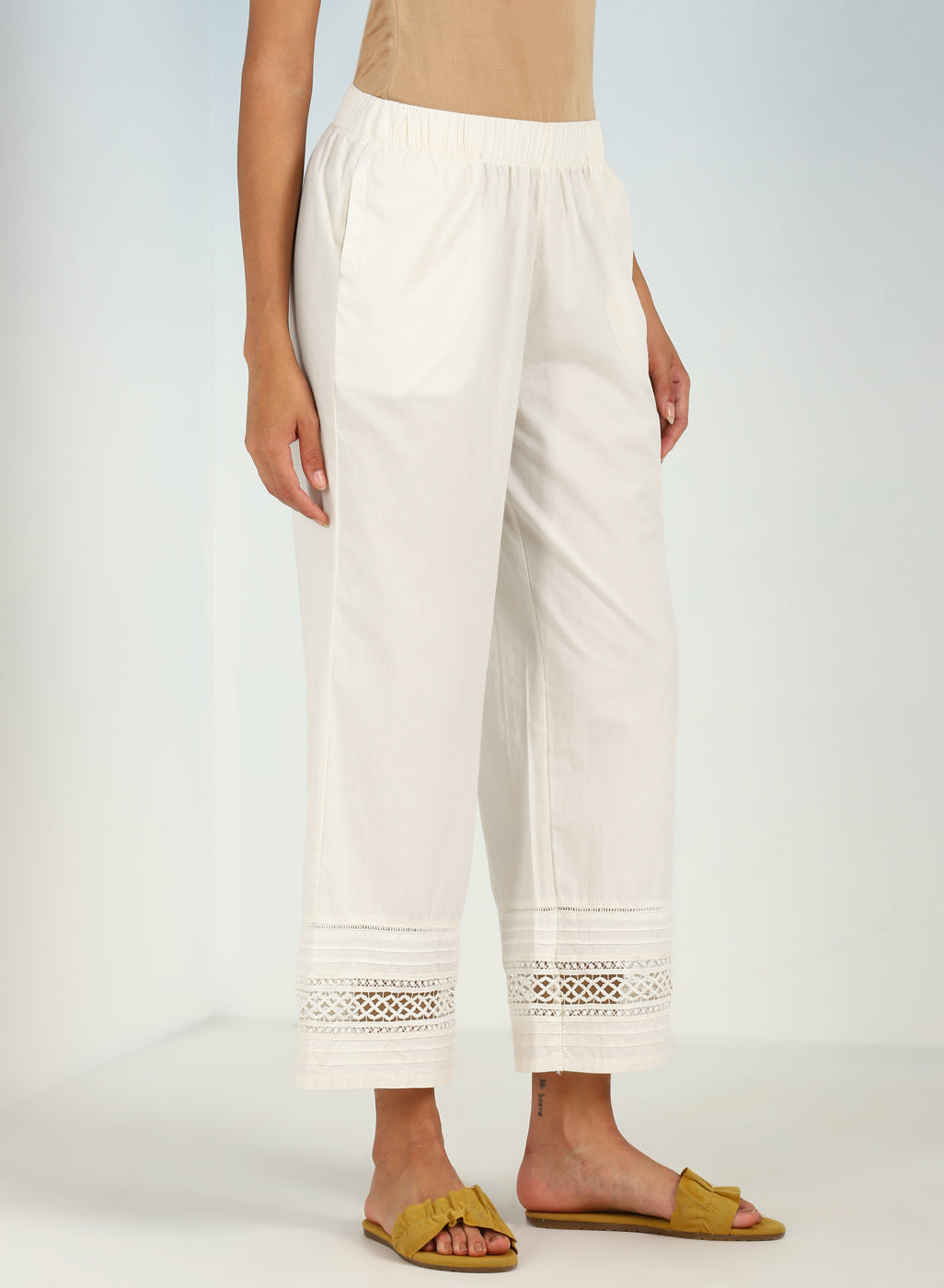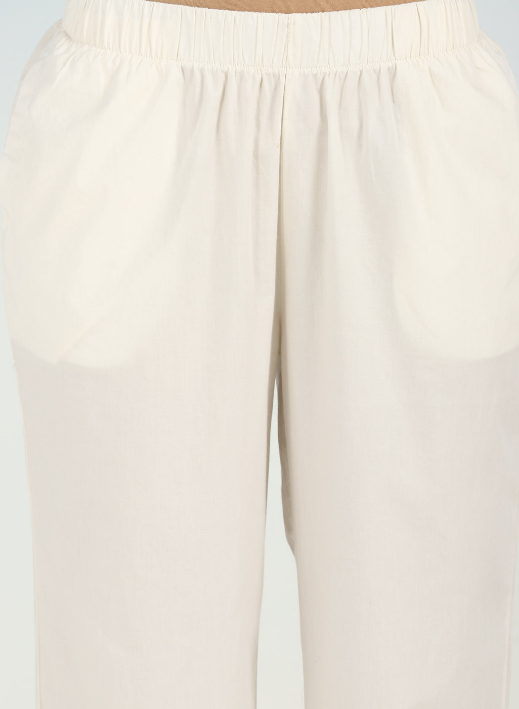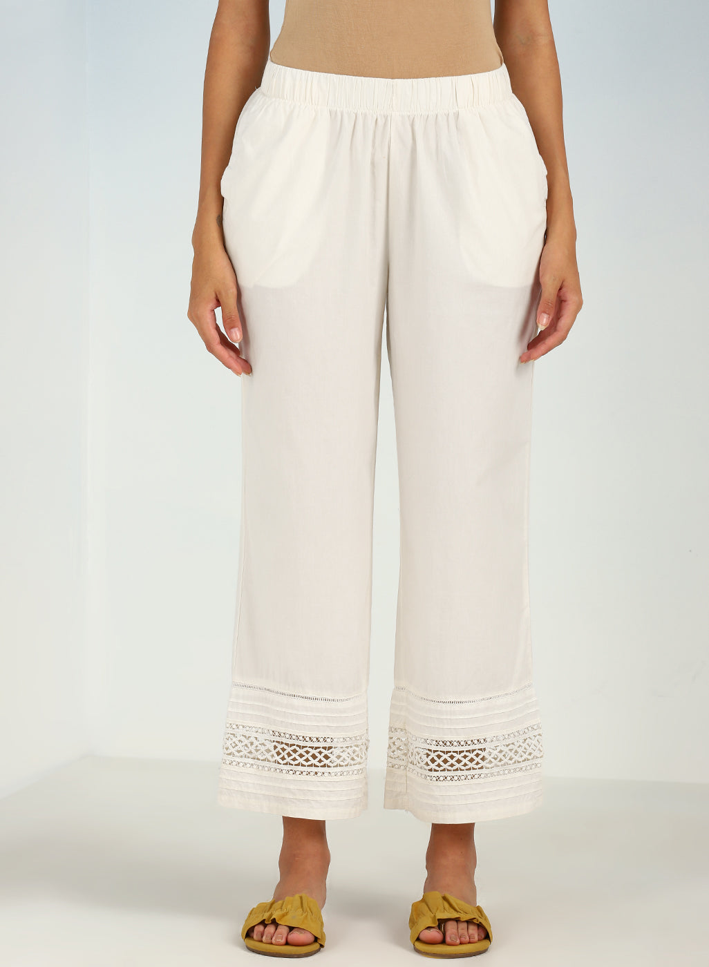 - A harmonious blend of elegance and comfort, these ivory straight-fit palazzos redefine sophistication.