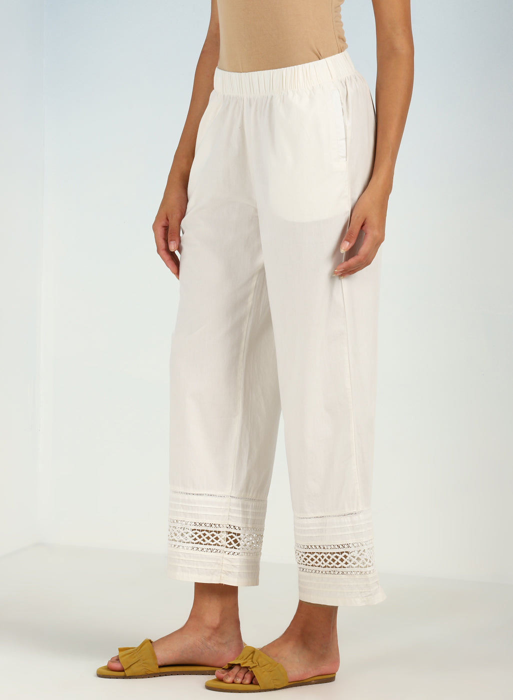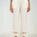 - Crafted with meticulous attention to detail, these palazzos offer a sleek fit and the true allure of these palazzos lies in the exquisite lace inserts that grace the hem.