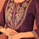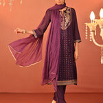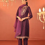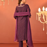 Jasleen Deep Purple Georgette Jacquard Embroidered Suit Set with Dupatta