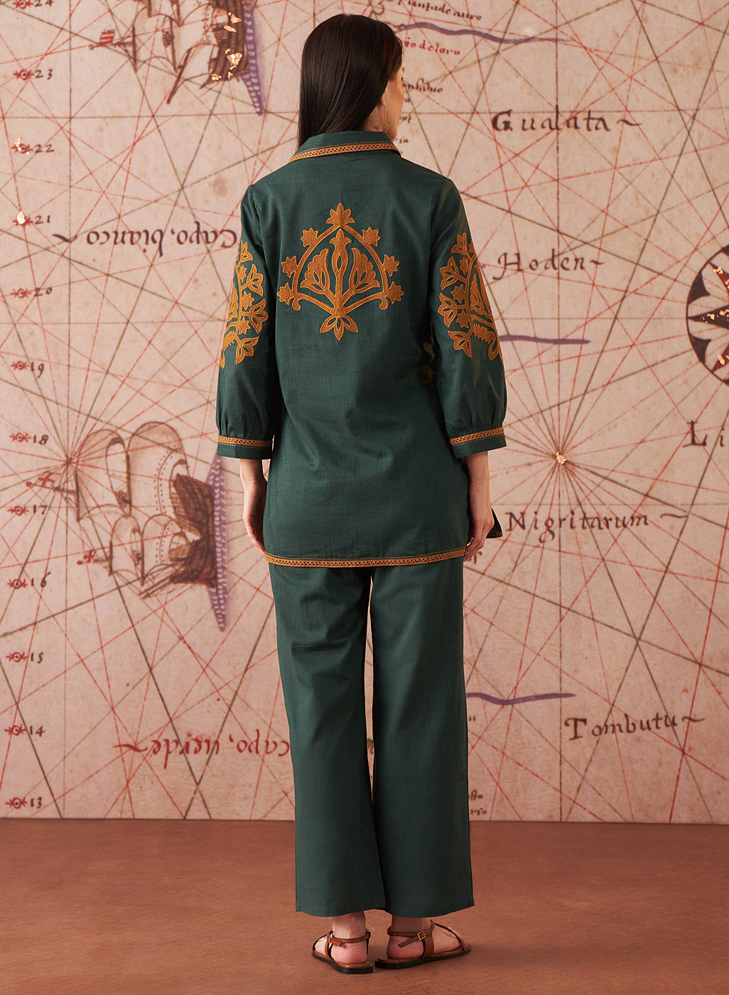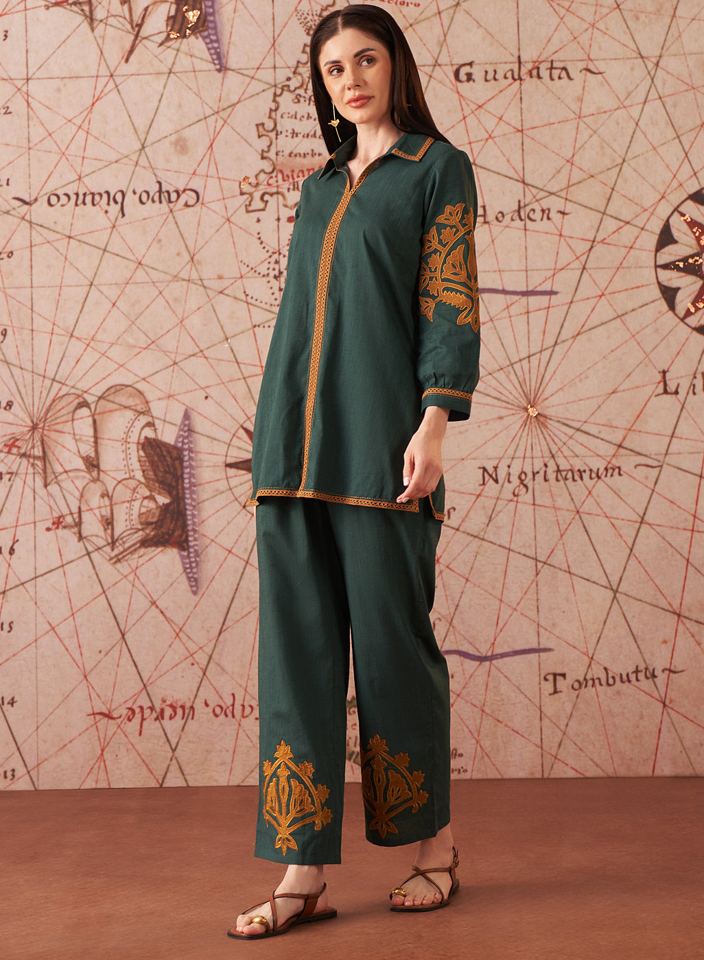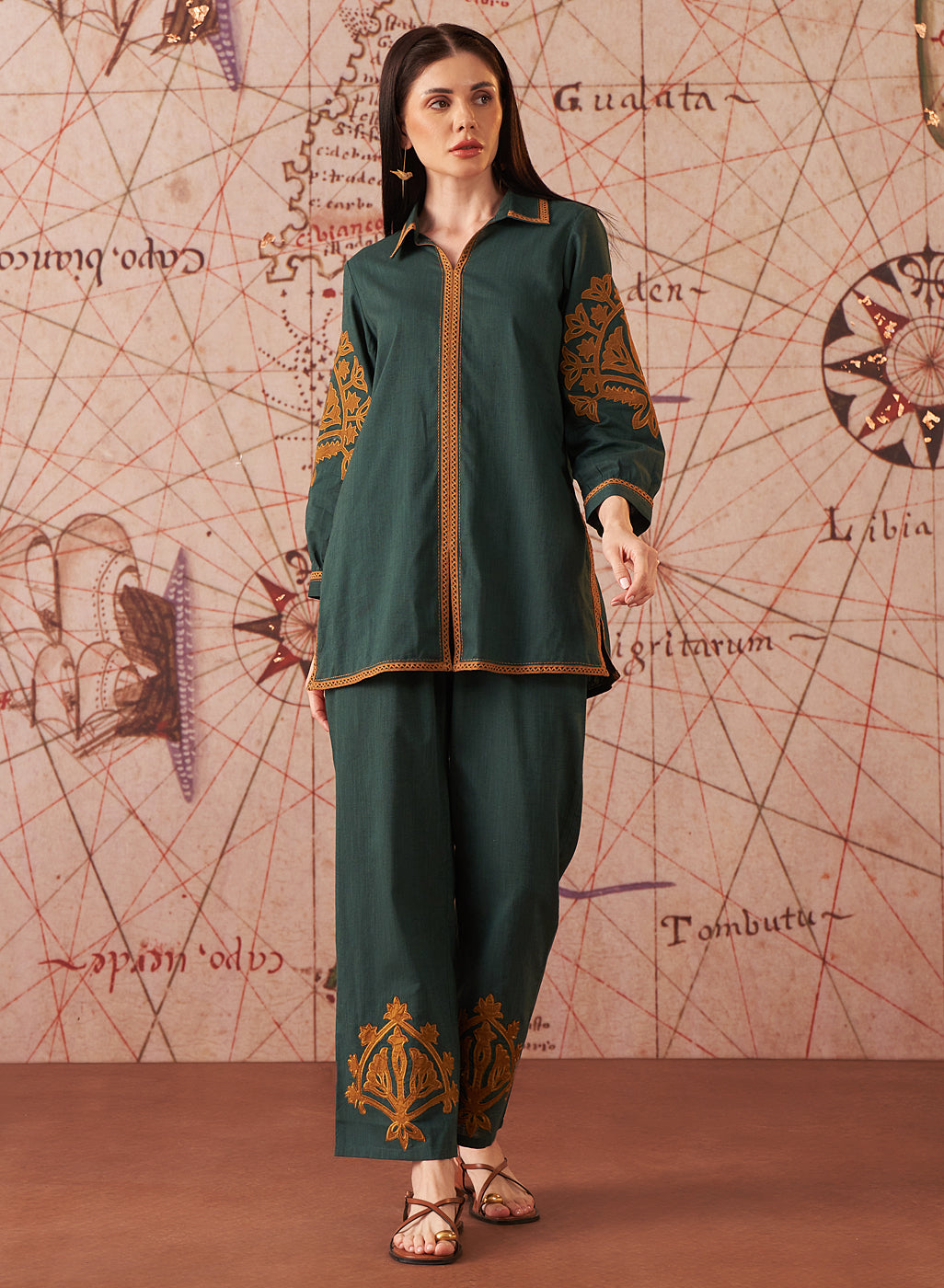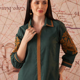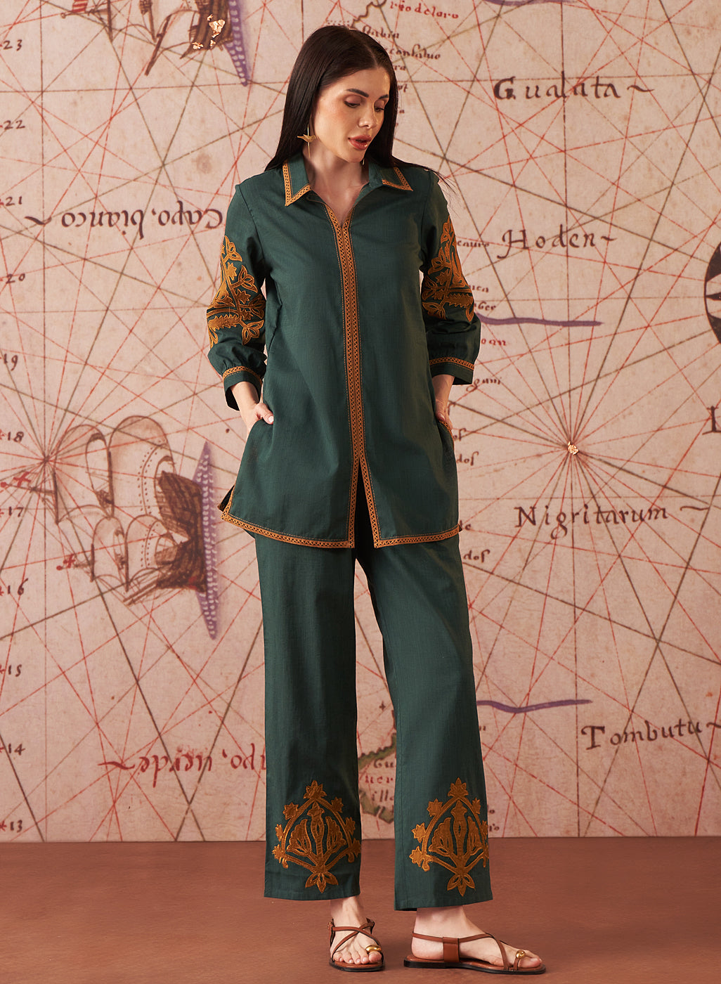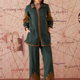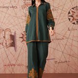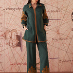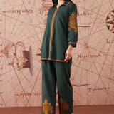 Jia Arctic Emerald Green Embroidered Rayon Cotton Flex Co-ord Set for Women