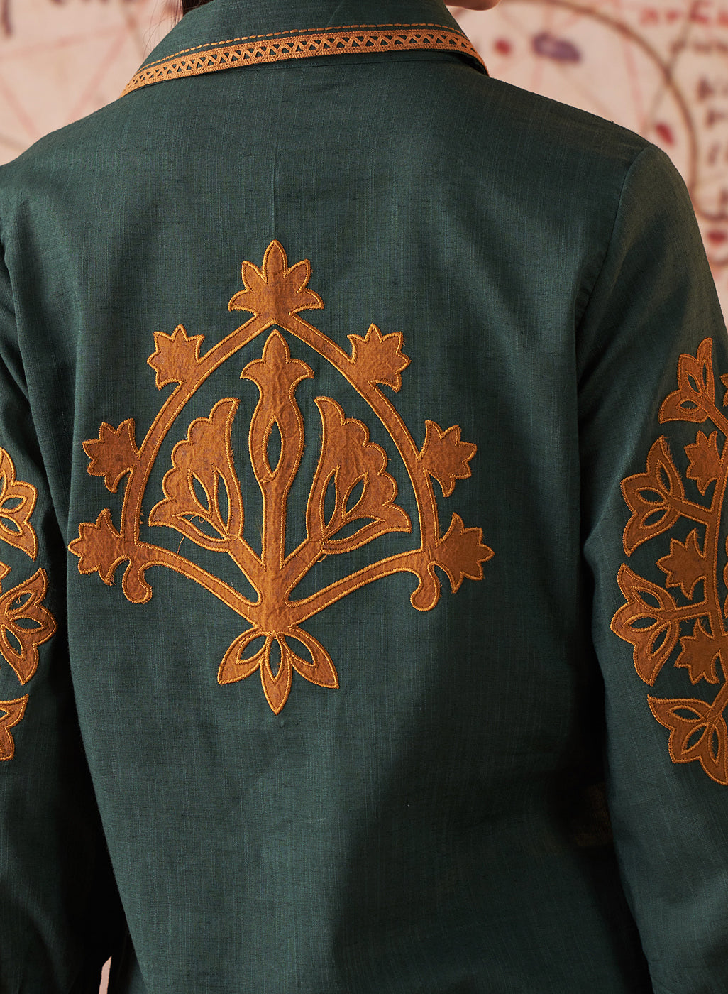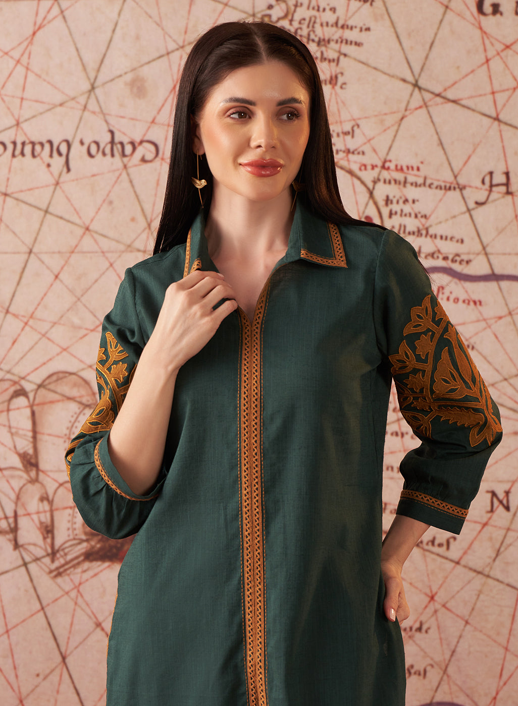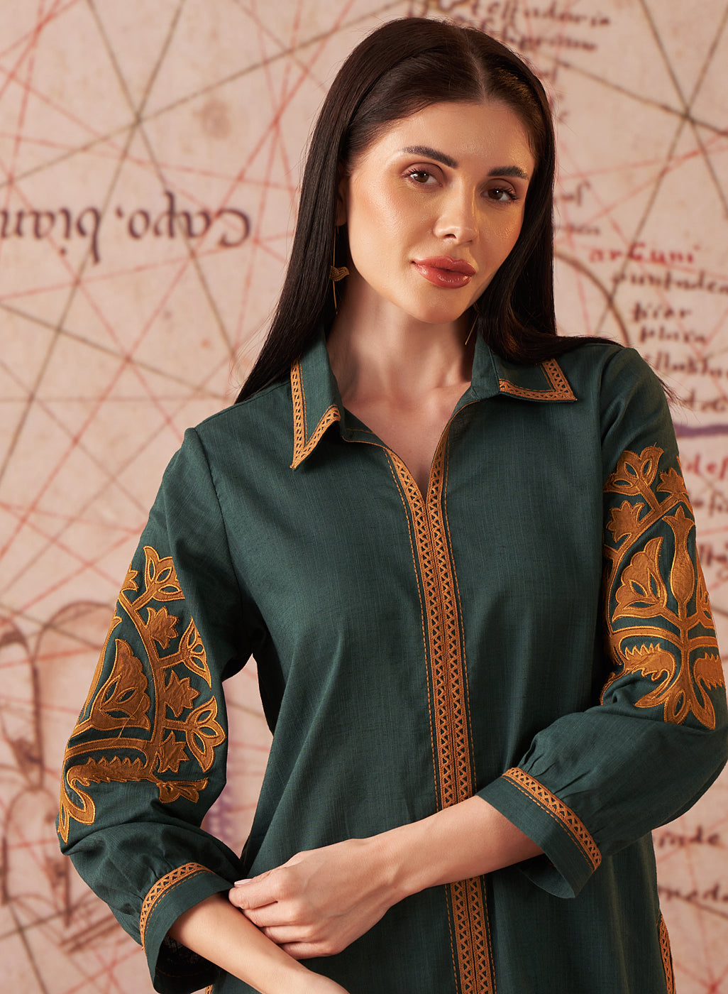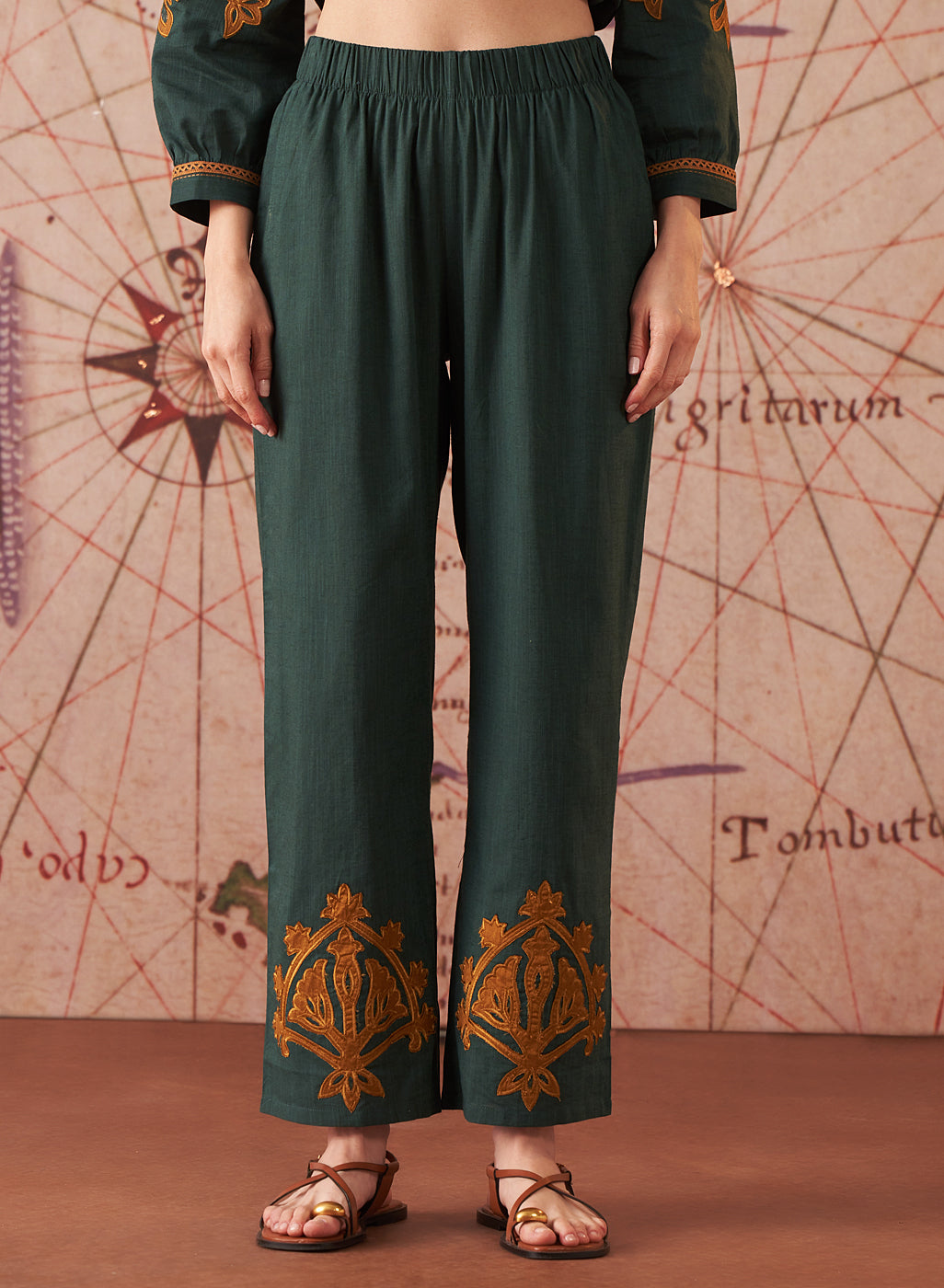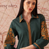 Jia Arctic Emerald Green Embroidered Rayon Cotton Flex Co-ord Set for Women