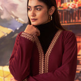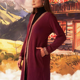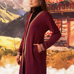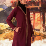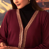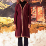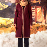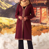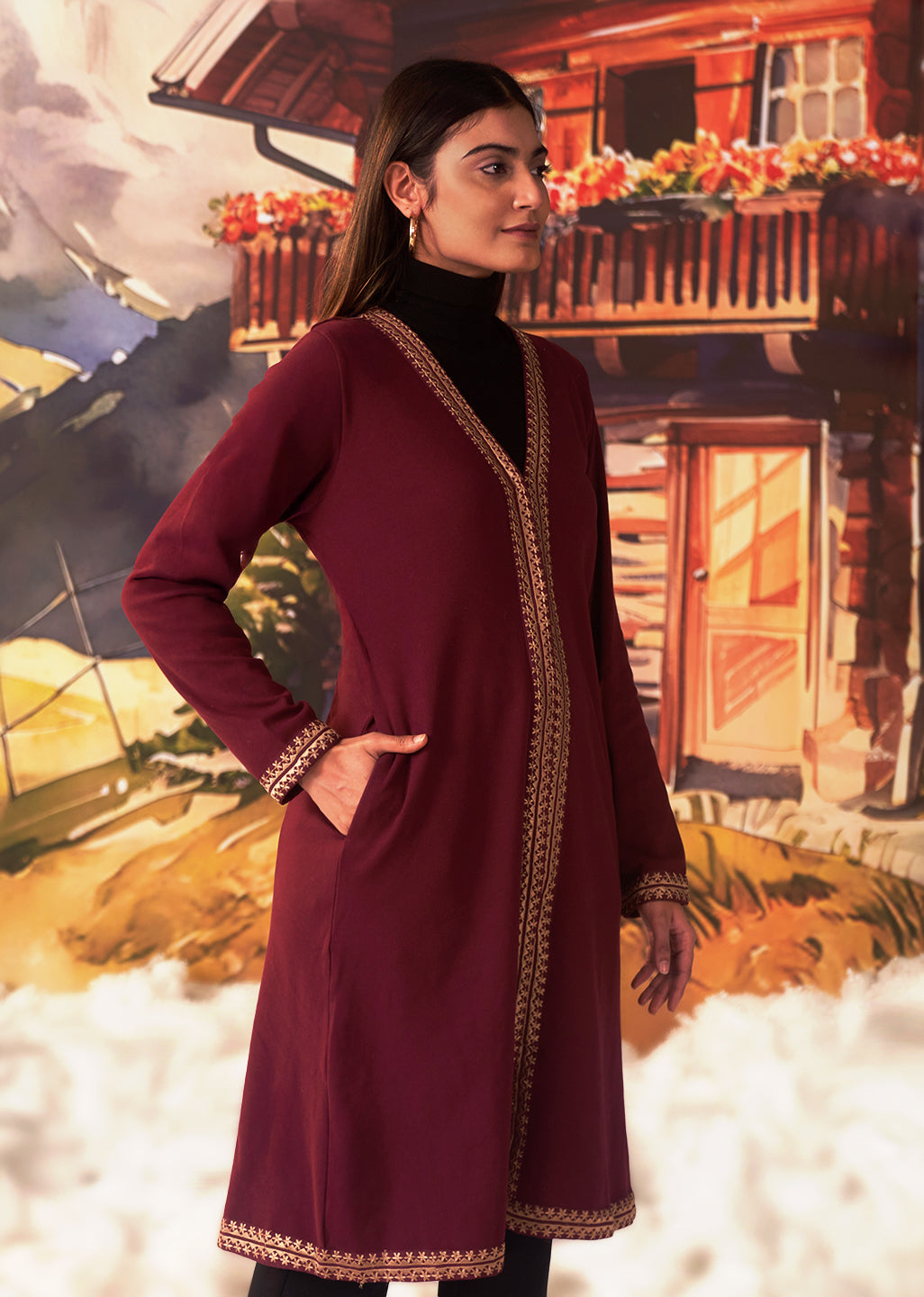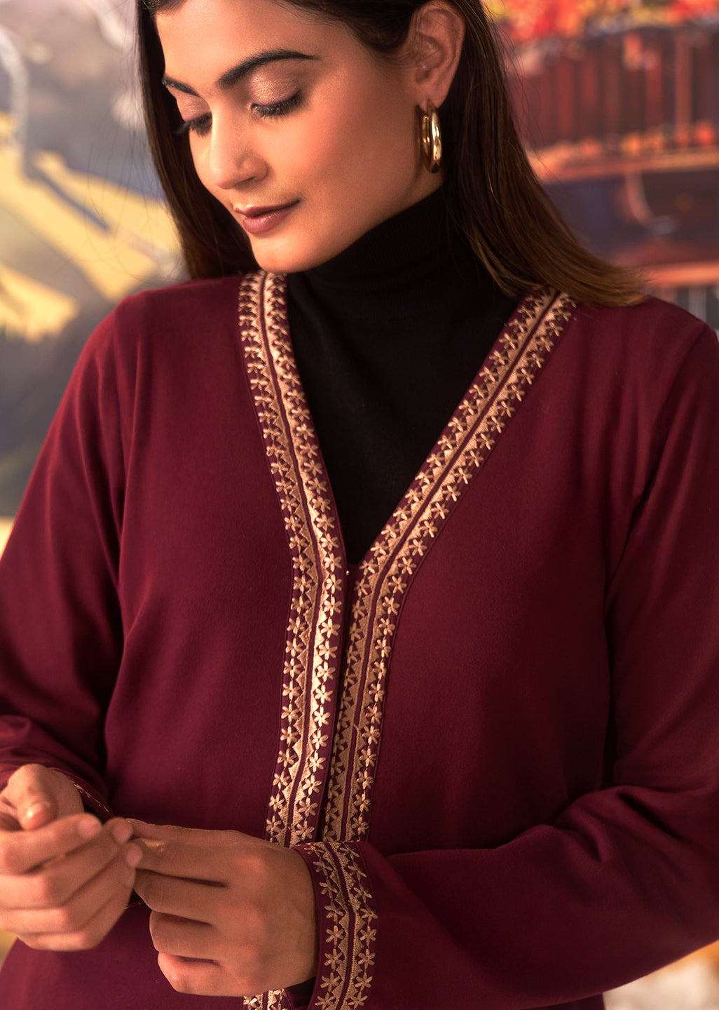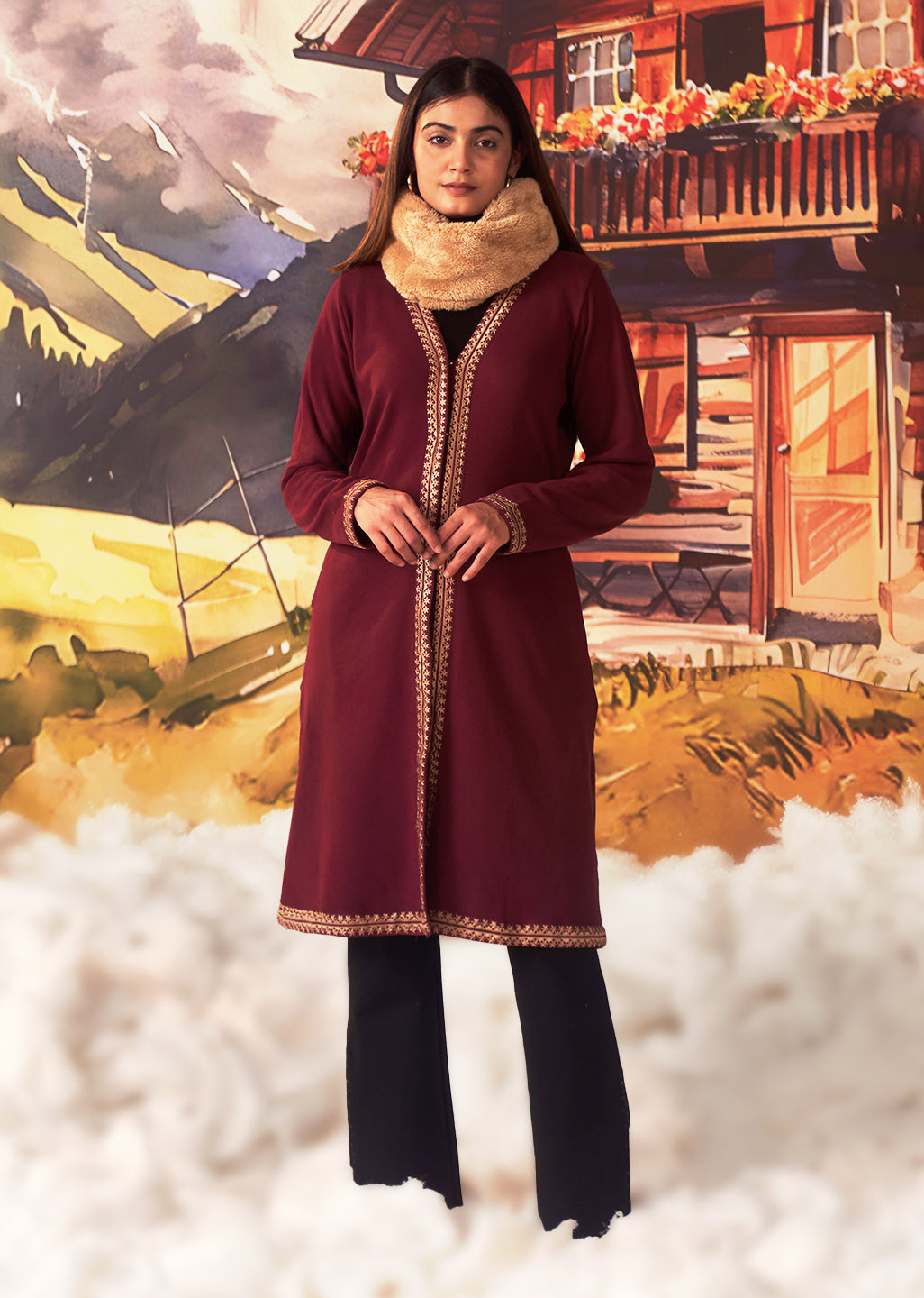Jia Maroon Embroidered Brushed Wool Shrug for Women