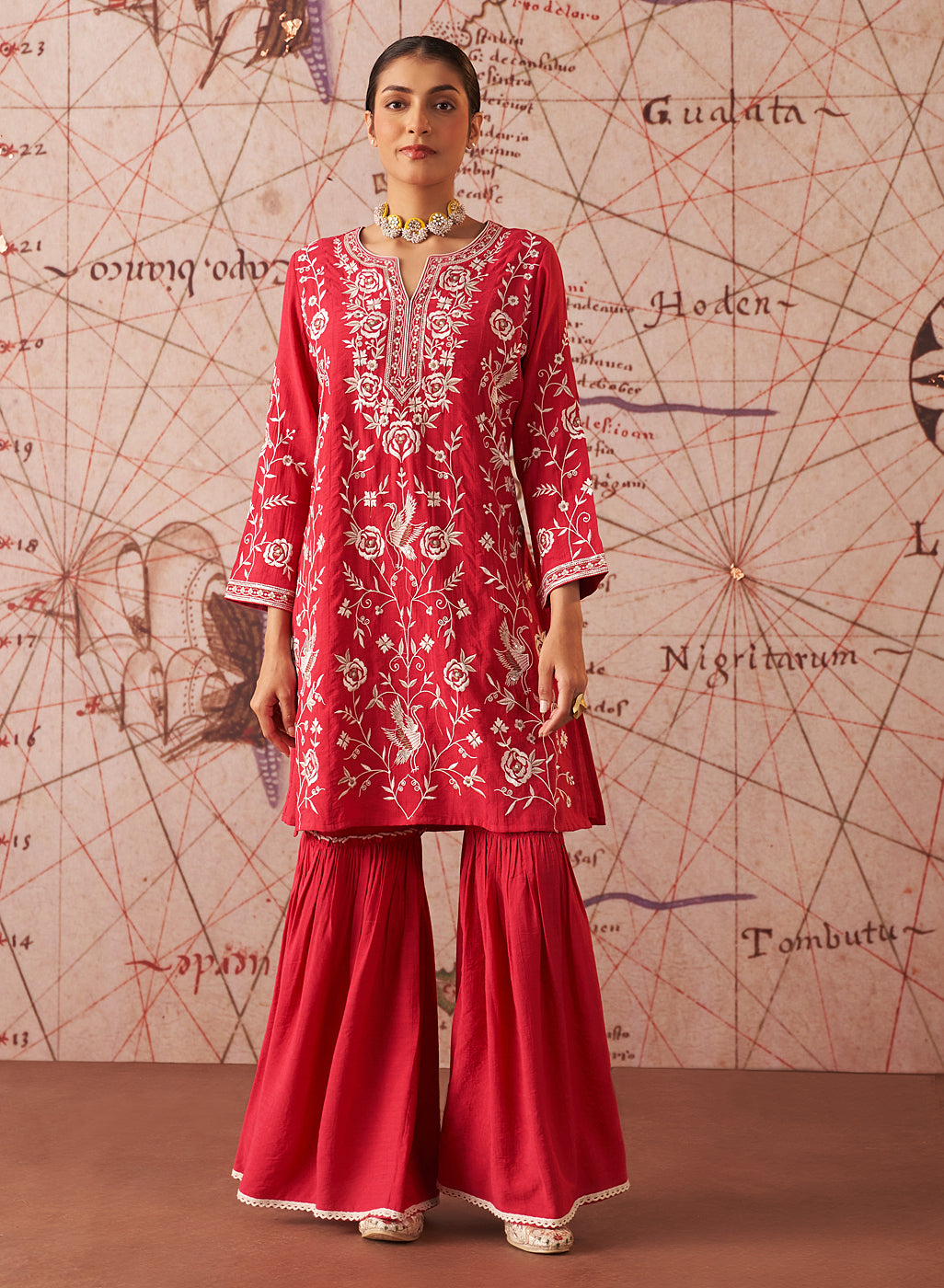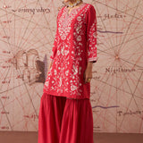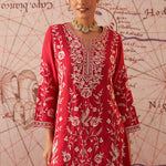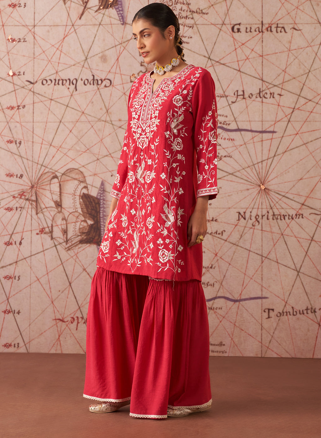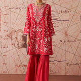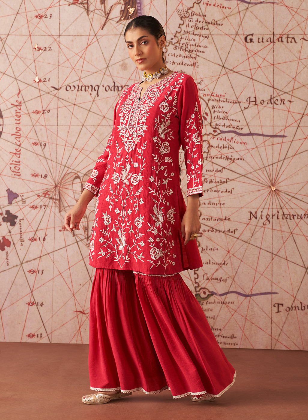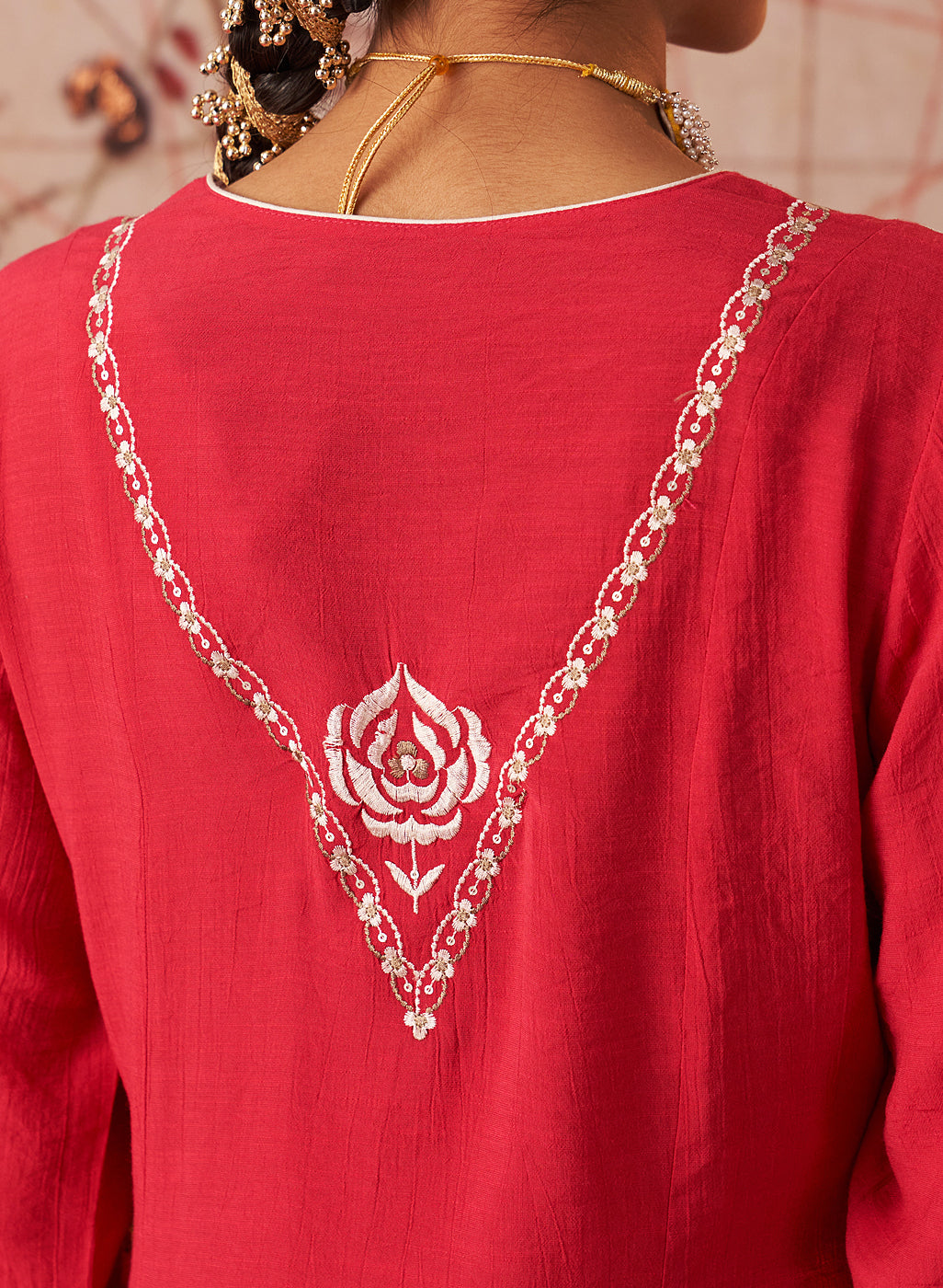 Joy Carmine Red Embroidered Rayon Salwar Suit Set with Dupatta