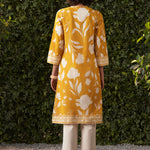 This June Co-ord set is a breath of fresh air, perfect for summer evenings that call for effortless grace and comfort. The kurta, crafted from lightweight rayon slub, features a vibrant all-over tropical-inspired print that exudes warmth and energy. This Co-ord set features mirror work paired with intricate thread embroidery and shimmering sequin highlights.