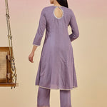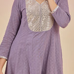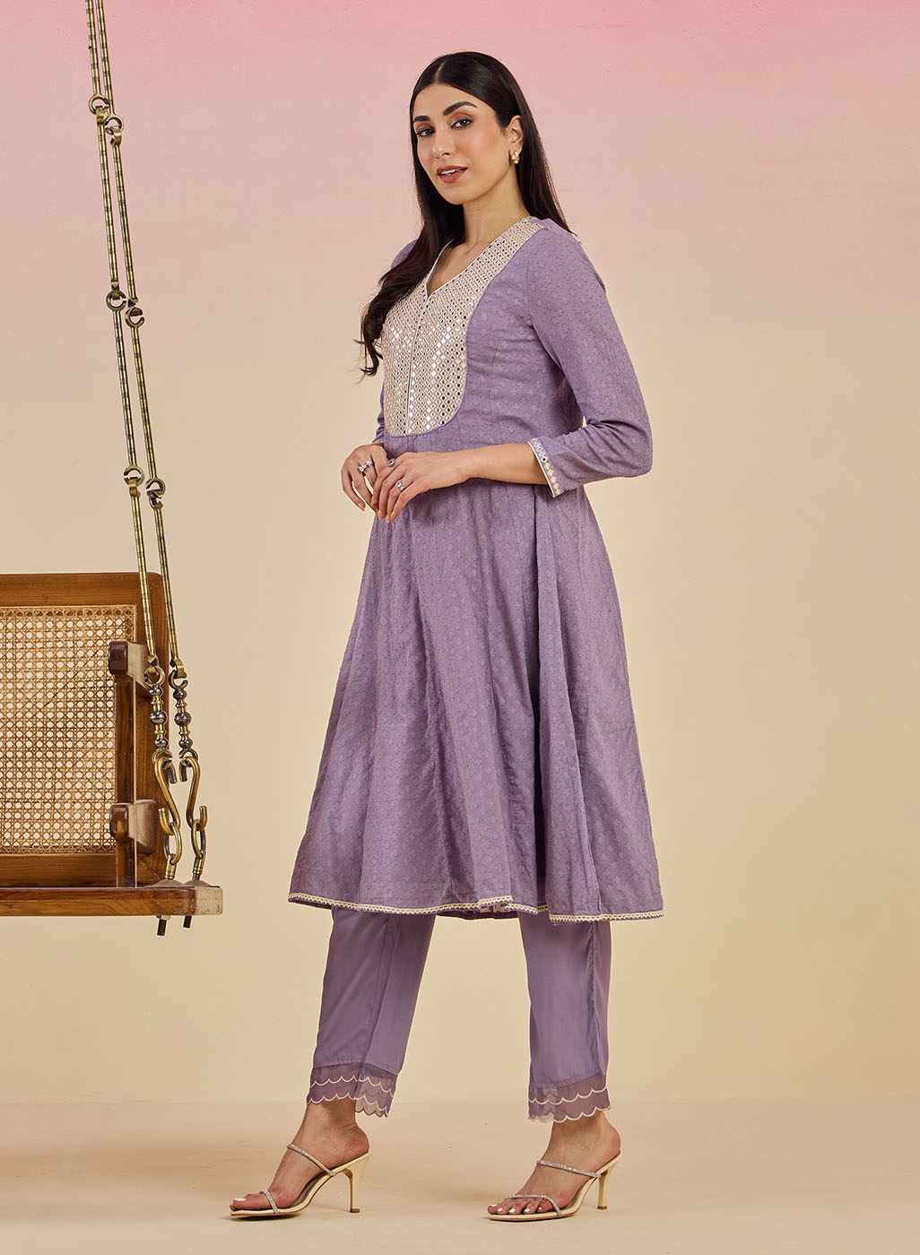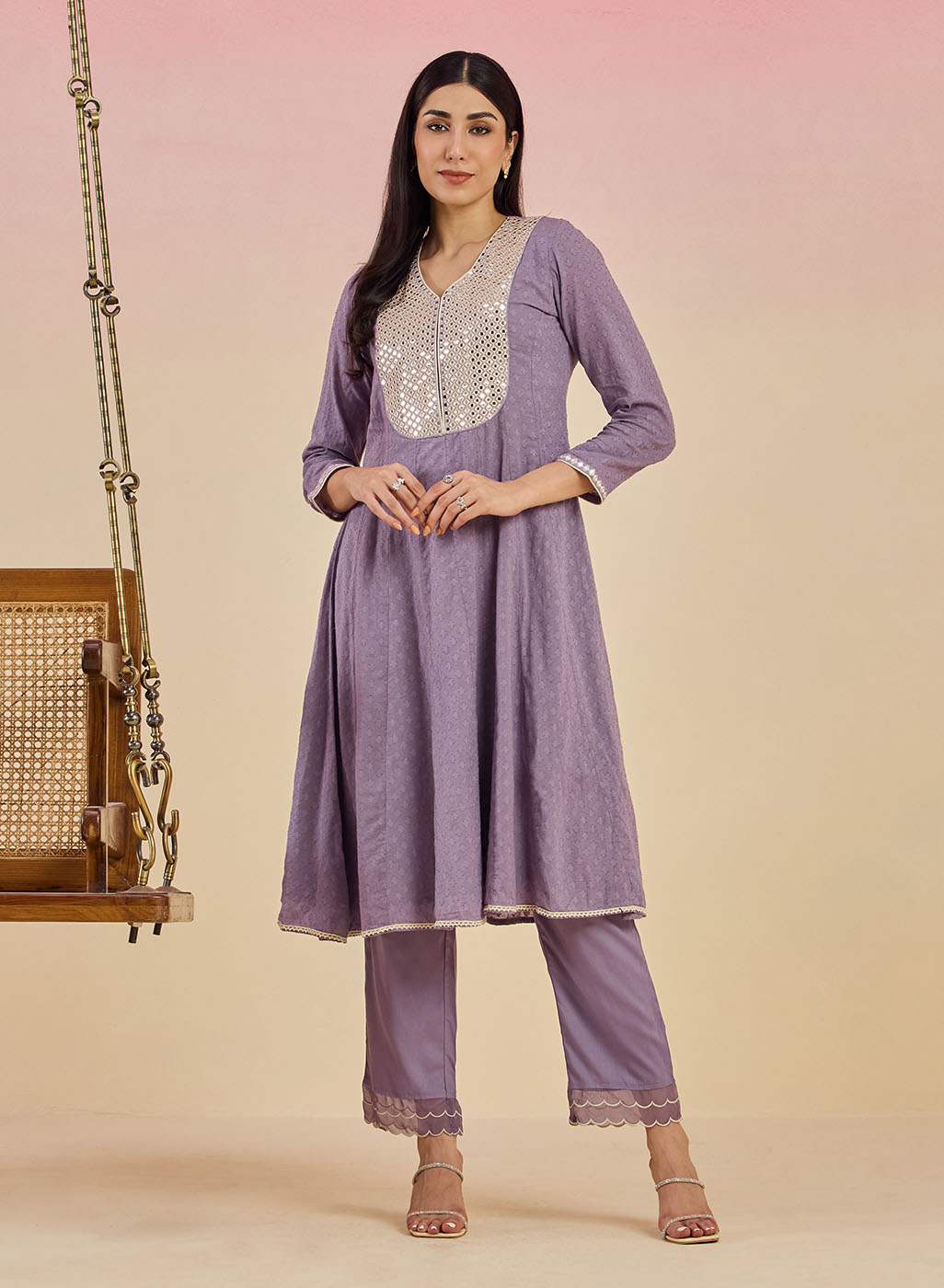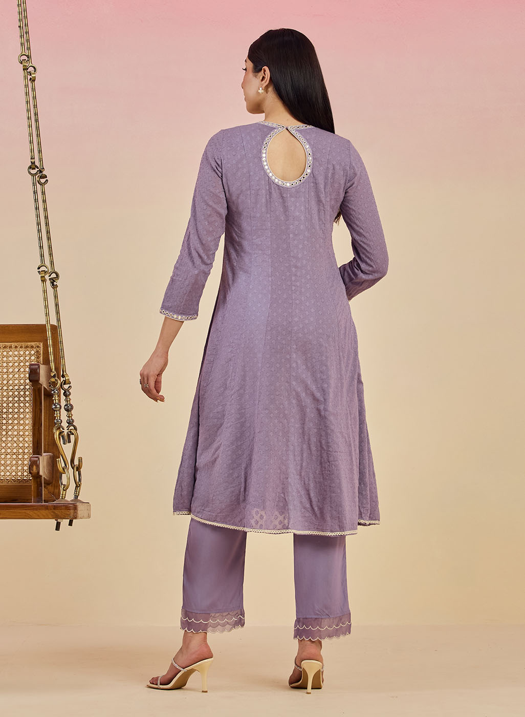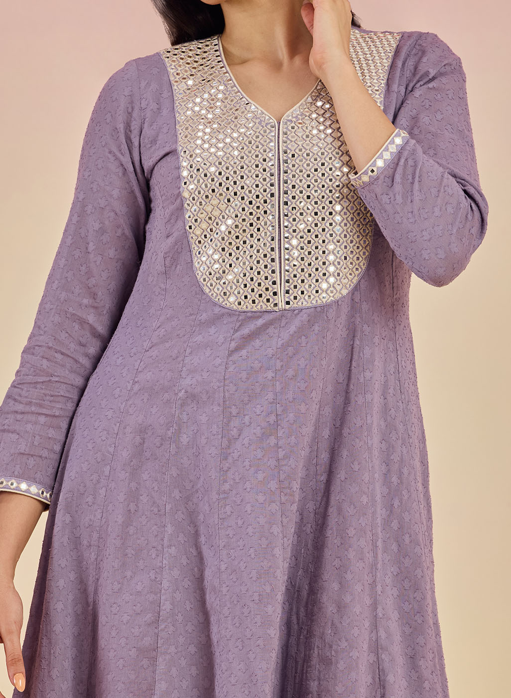 Kaya Lavender Cotton Jacquard Flared Mirrorwork Co-ord Set