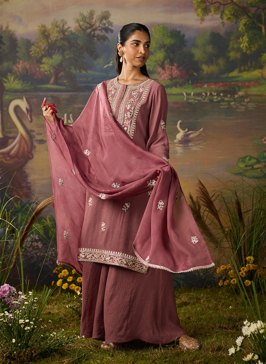 Khanak Pink Zari Embroidered Kurta Set with Dupatta