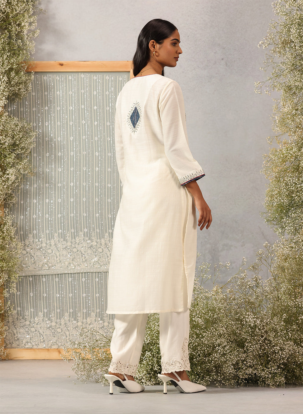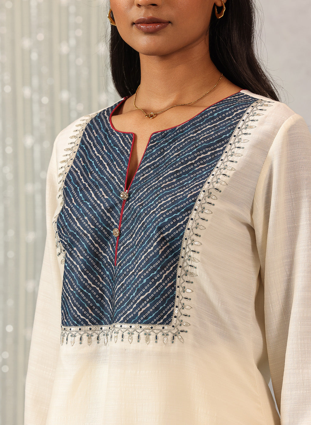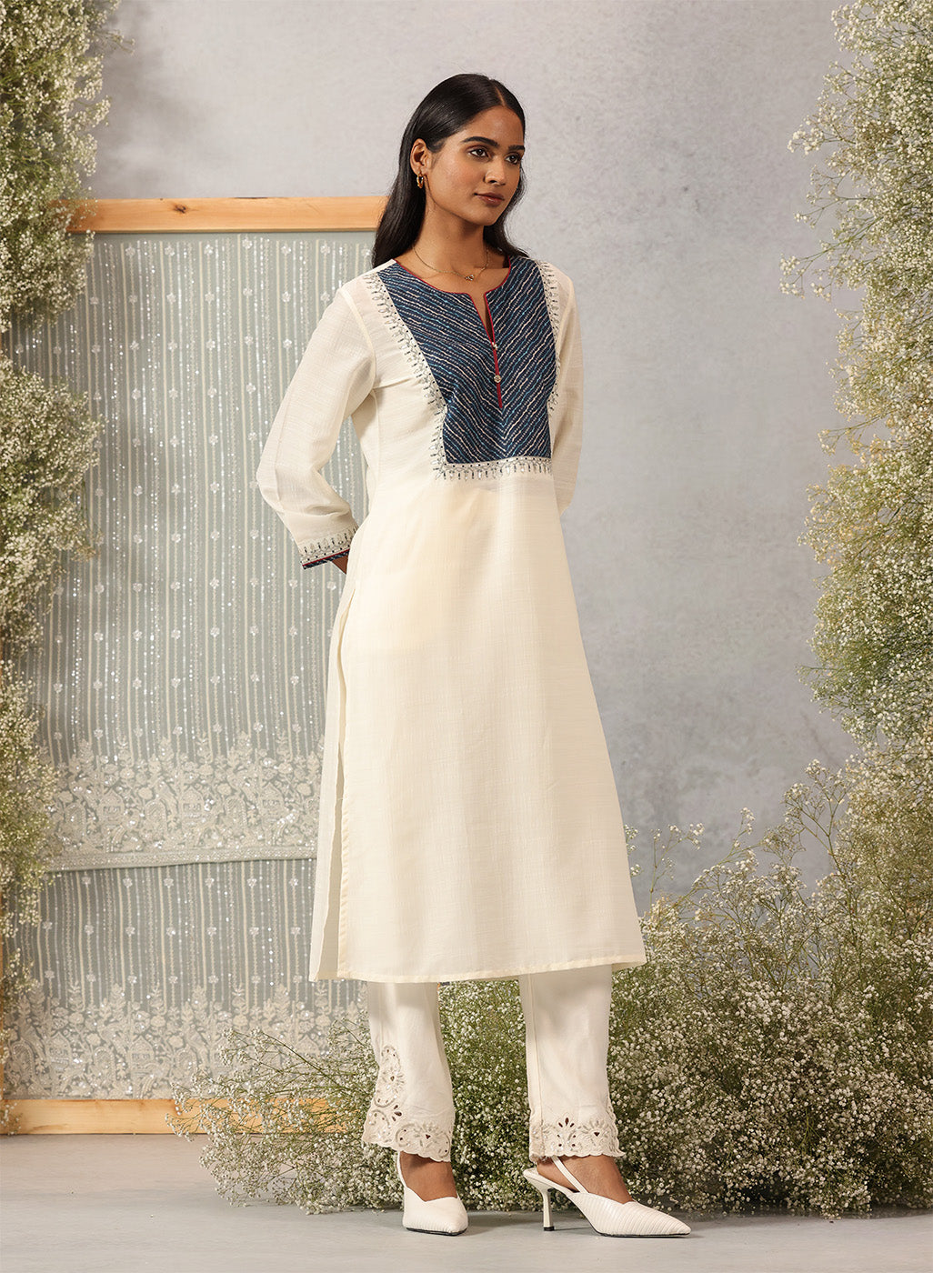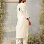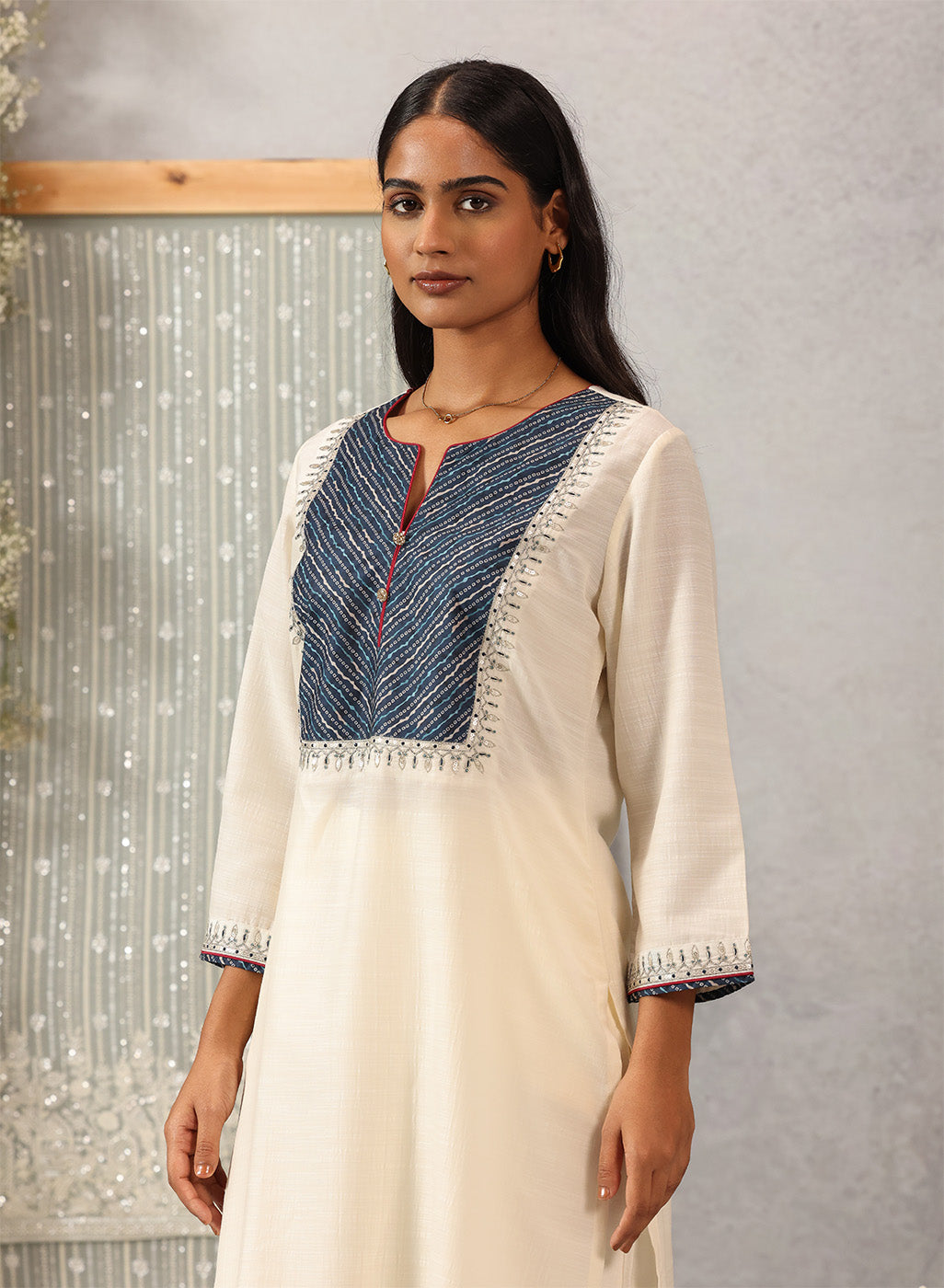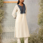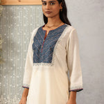 Khumar Pearl Ivory Embroidered Viscose SIlk Slub Long Kurti for Women