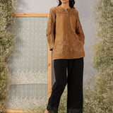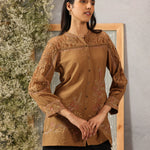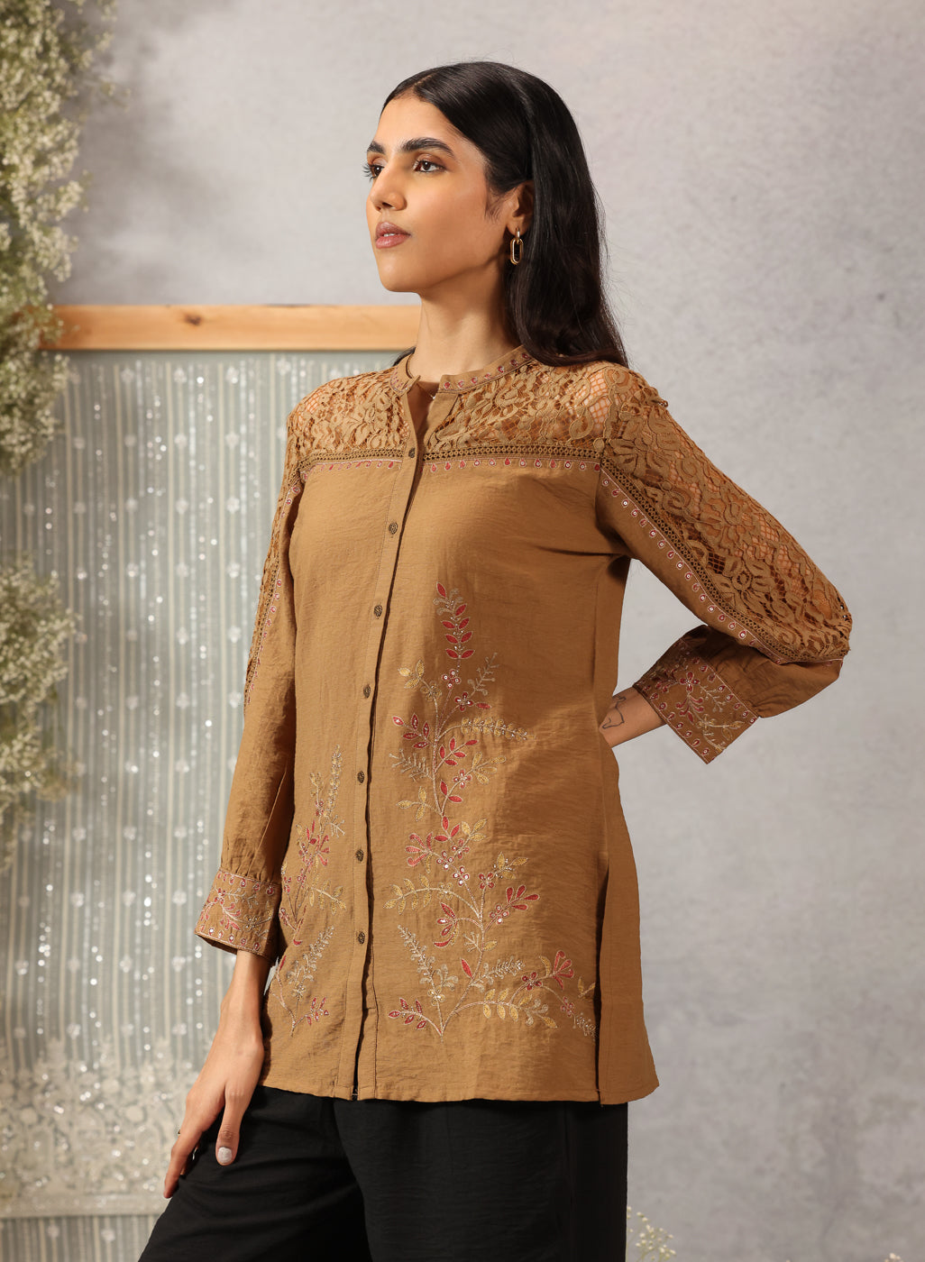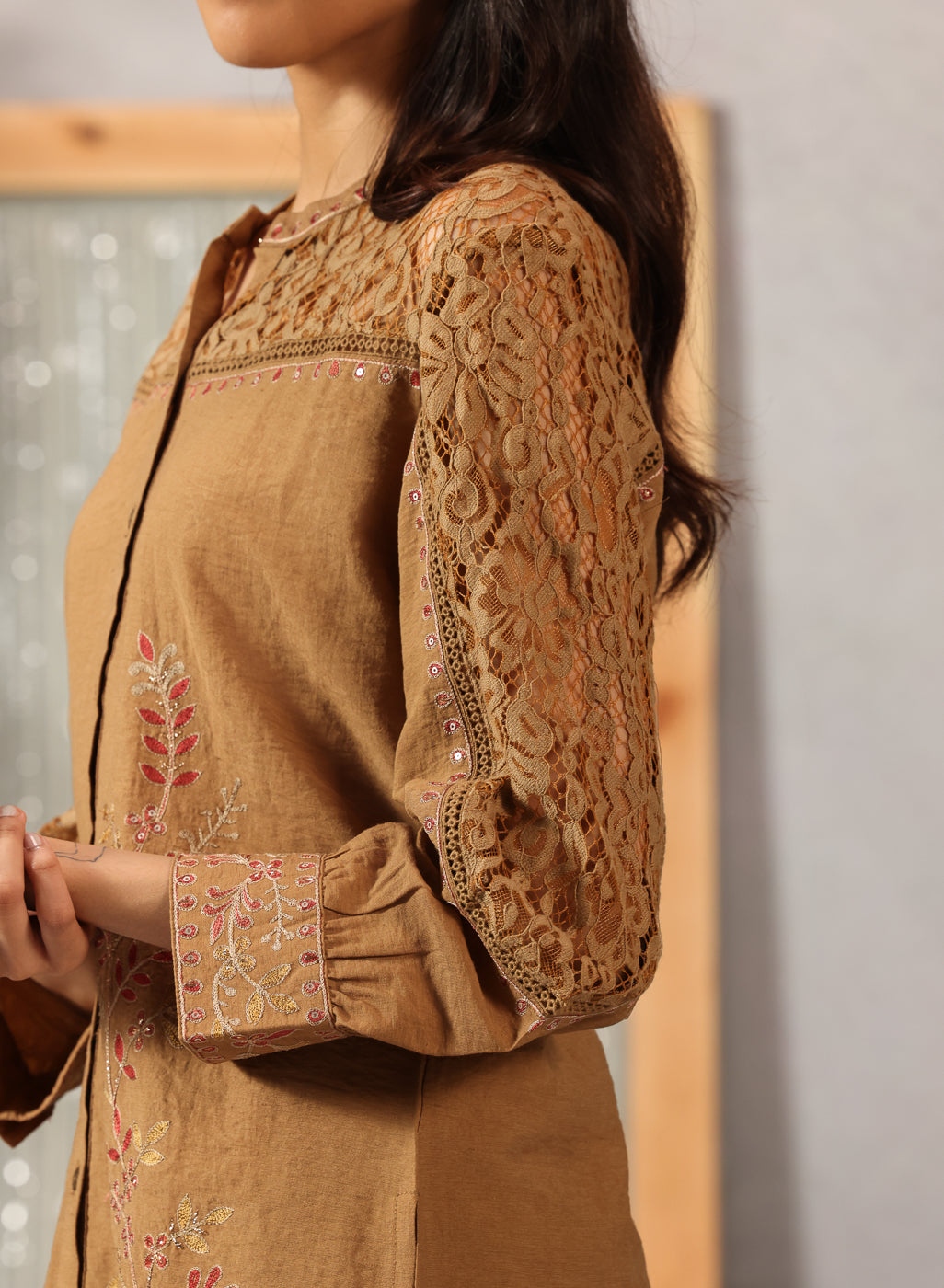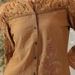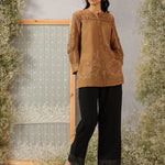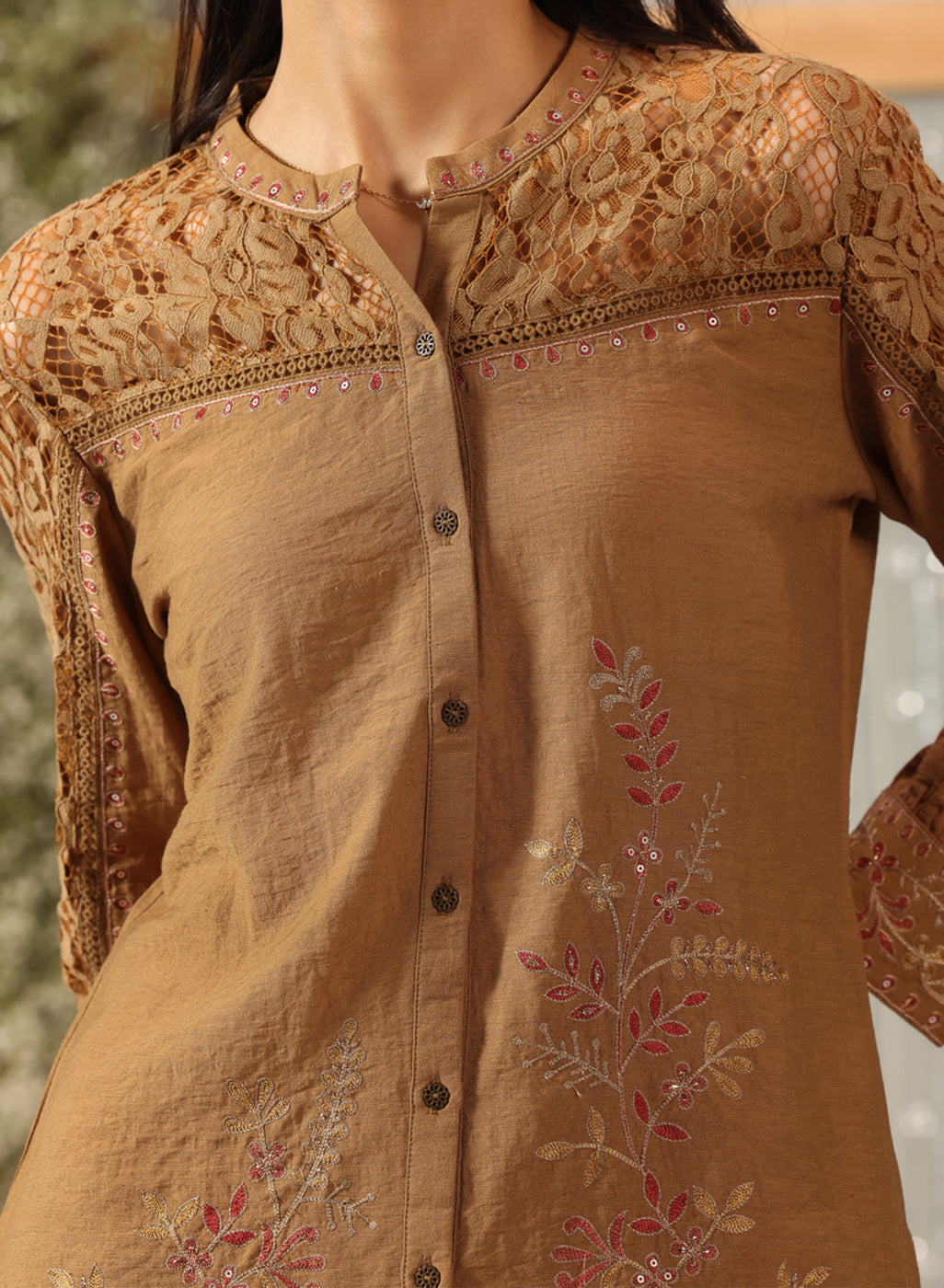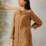 Khwab Golden Sage Embroidered Viscose Shirt for Women