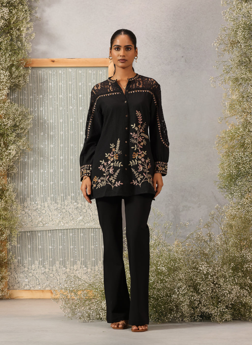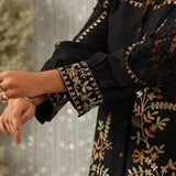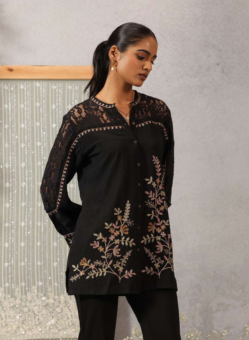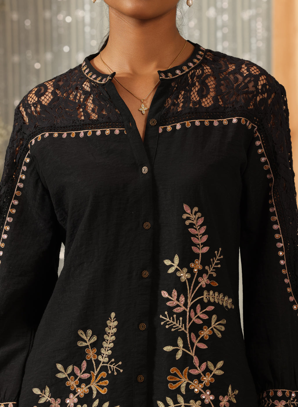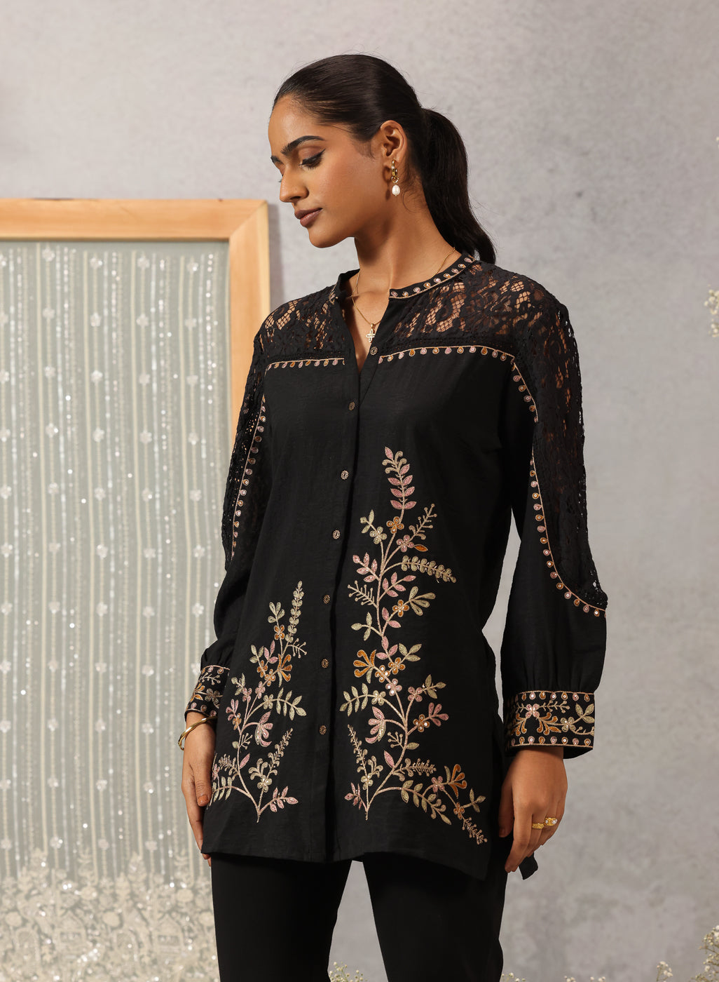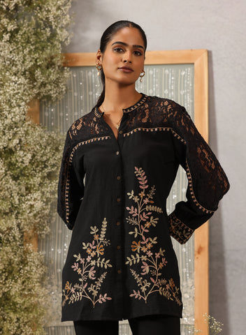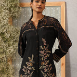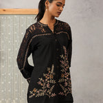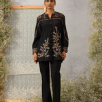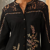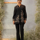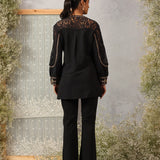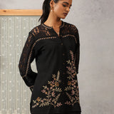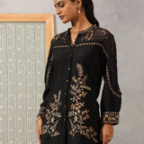 Khwab Onyx Black Embroidered Viscose Shirt for Women