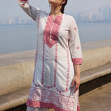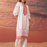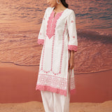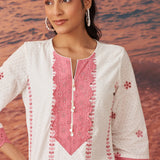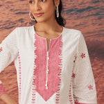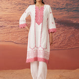 Kiana Pink Currant Embroidered Cotton Dobby Kurta Set for Women
