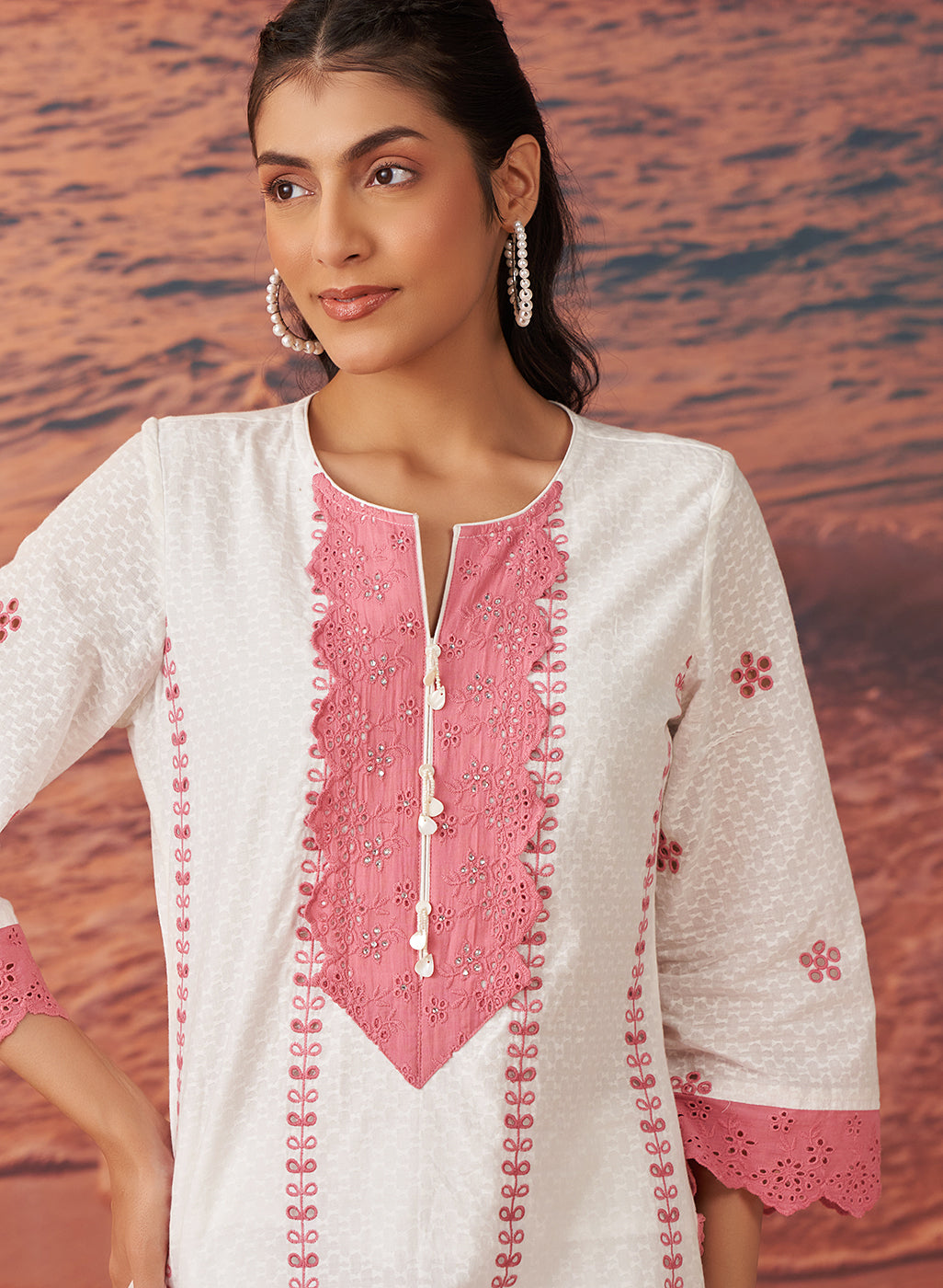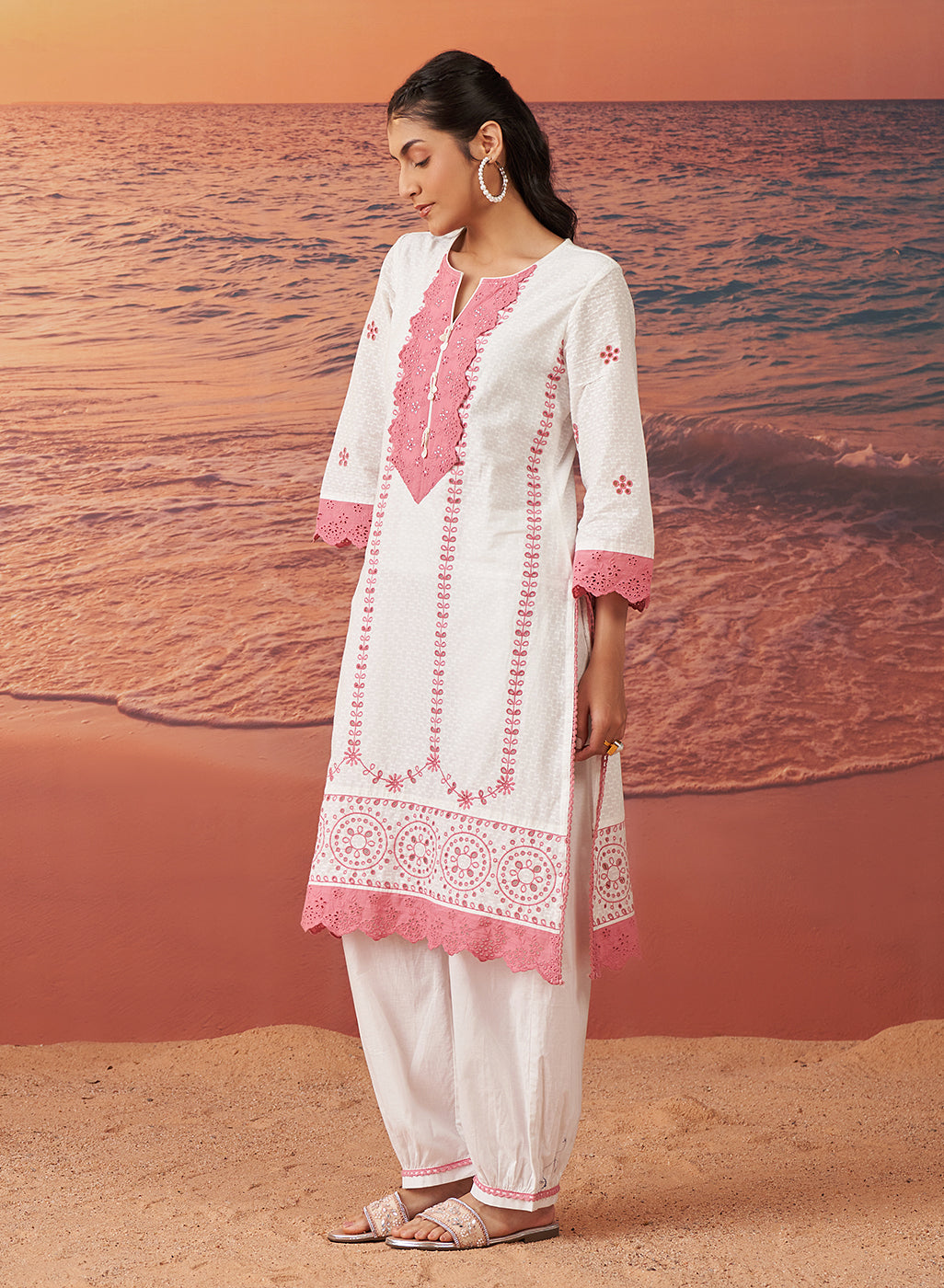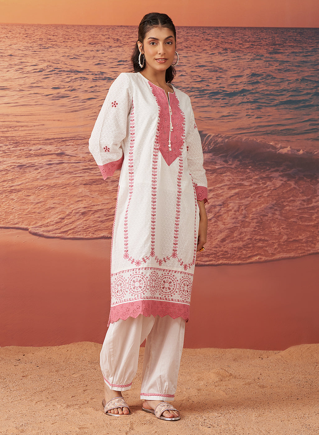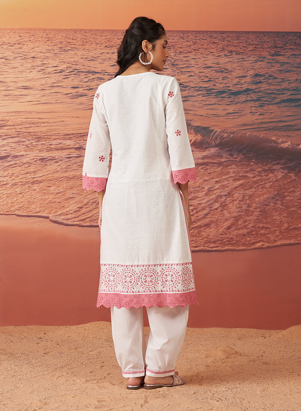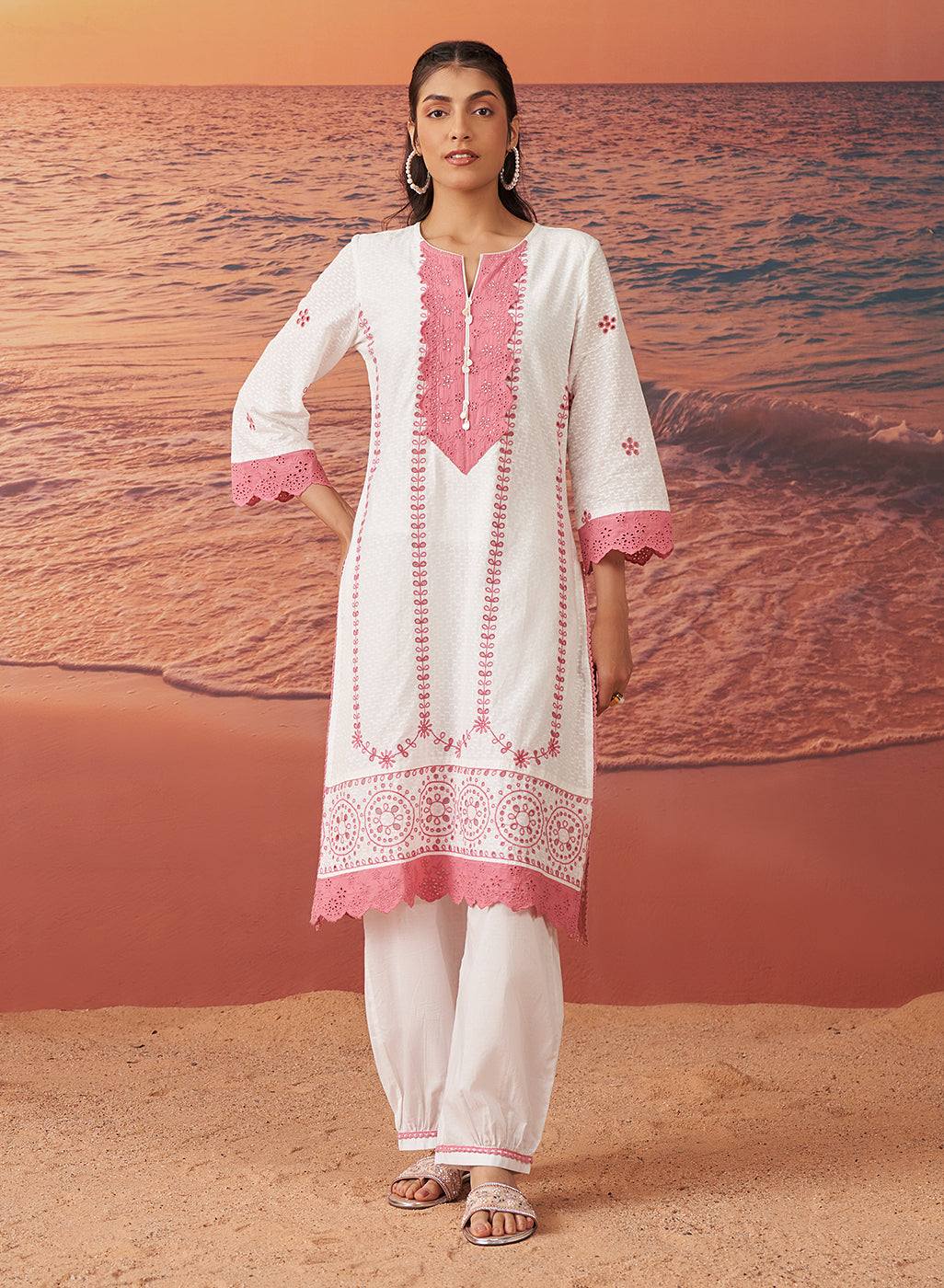 Add a touch of tradition to your festive wardrobe with our Kiana Embroidered Cotton Dobby Kurta Set for Women. Inspired by chikankari work, it is made from lightweight and breathable fabric with dobby weave.