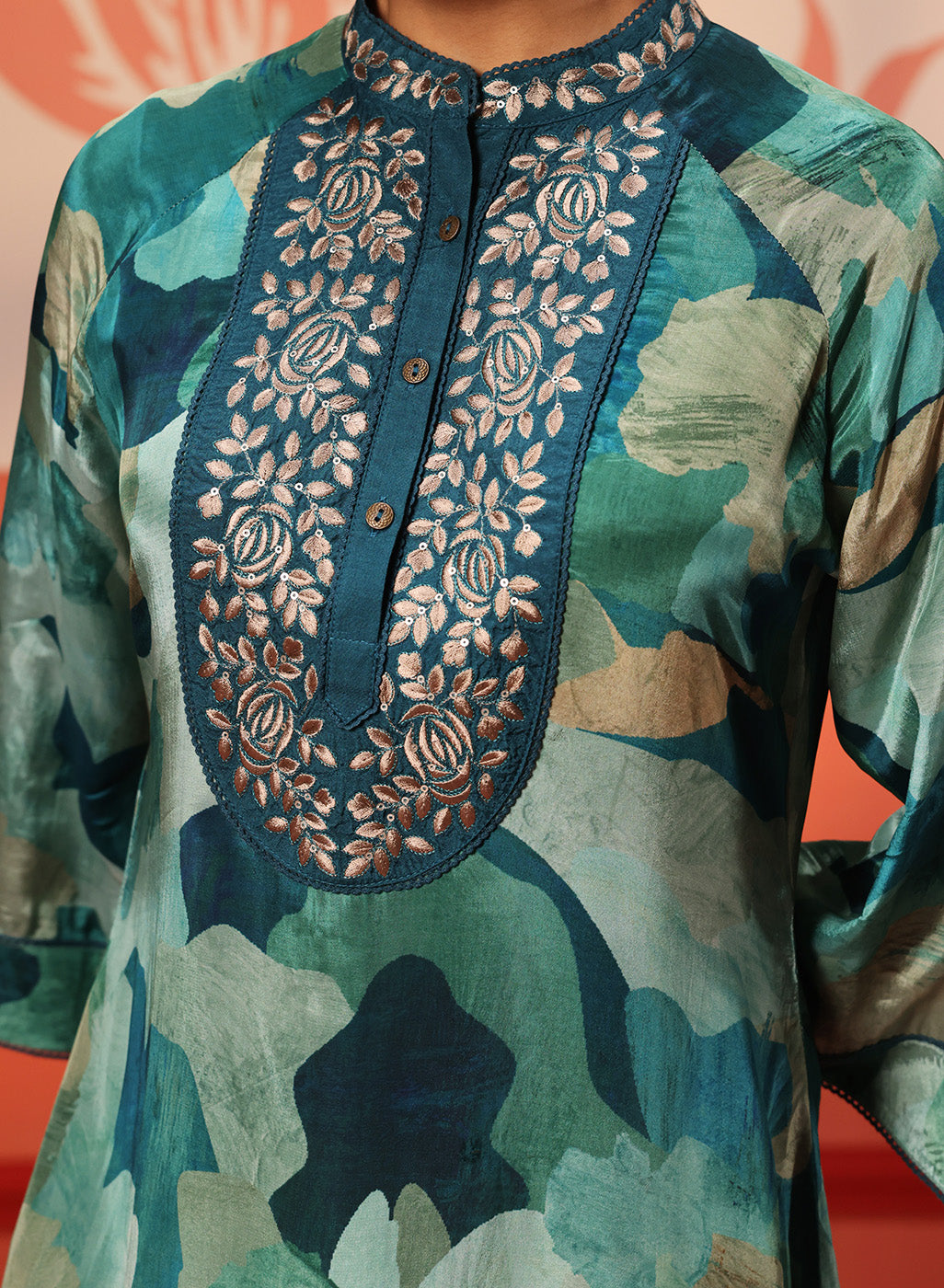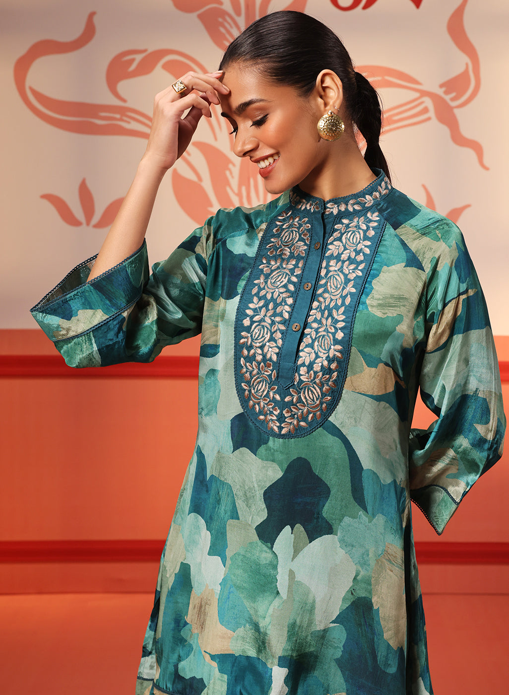 Low angle view of a Kinza Blue Crepe Printed Long Top