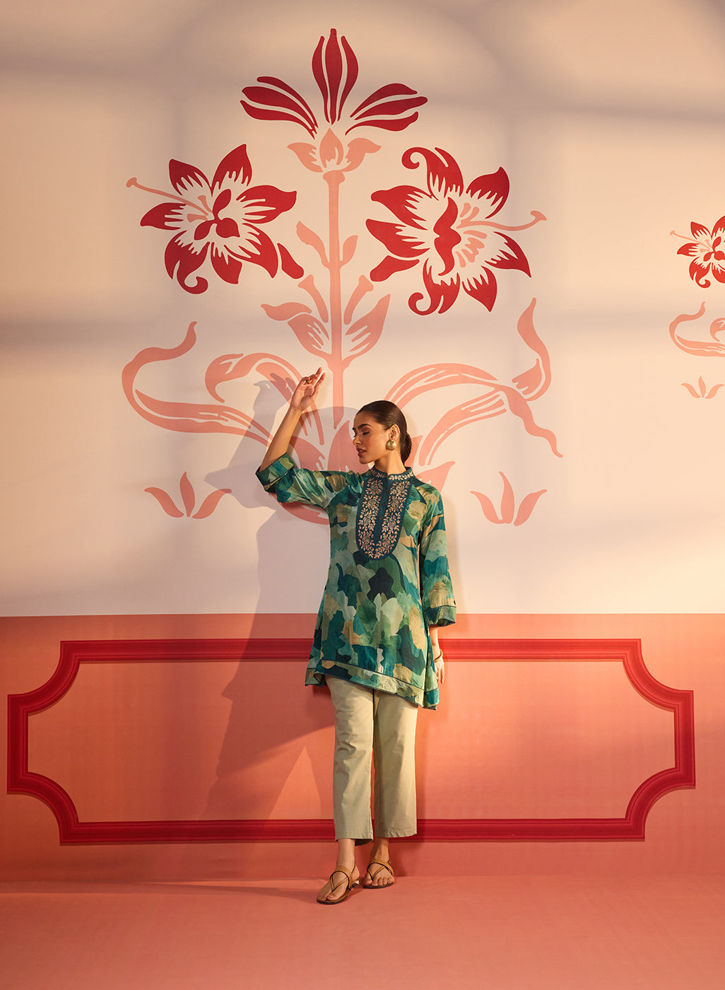 Elevate your evening gatherings with the subtle allure of our Kinza printed long top for women, expertly handcrafted by our skilled artisans. Crafted from a luxurious, soft, and breathable fabric, this piece effortlessly combines style and comfort, allowing you to glide through your events with effortless grace.