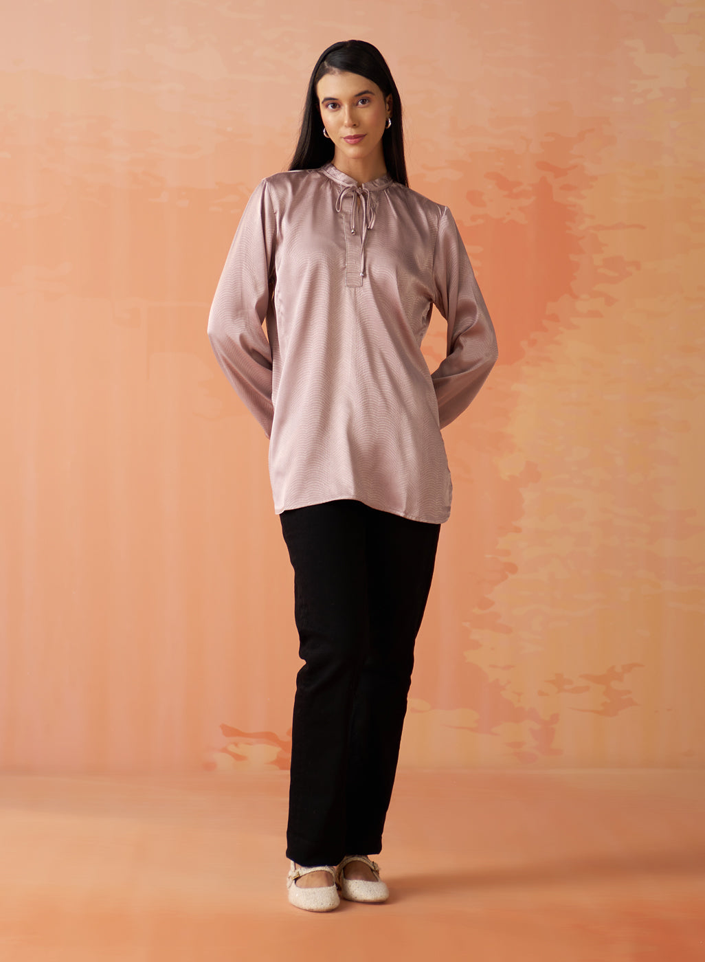 •Pair it with tailored trousers and complete the look with delicate jewelry and heels.