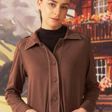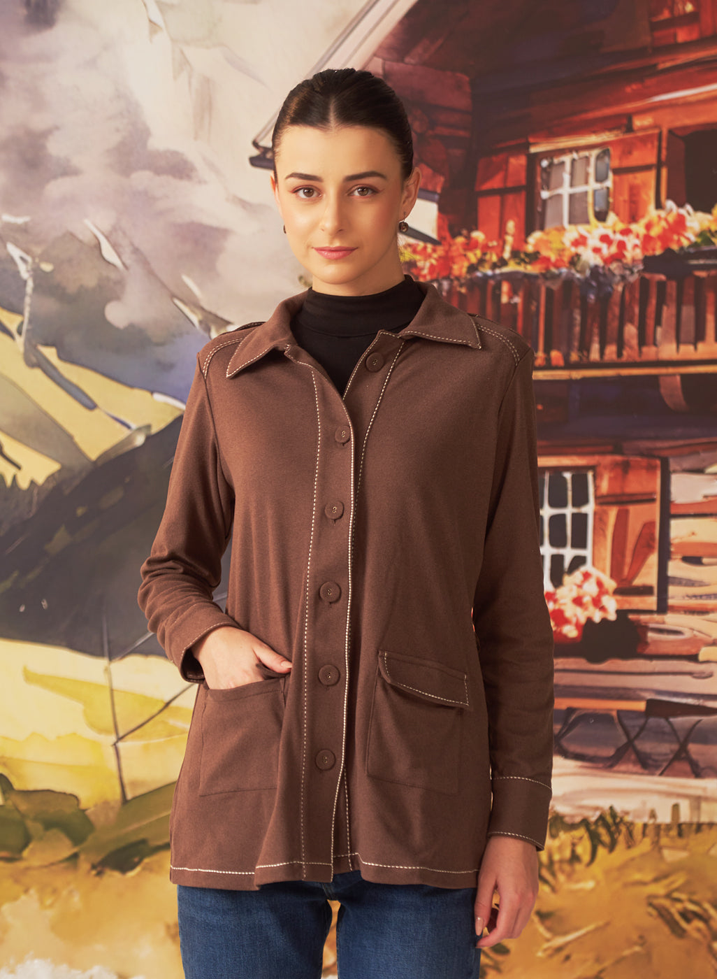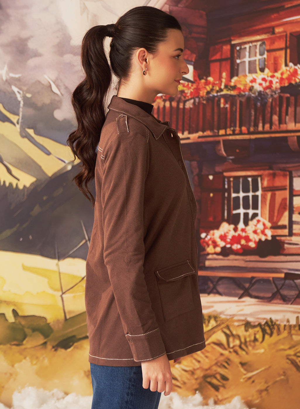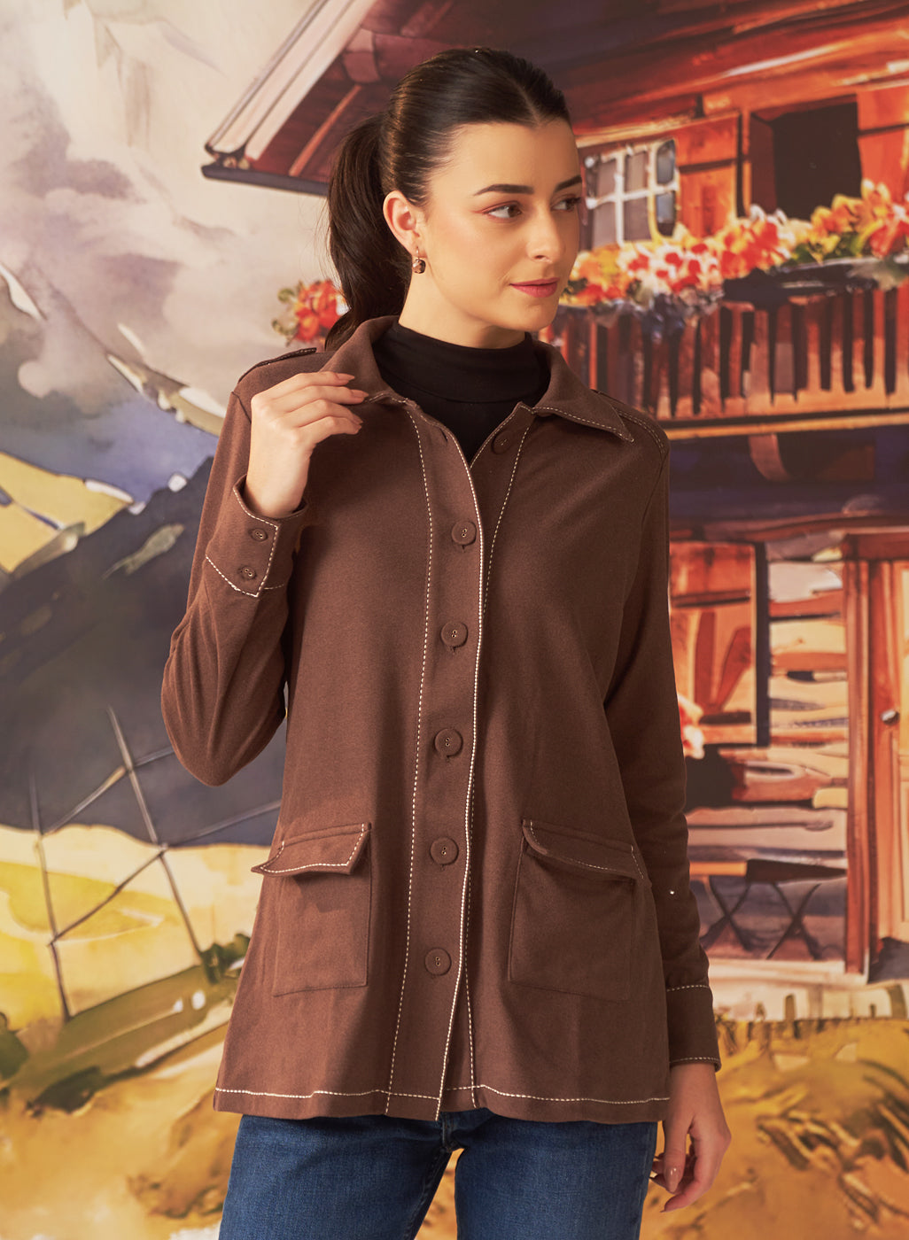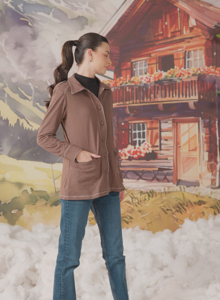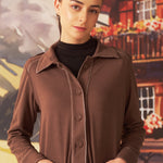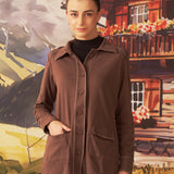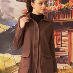 Introducing the Liah Ash Brown Monochrome Brushed Fleece Jacket for Women, a versatile and stylish piece that effortlessly combines the structure of a jacket with the cosy feel of a shirt. Made from soft, lightweight brushed fleece, this shacket is ideal for layering during transitional seasons, keeping you comfortable and warm in a chic silhouette.