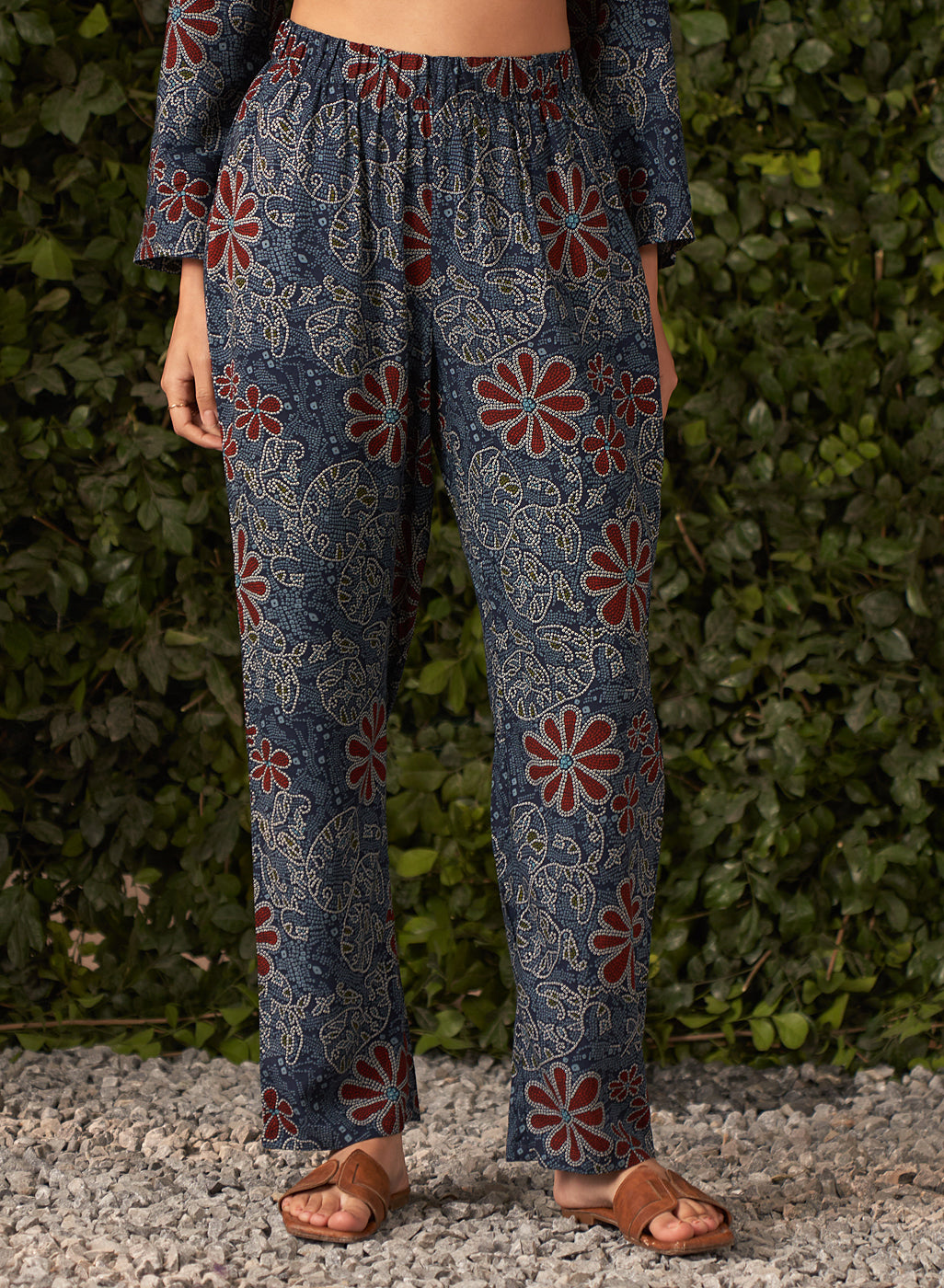 •Paired with straight-fit printed pants featuring convenient slit pockets, this set strikes the perfect balance between laid-back charm and artisanal finesse.