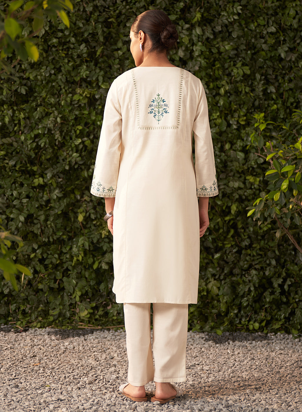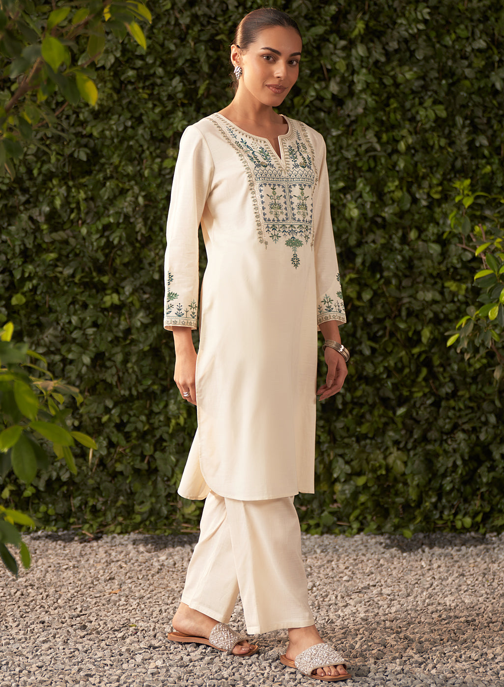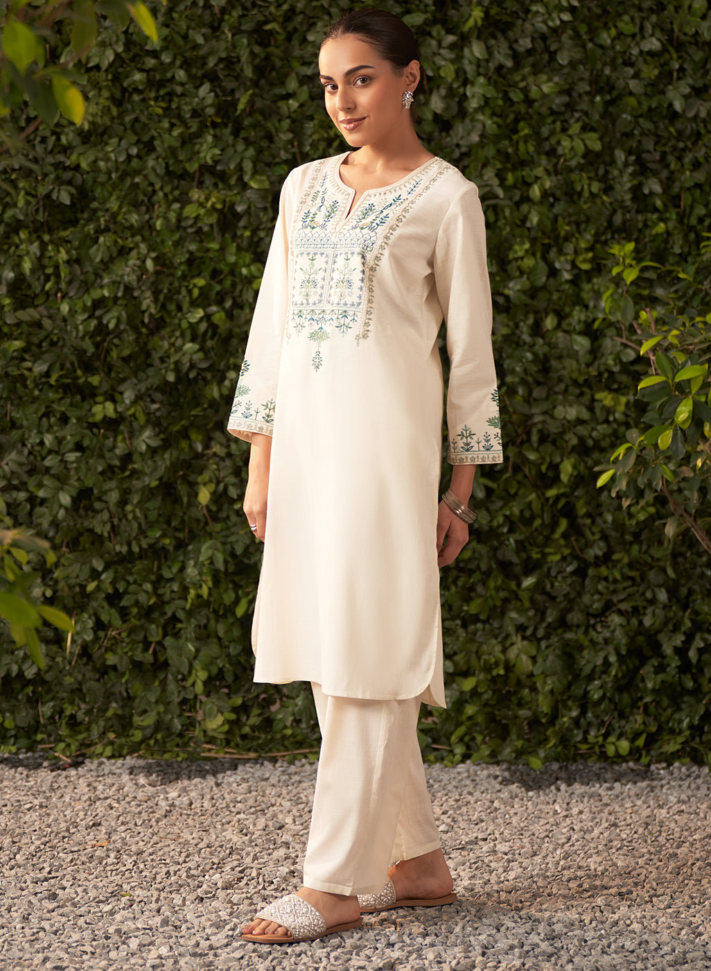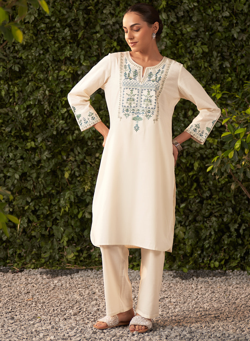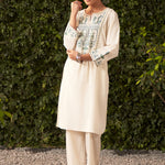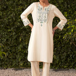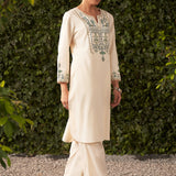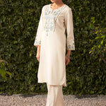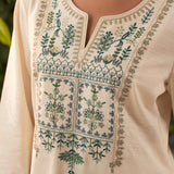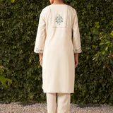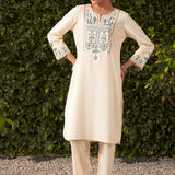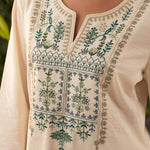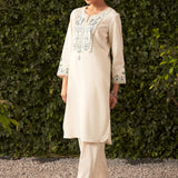 Lily Pearl Ivory Embroidered Cotton Co-ord Set for Women