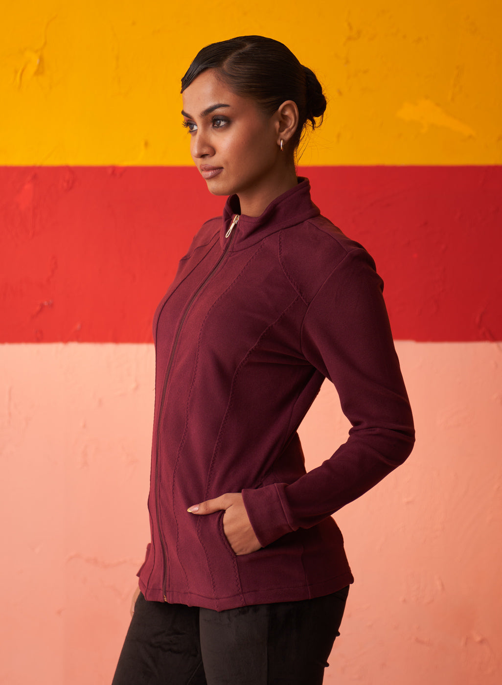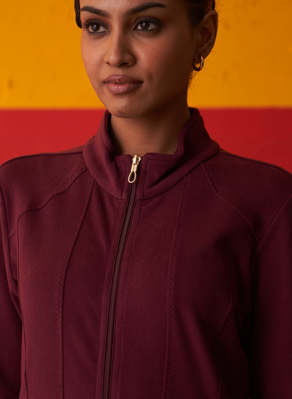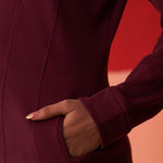 • This high-neck velvet jacket is a must-have for every woman’s winter closet.