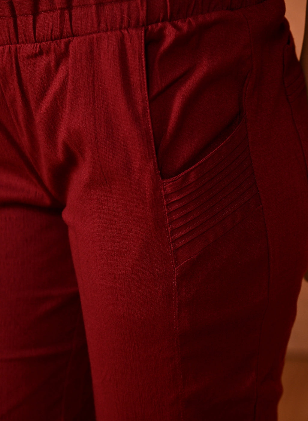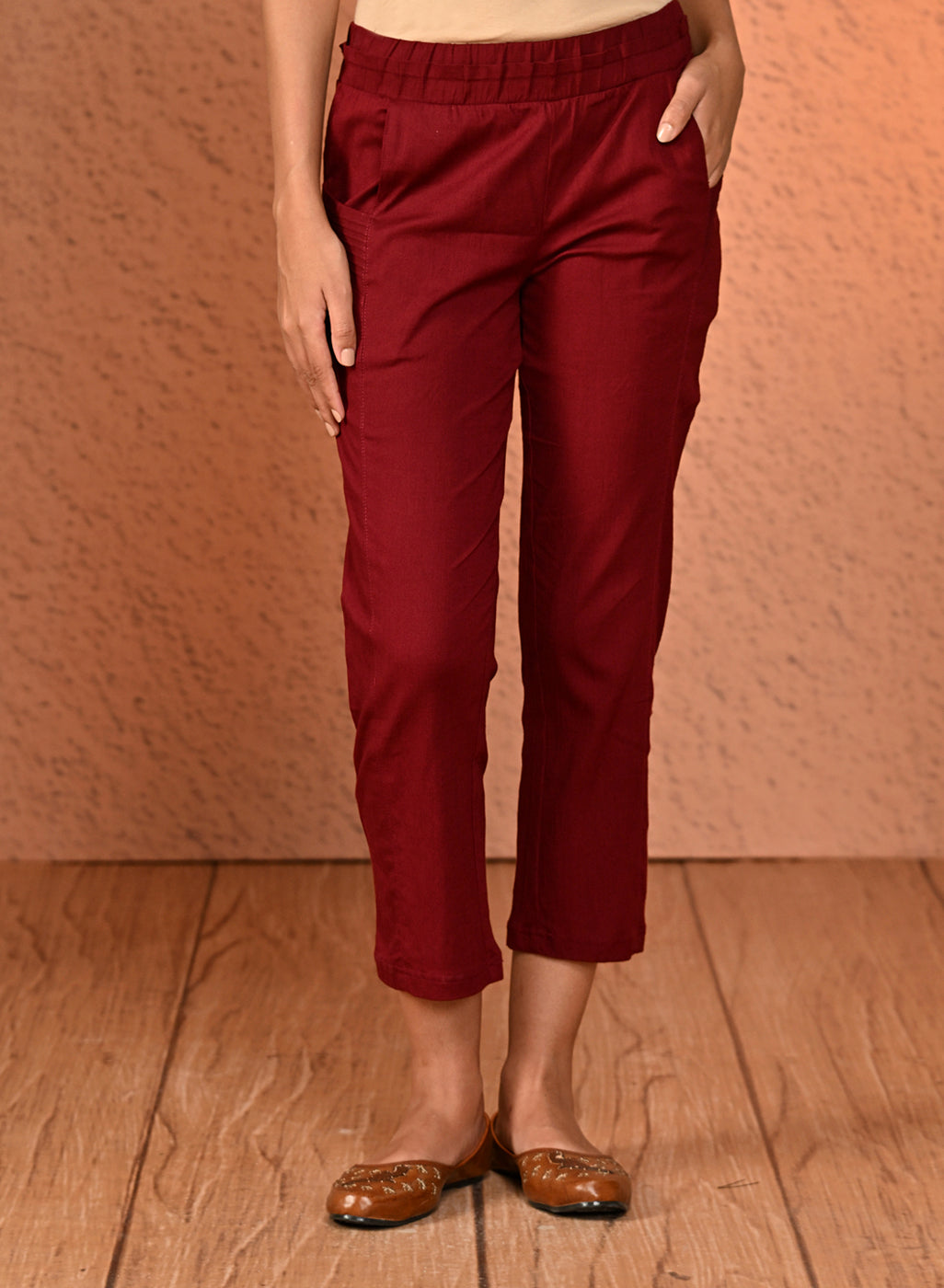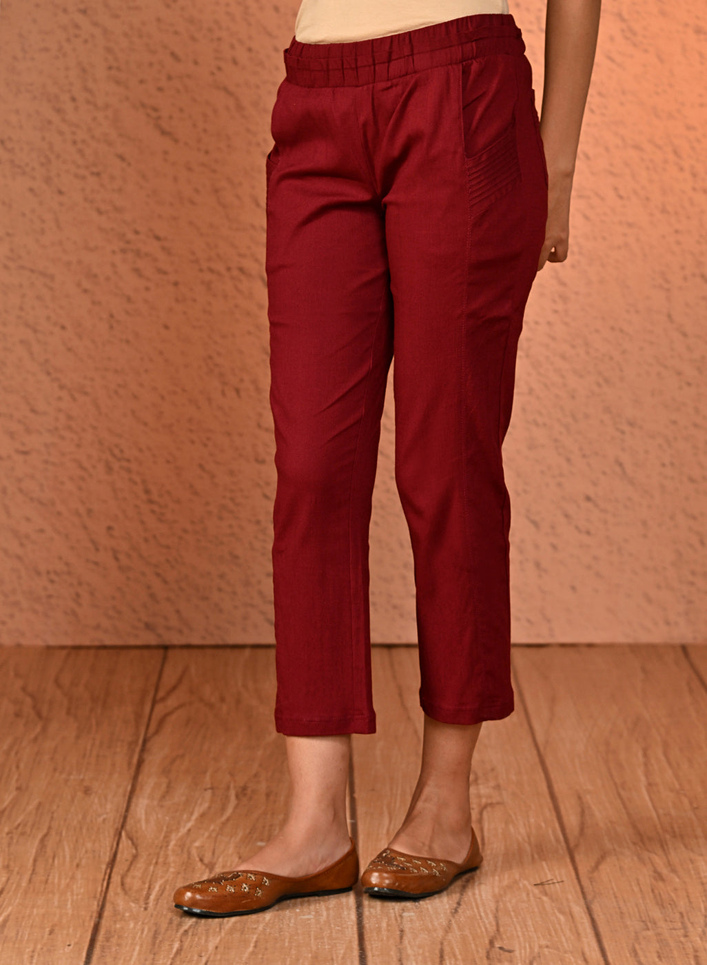 Our Ayeza Maroon Classic Fit Pants for Women offer a perfect blend of comfort and elegance, ideal for both casual and semi-formal occasions. Crafted from soft, breathable fabric with a slight stretch, these pants provide all-day comfort while ensuring a flattering fit.