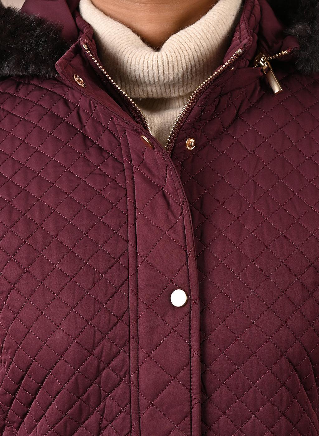 Maroon Quilted Jacket with attached Hood