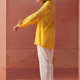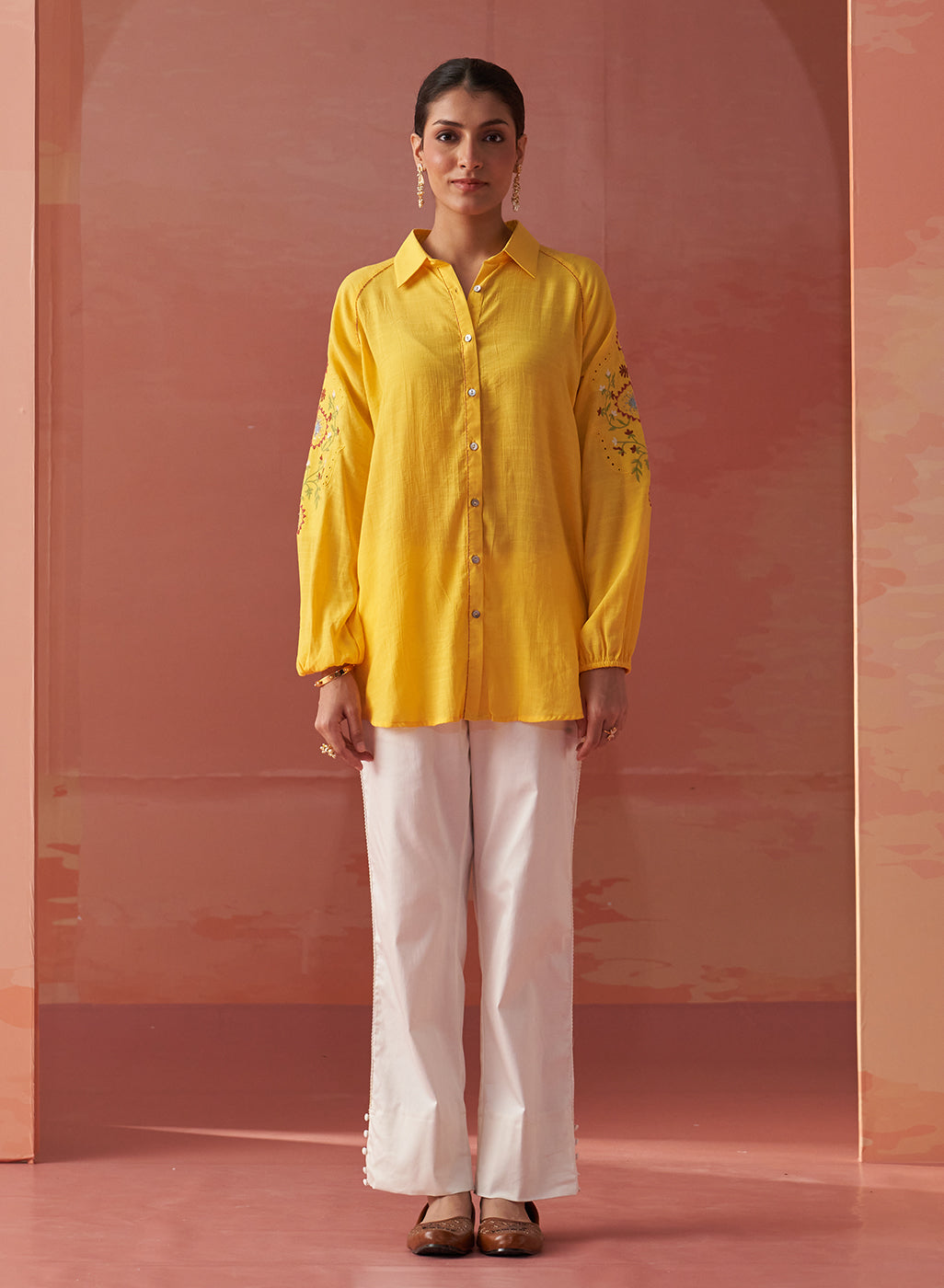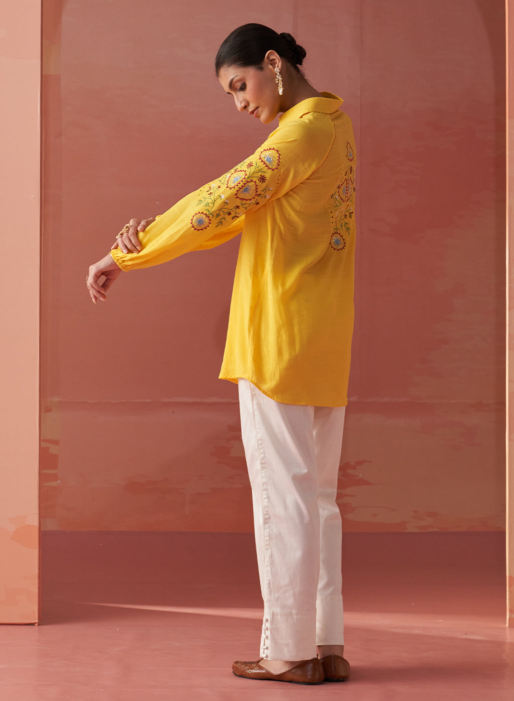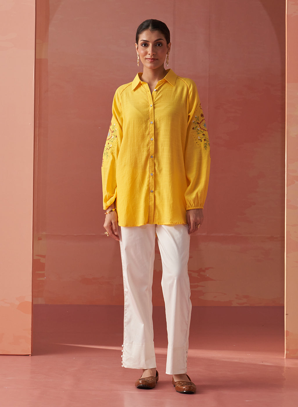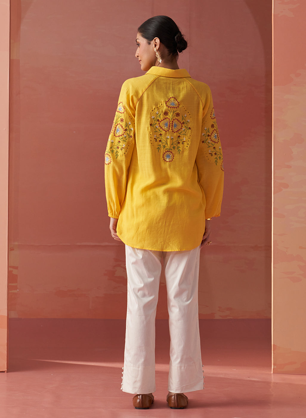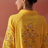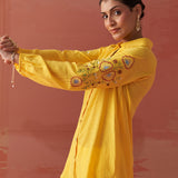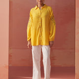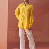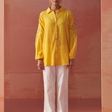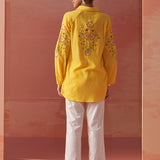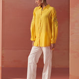 Mayal Yellow Embroidered Cotton Linen Shirt for Women