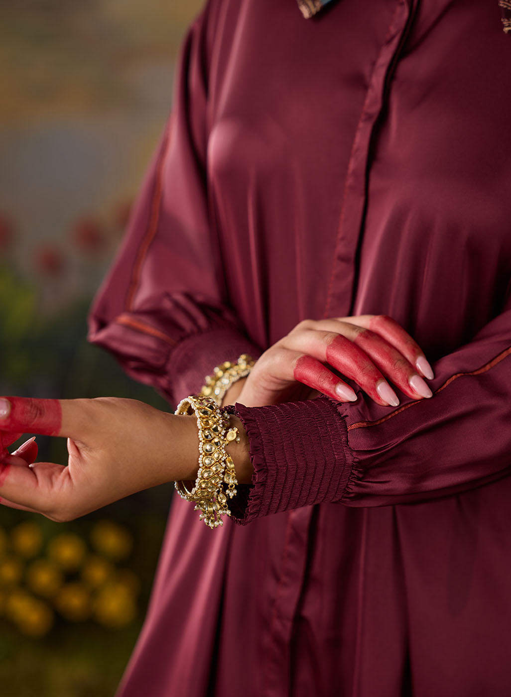 • Gathered full sleeves with smocked cuffs