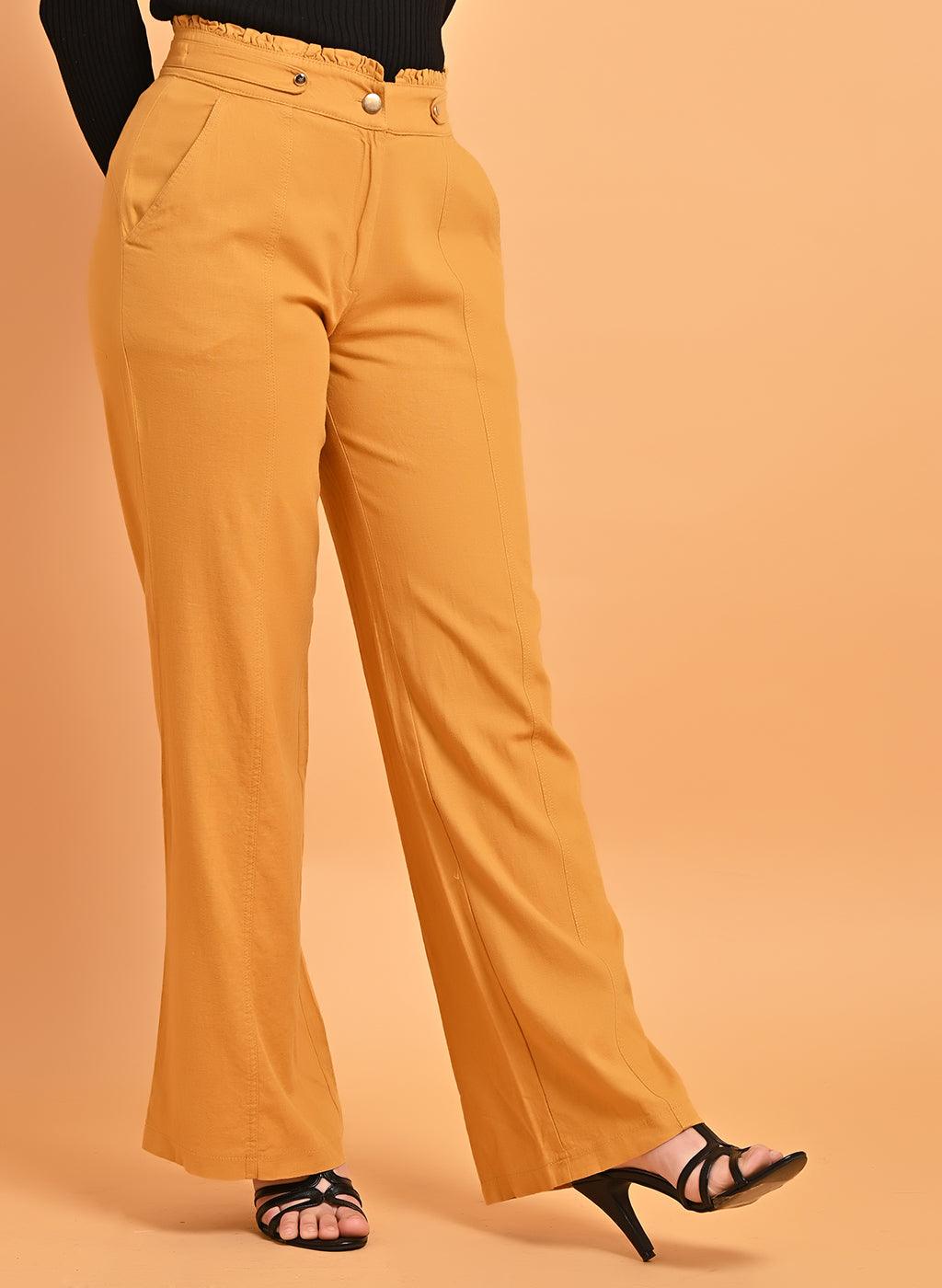 Mustard Flared Paneled Pant with Pleated Fabric Embellishment