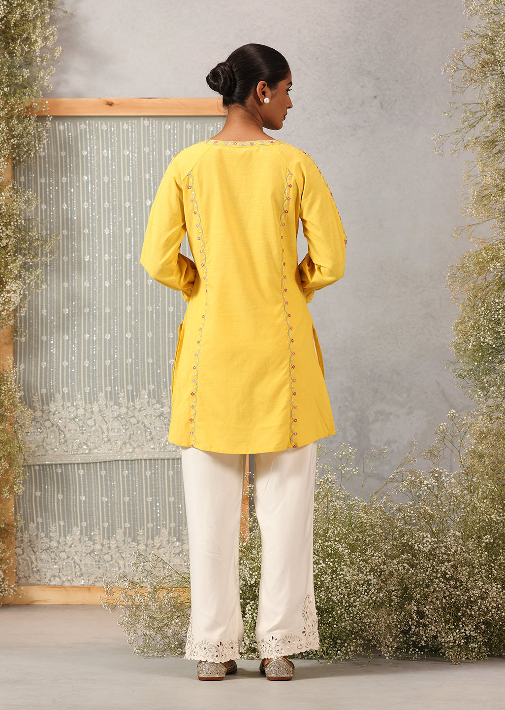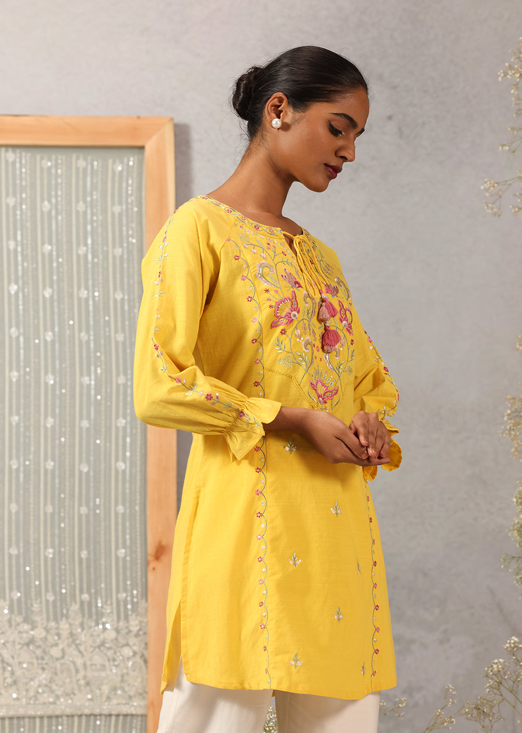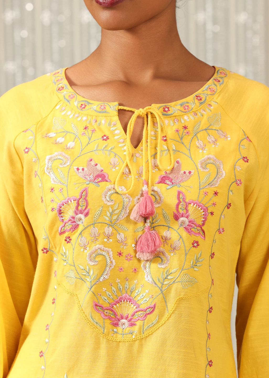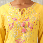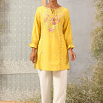 Yellow Phool Collection Kurti With Multi-Colour Embroidery