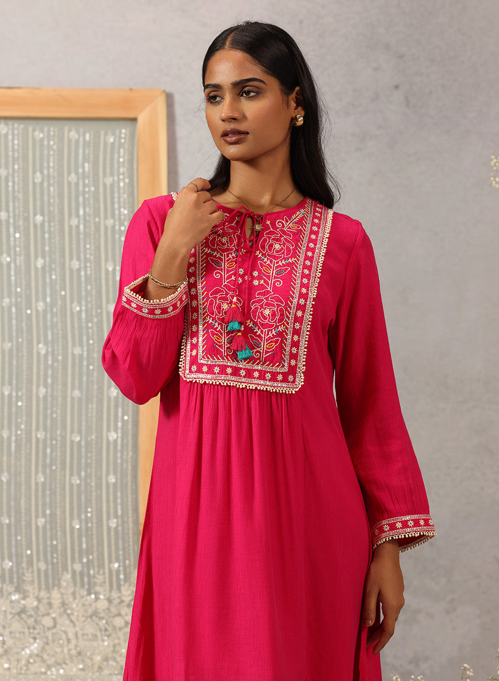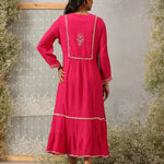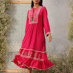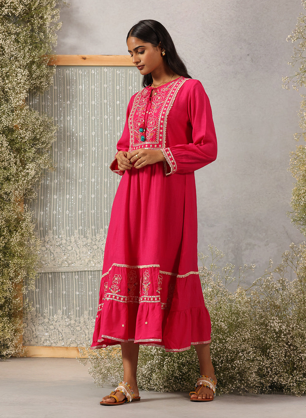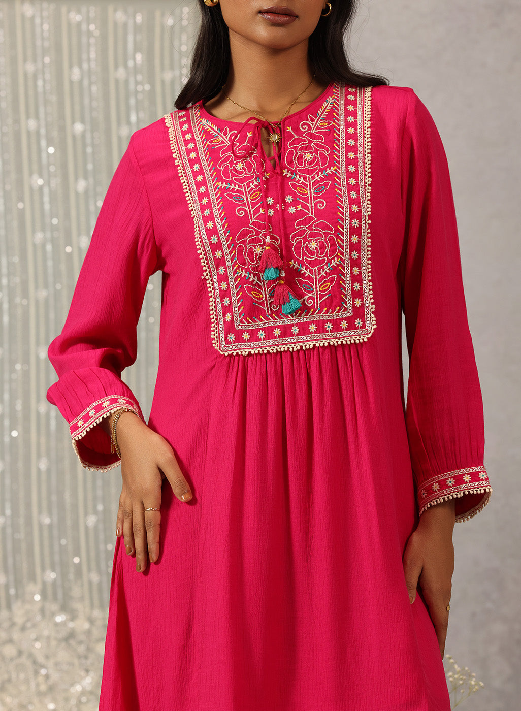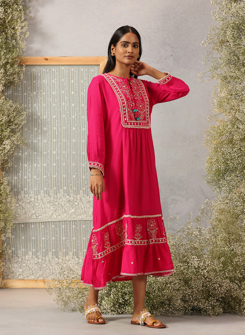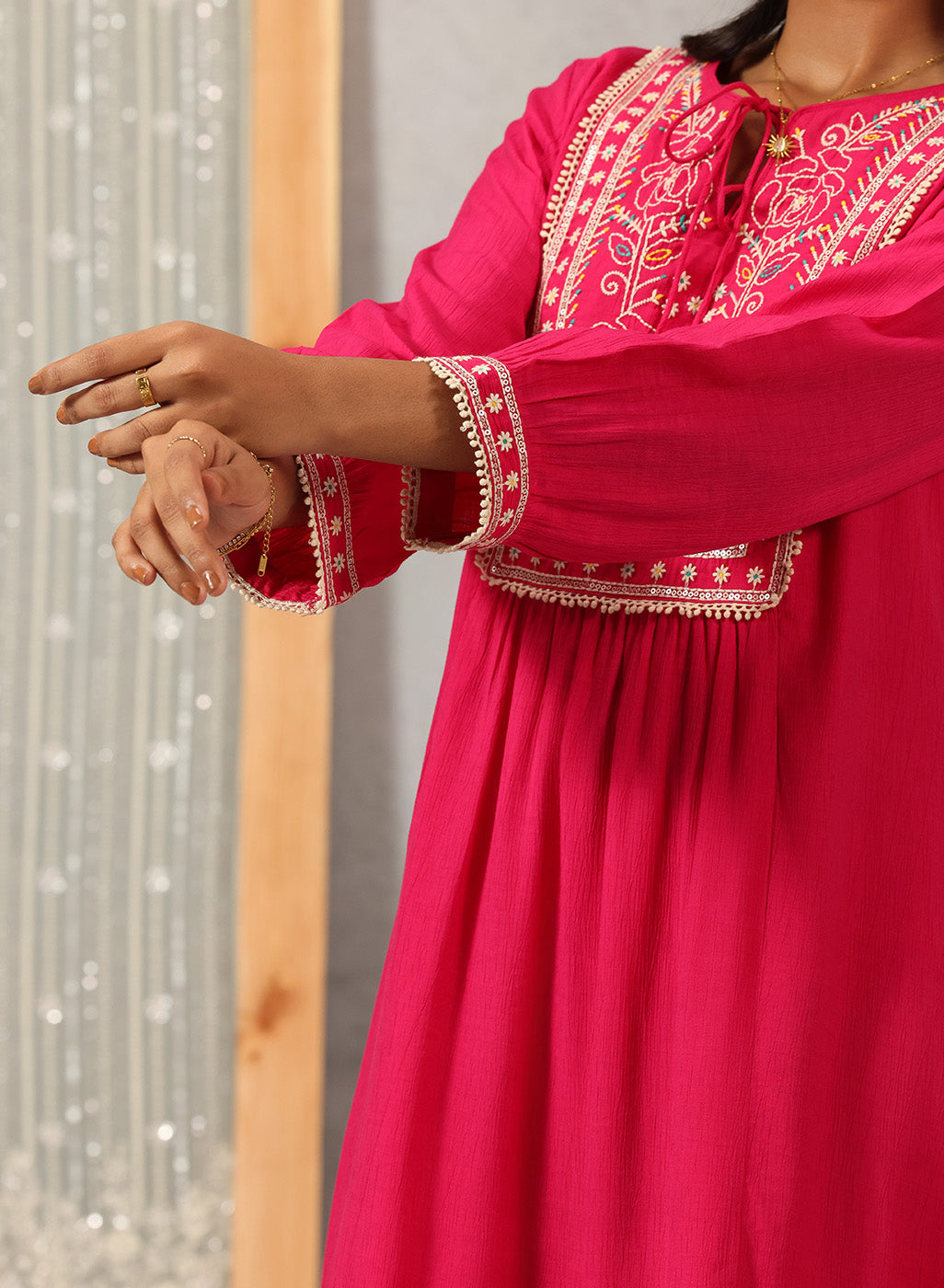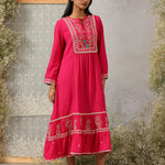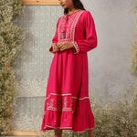 Nairang Fuchsia Embroidered Crinckled Viscose Dress for Women