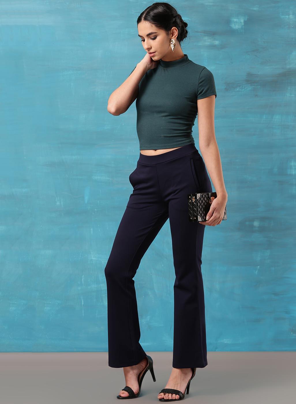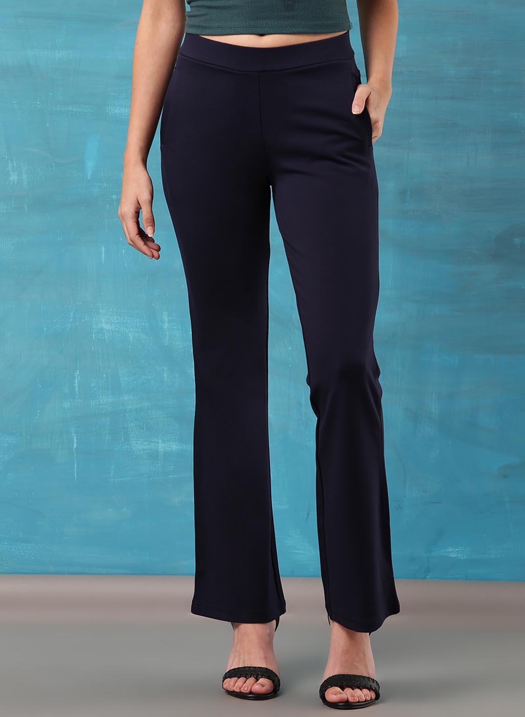 Liah Navy Blue Straight Fit Trousers for Women