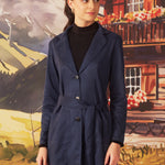 •Accentuated with sleek metal buttons and a coordinating belt, this coat allows for a personalized fit while enhancing your silhouette.