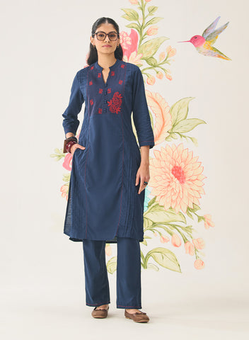 Firdous Navy Embroidered Kurta Set