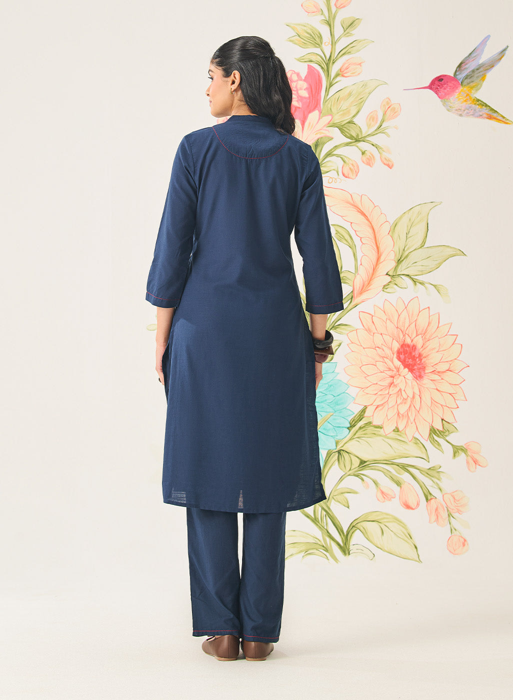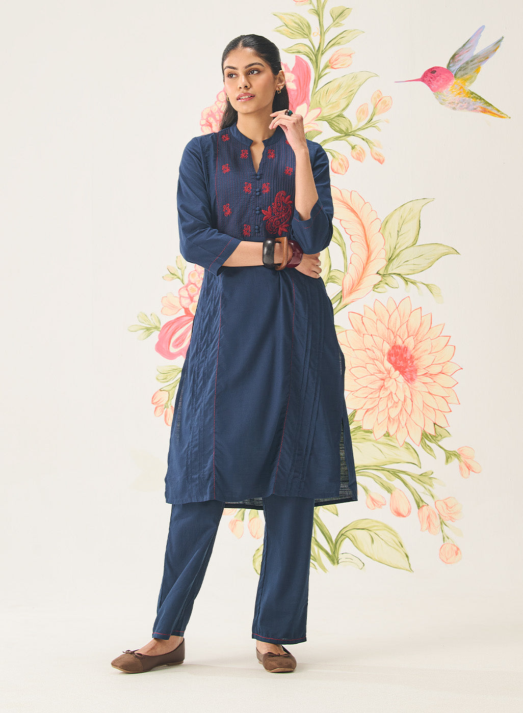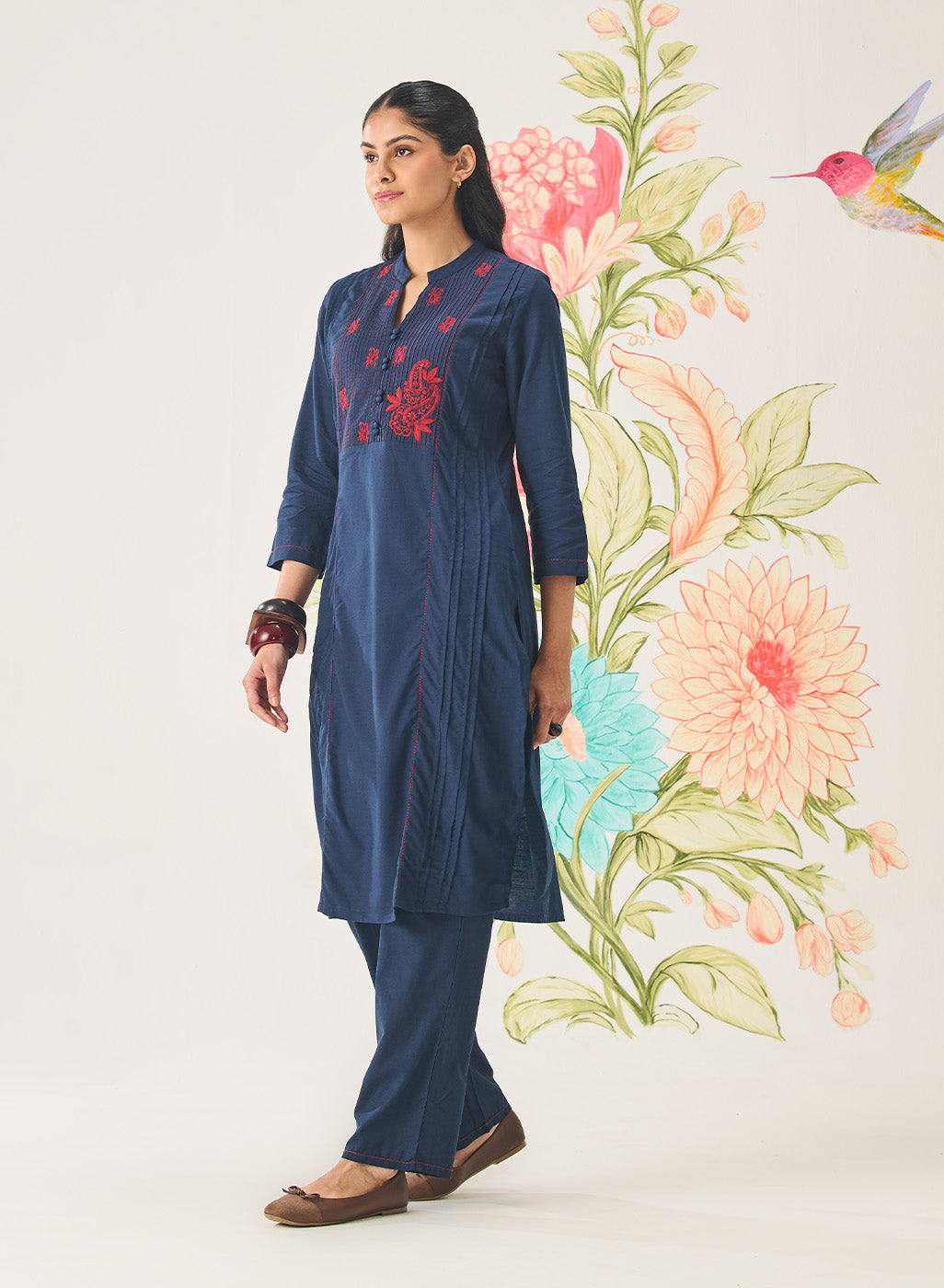 • Straight kurta paired with straight-fit pants for a balanced silhouette.
