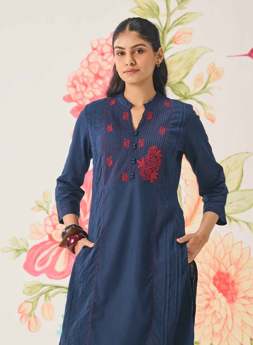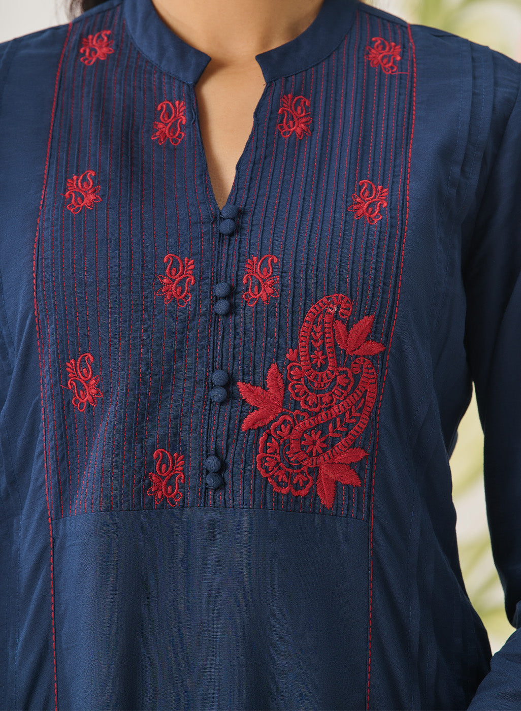 • Delicate dori embroidery highlighting the mandarin collar.