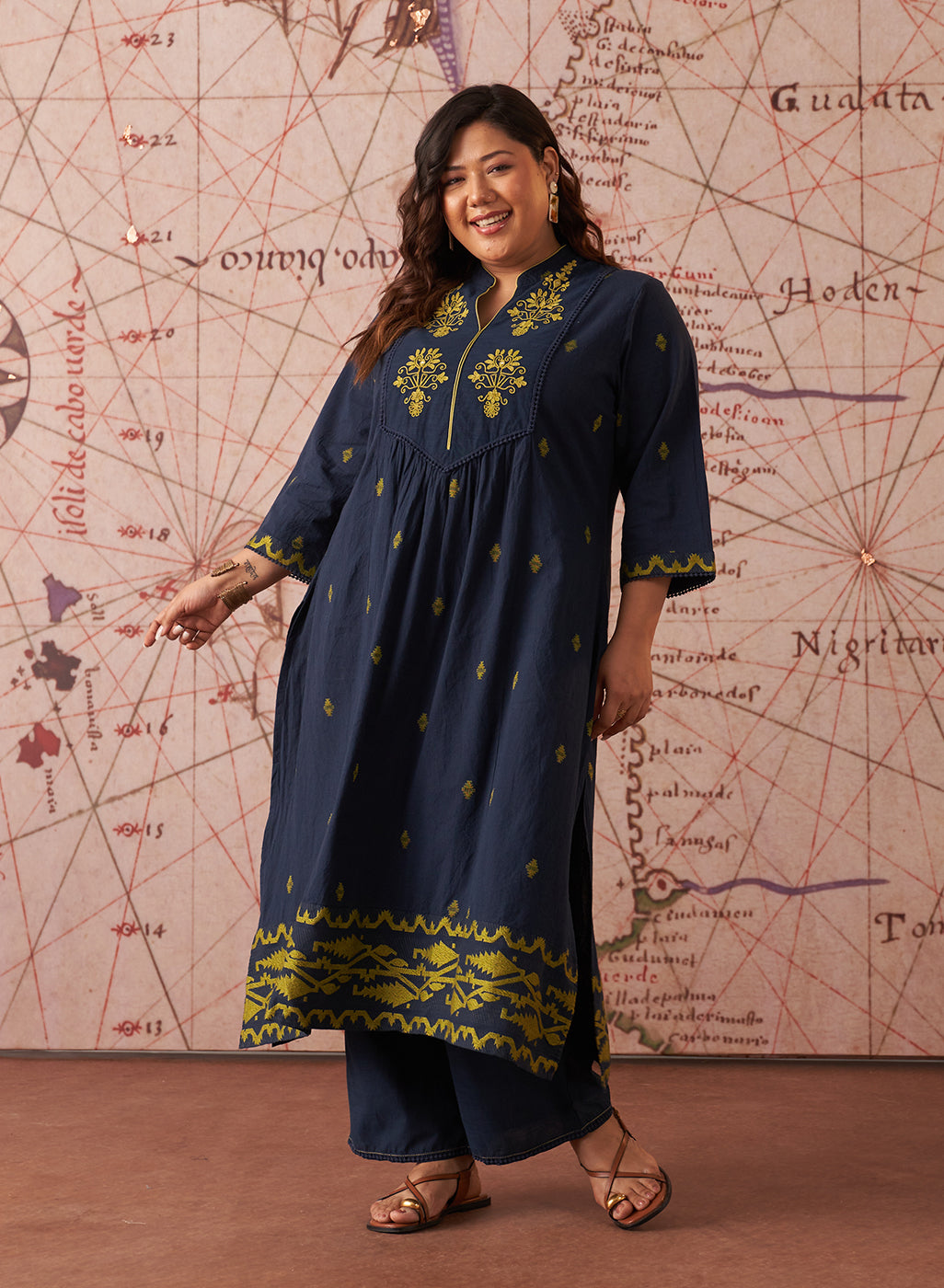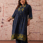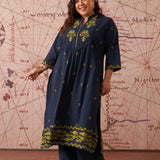 Nitara Navy Blue Embroidered Cotton Jacquard Co-ord Set for Women