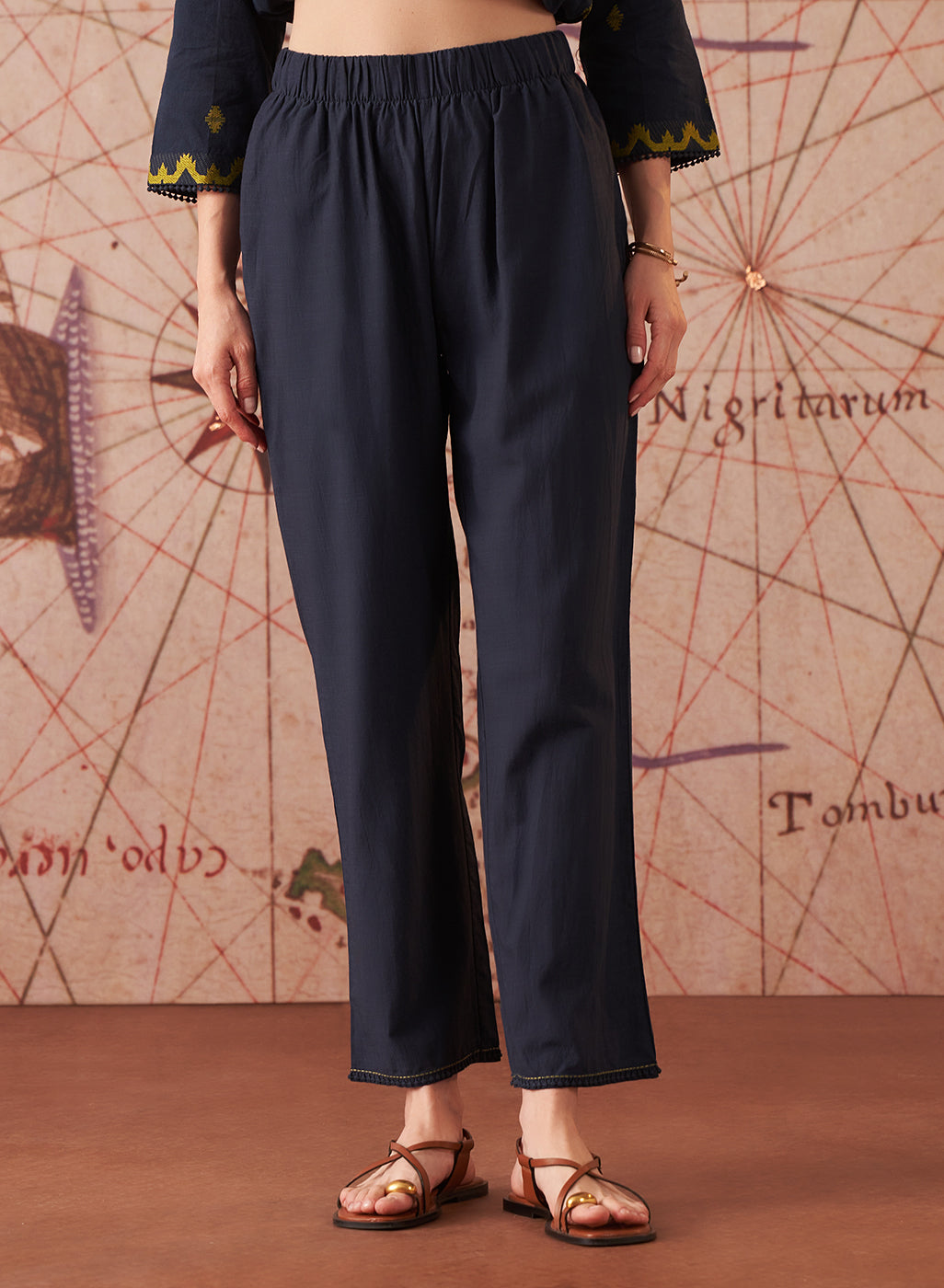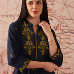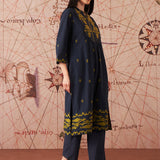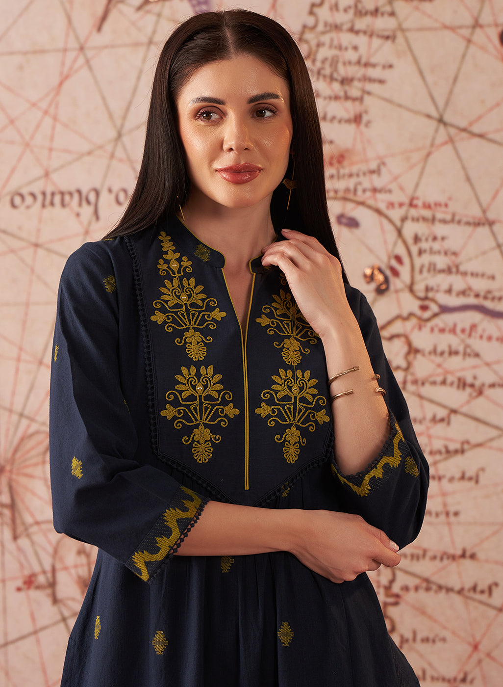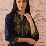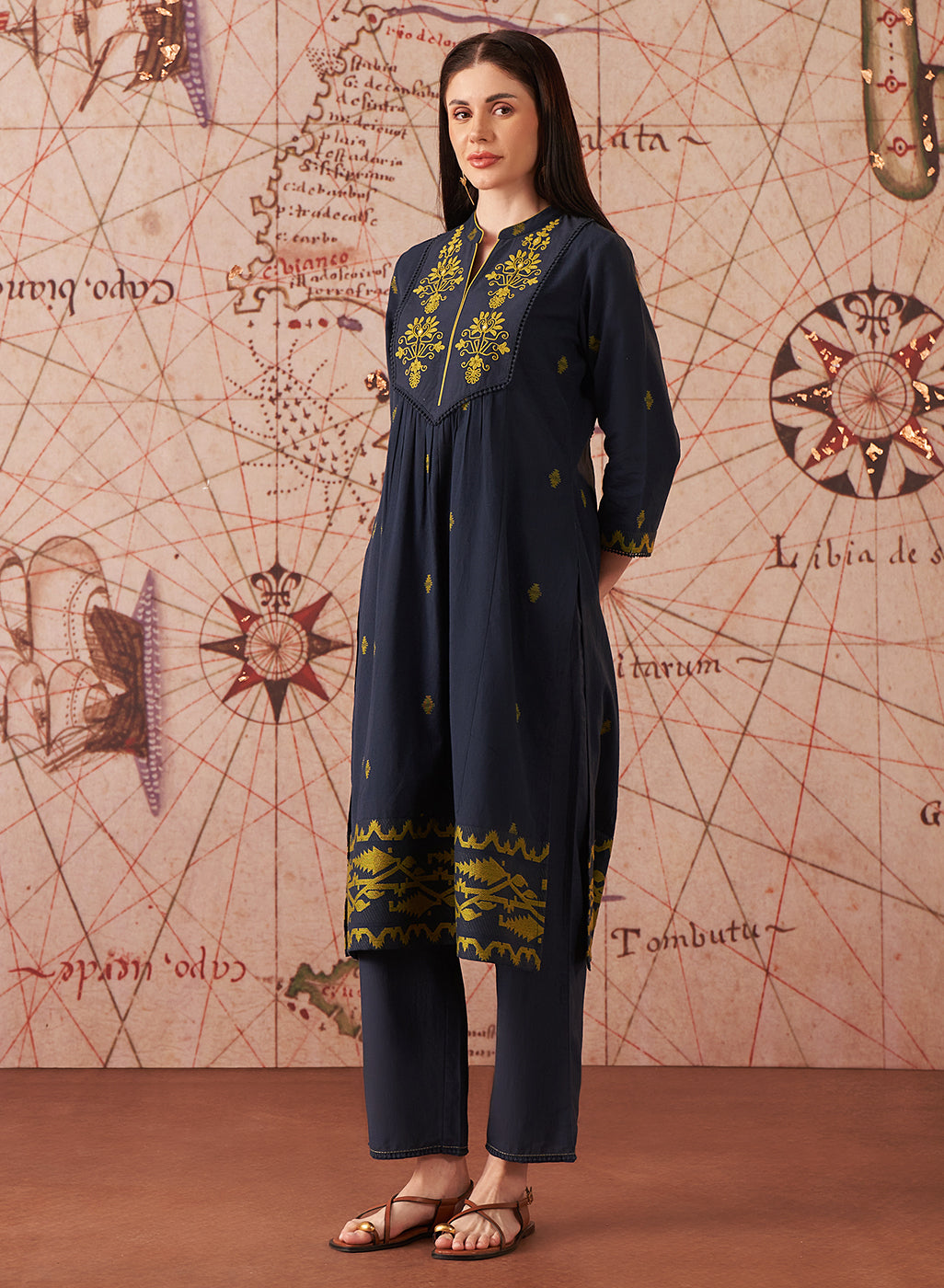 Nitara Navy Blue Embroidered Cotton Jacquard Co-ord Set for Women