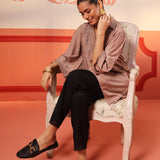 • Embellished with intricate thread embroidery, this top captivates with its meticulous detailing, showcasing timeless beauty that leaves a lasting impression.